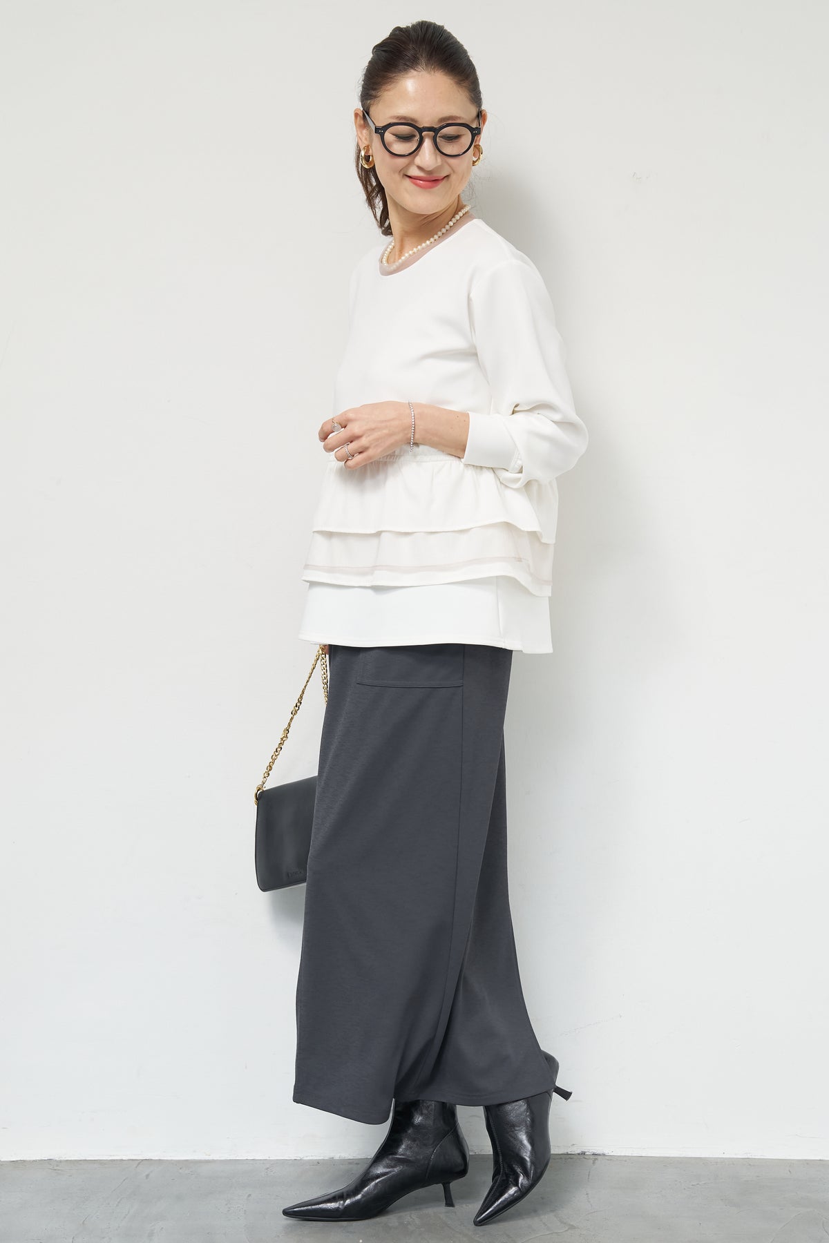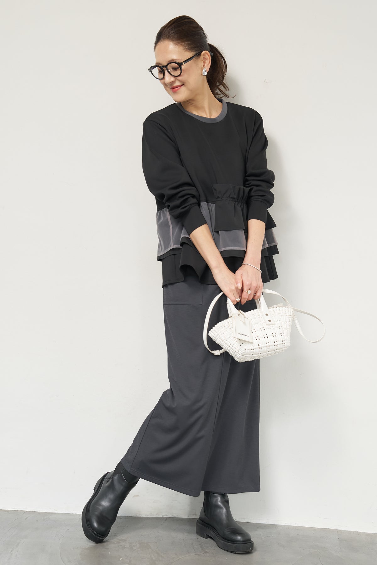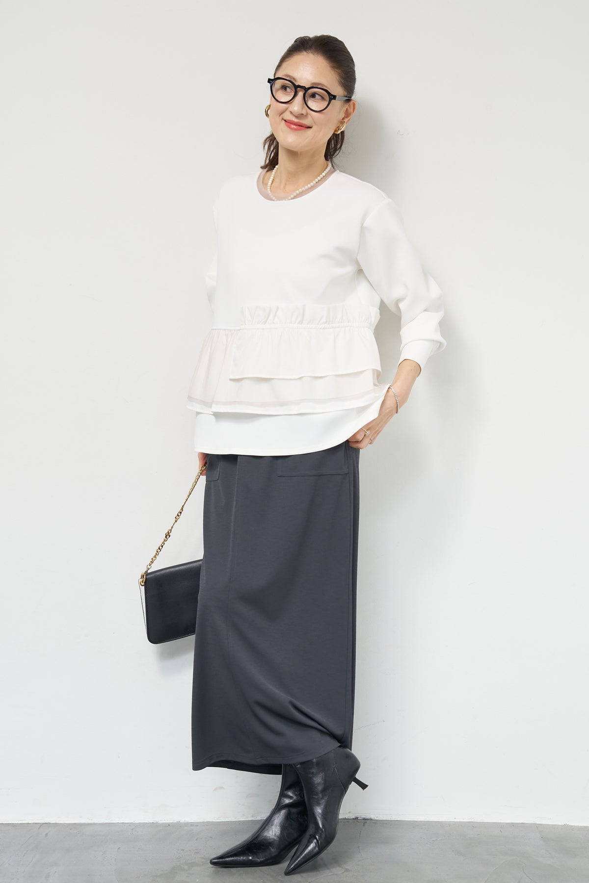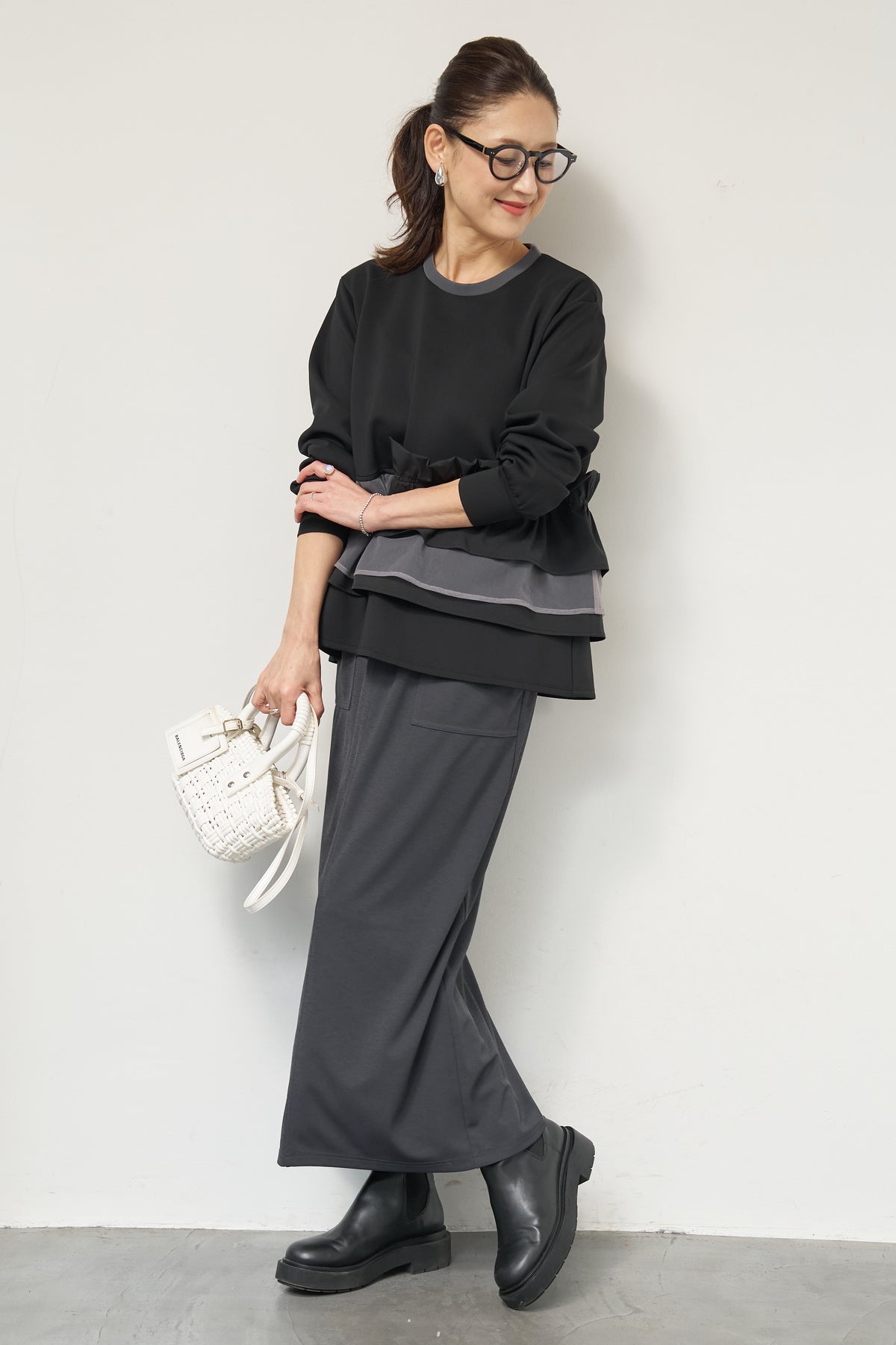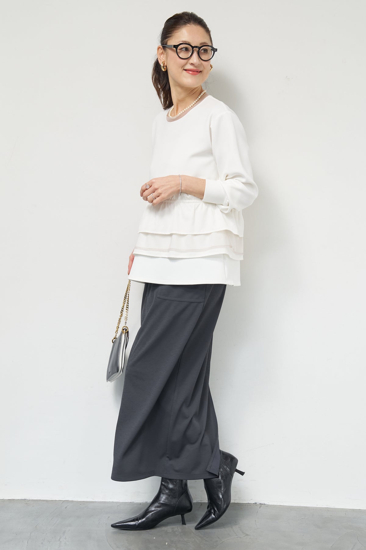ストレッチポンチペプラムトップス/スラブカノコニットスカート