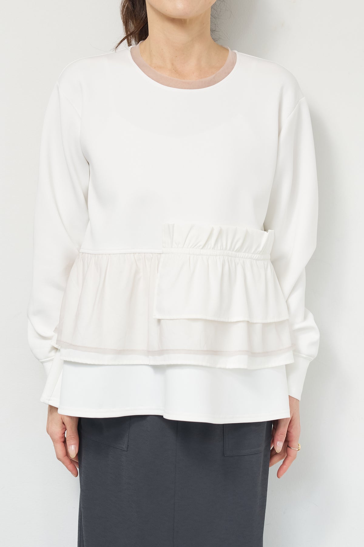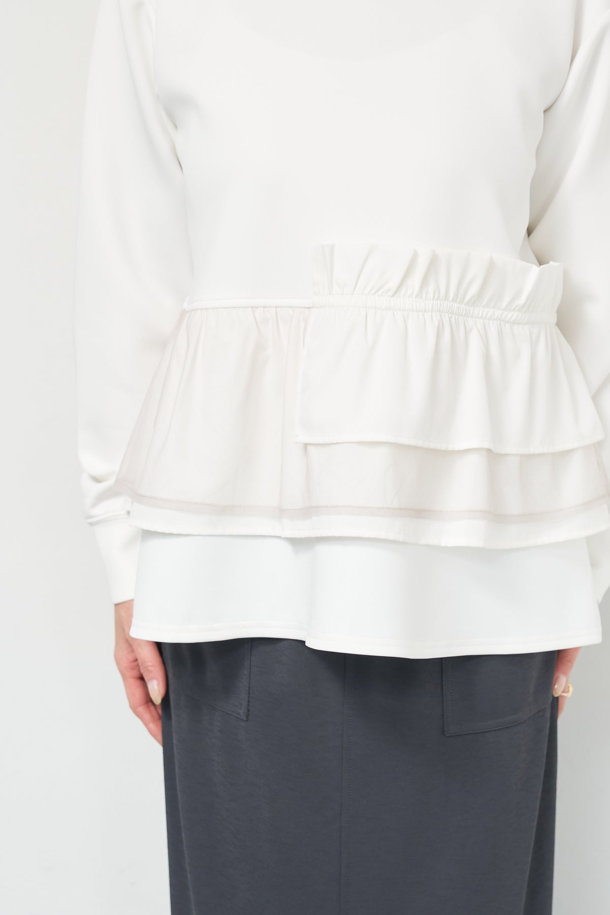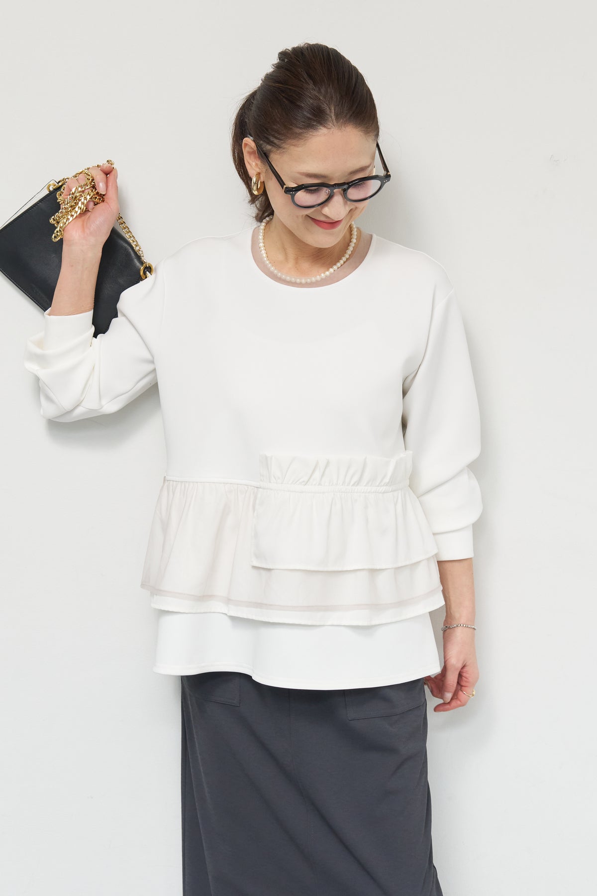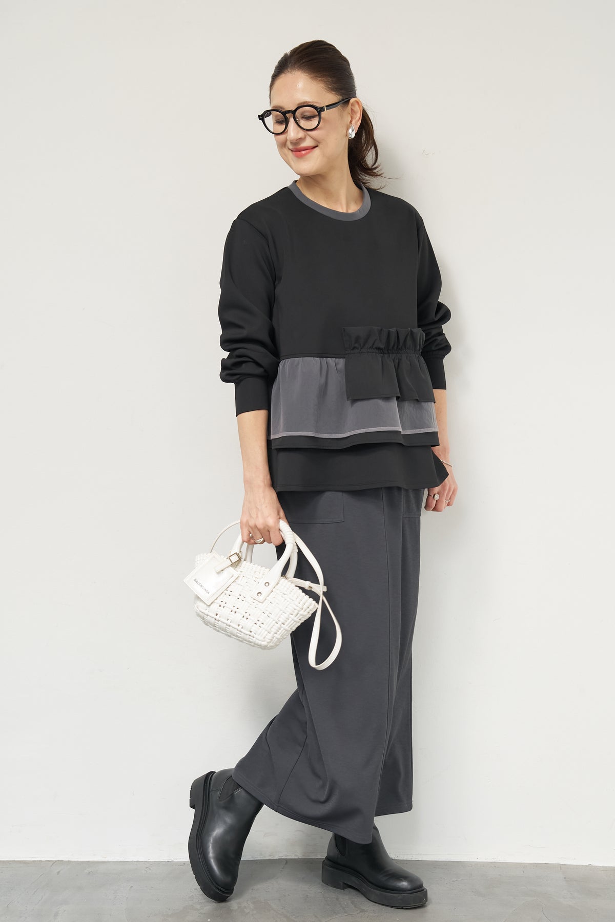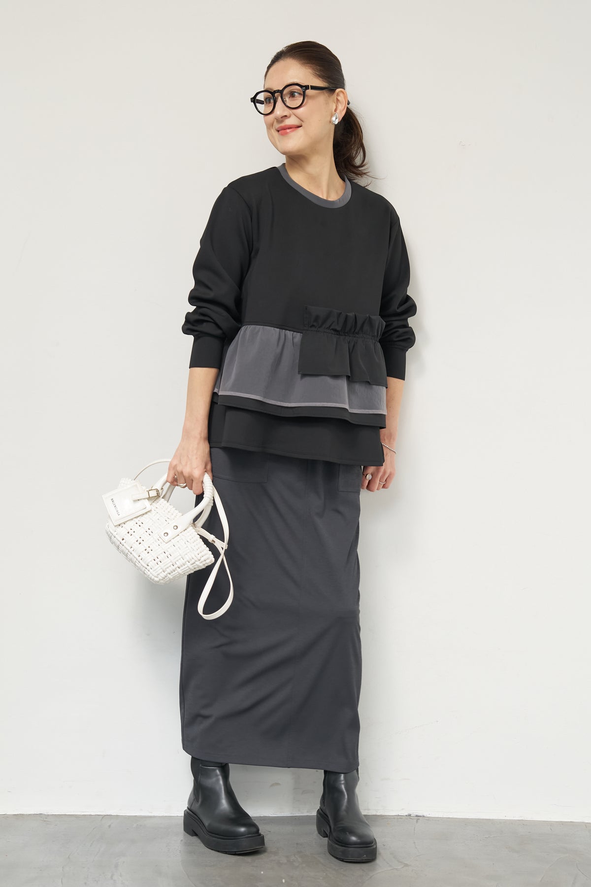 ストレッチポンチペプラムトップス/スラブカノコニットスカート