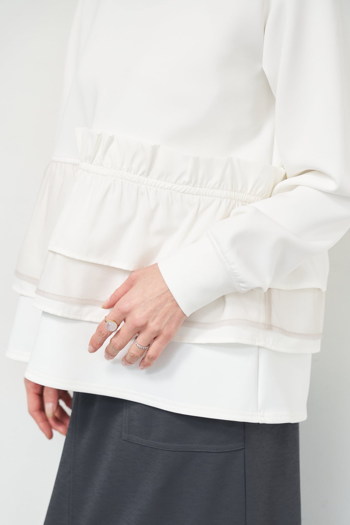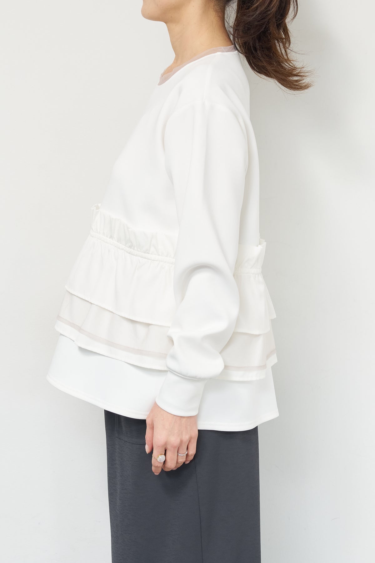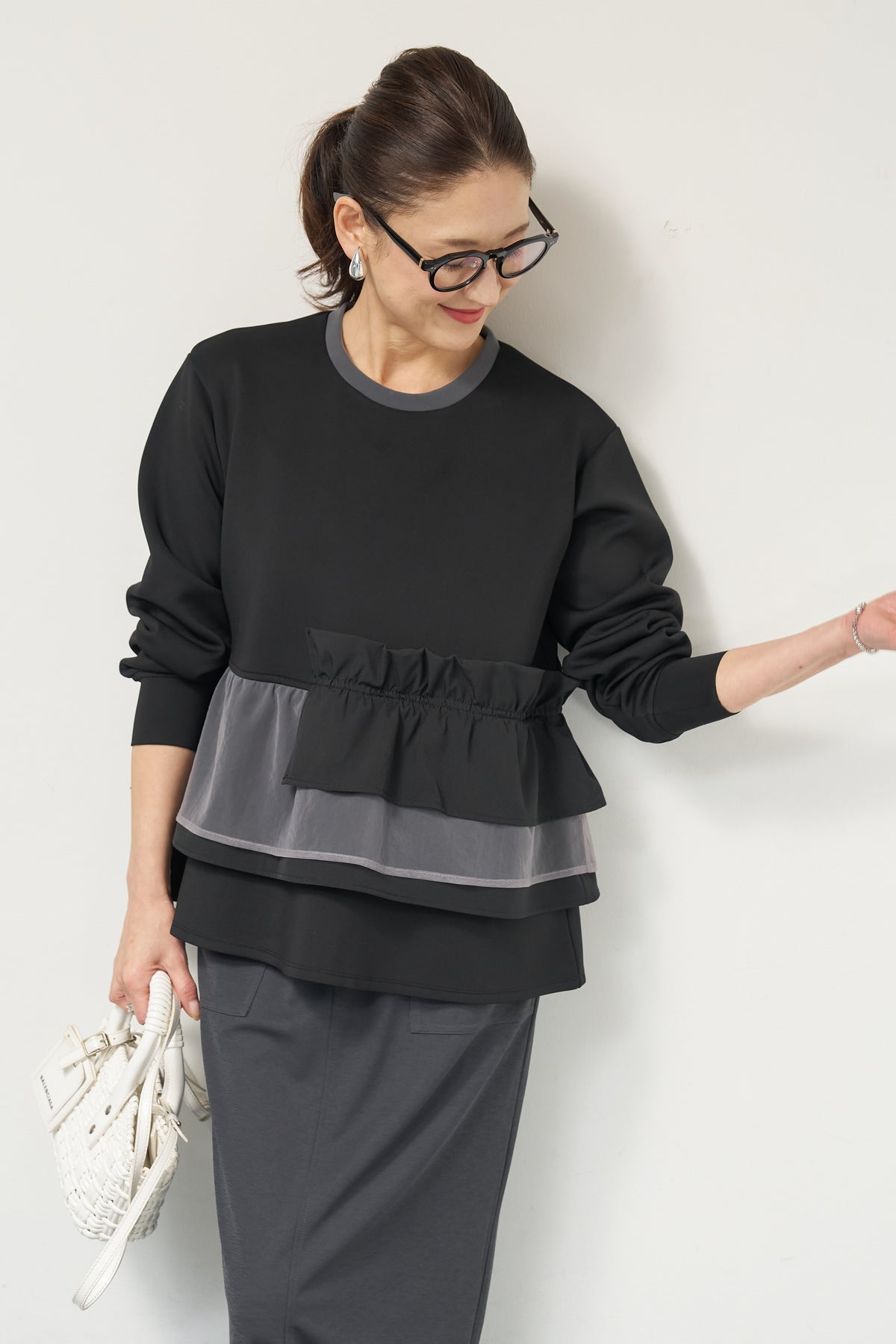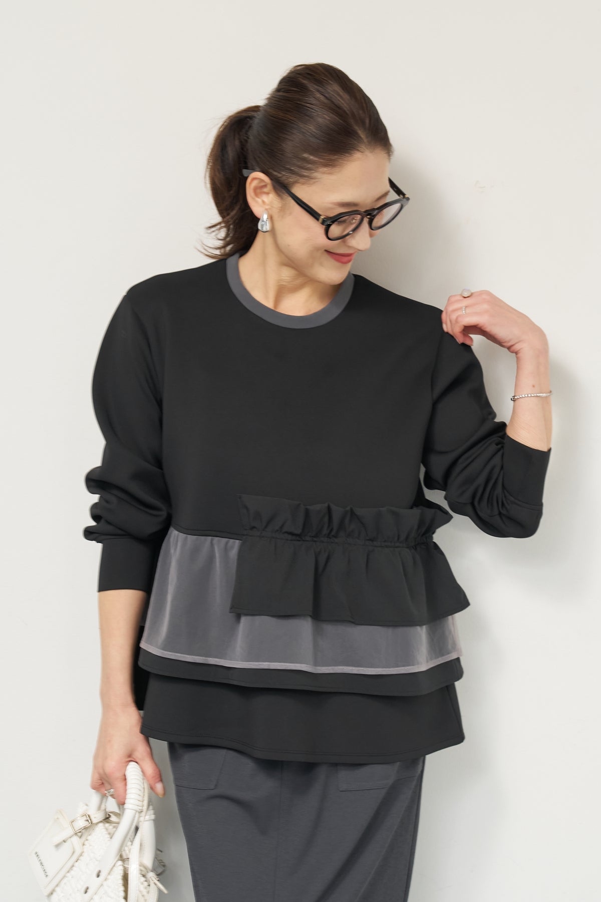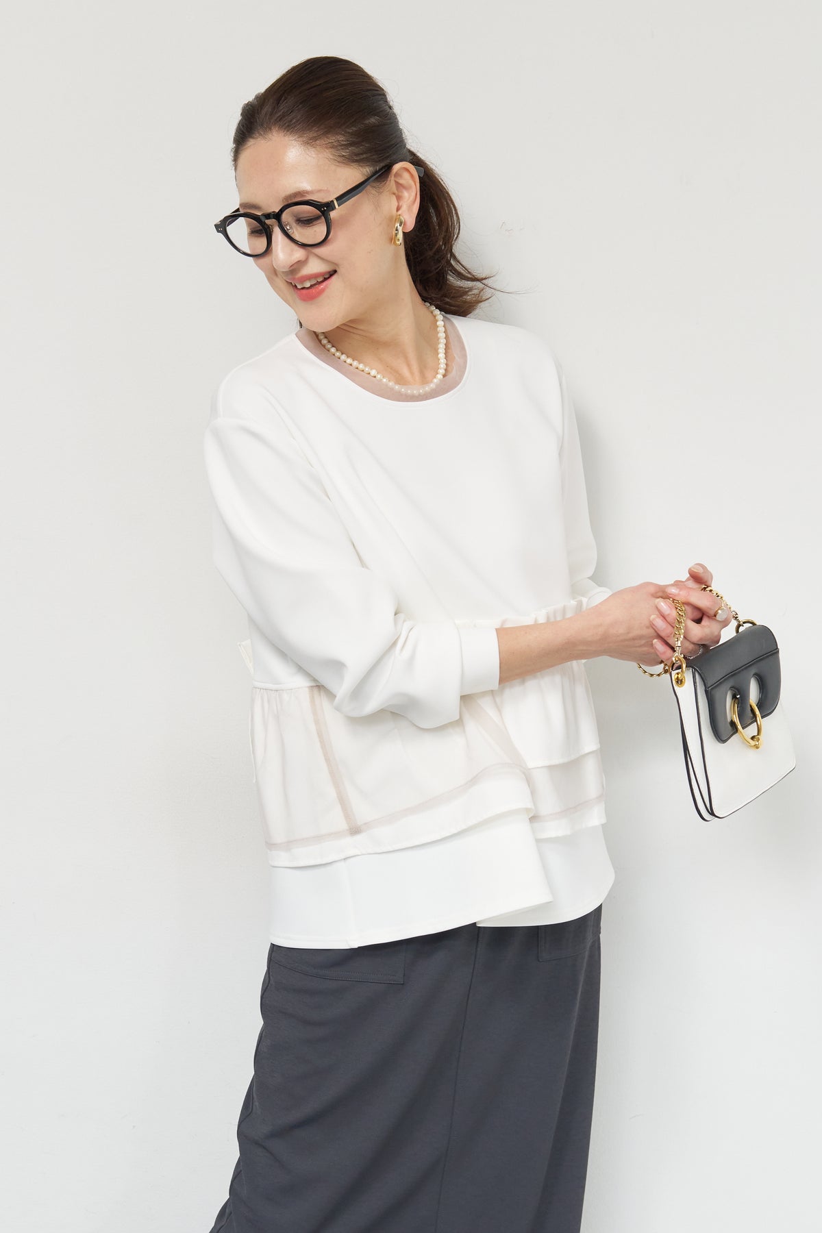 ストレッチポンチペプラムトップス/スラブカノコニットスカート