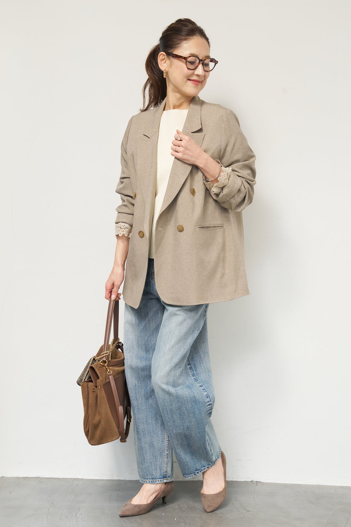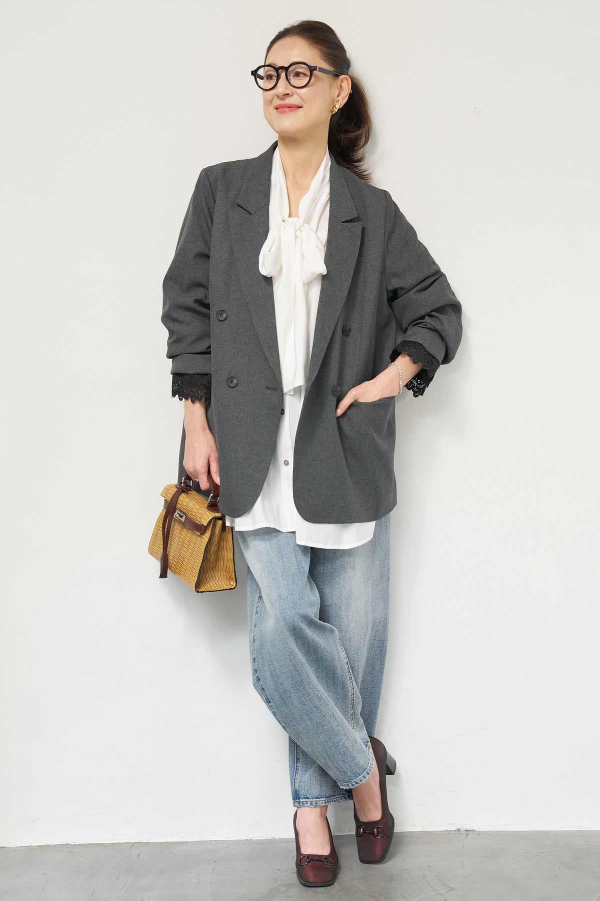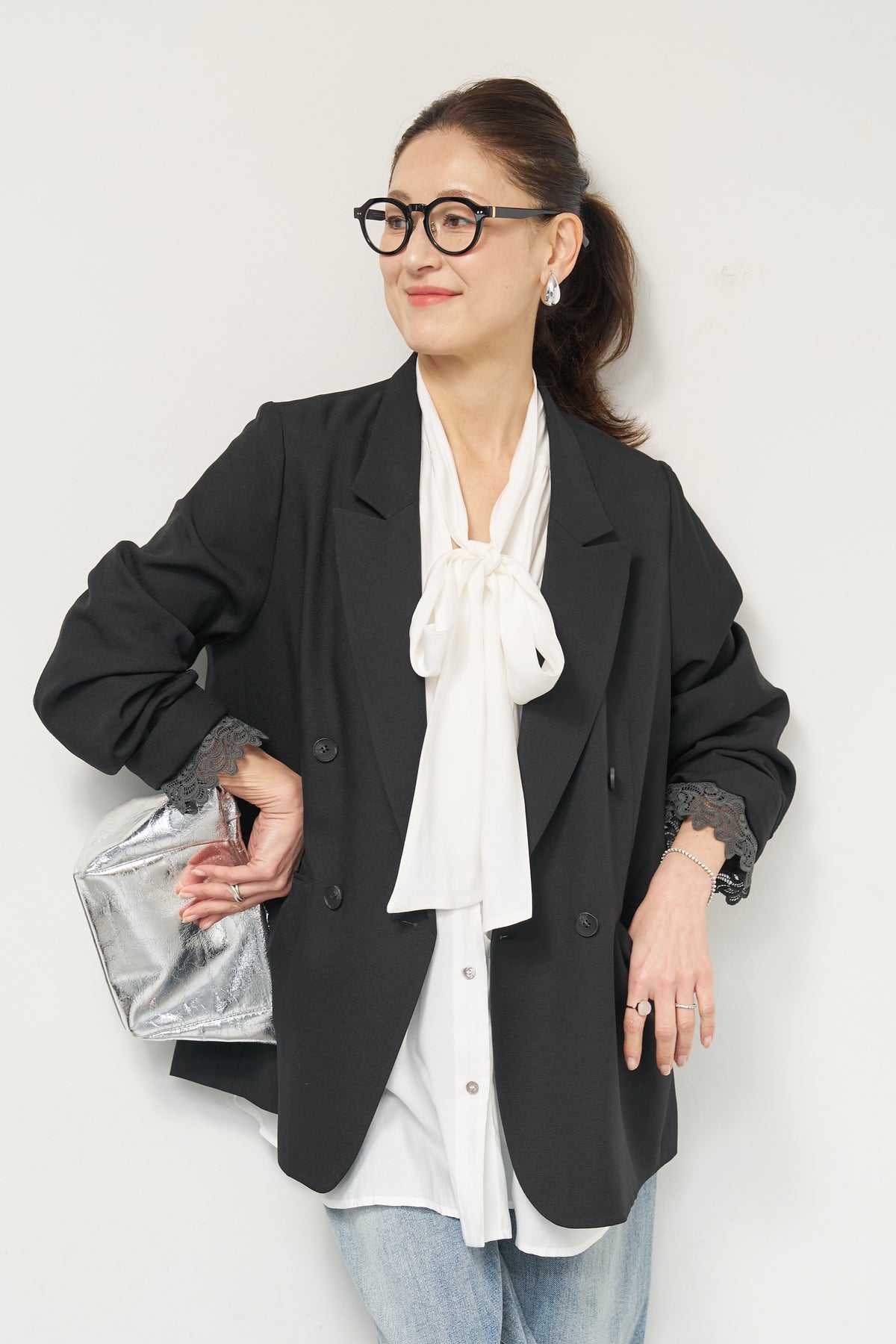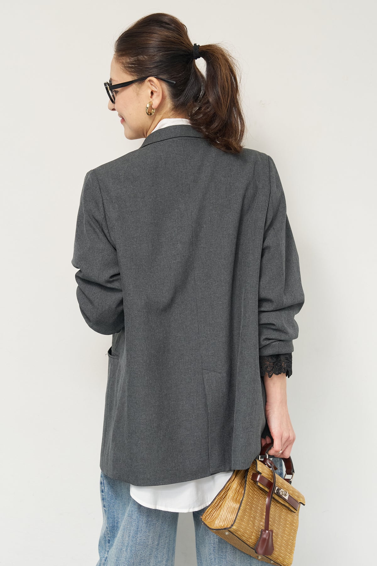 マニッシュなダブルブレストに、繊細なレースディテールを添えた大人のためのジャケット。きちんと感のあるテーラードデザインに、袖口から覗くレースが女性らしい抜け感を演出します。程よくゆとりのあるシルエットで、羽織るだけでこなれた印象に。デニムと合わせたカジュアルミックスはもちろん、きれいめボトムやワンピースの上に羽織れば、オンシーンにも対応可能です。袖はロールアップしてレースを際立たせる着こなしもおすすめ。シンプルながらもディテールにこだわった一着で、いつものスタイリングをワンランクアップしてくれます。