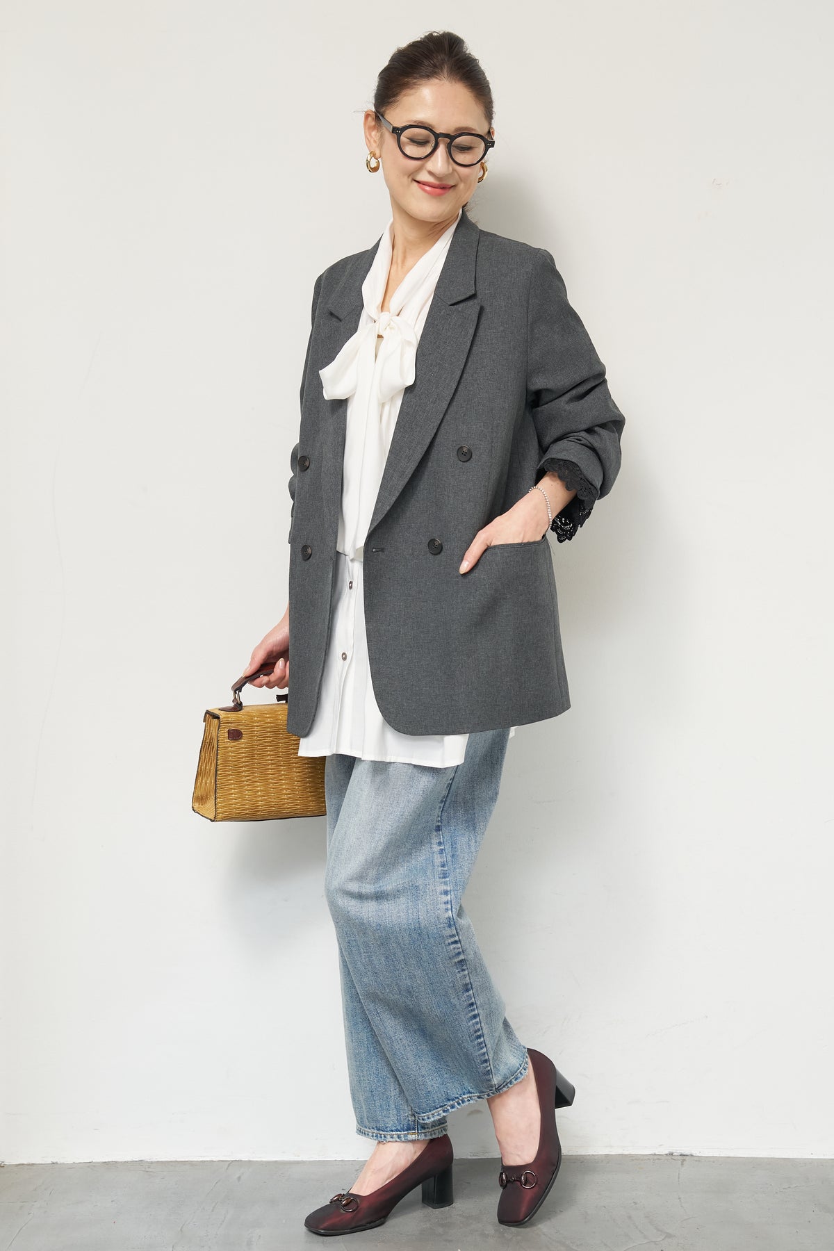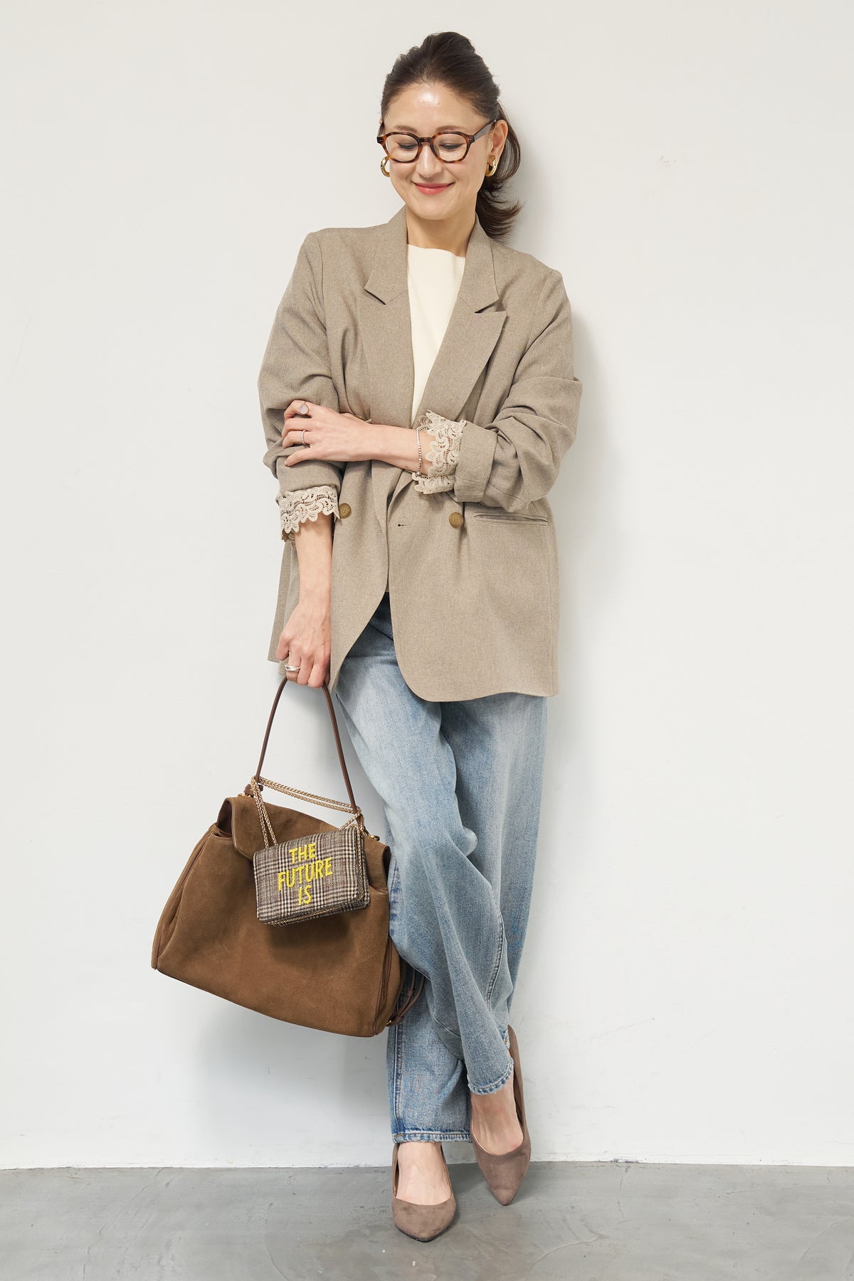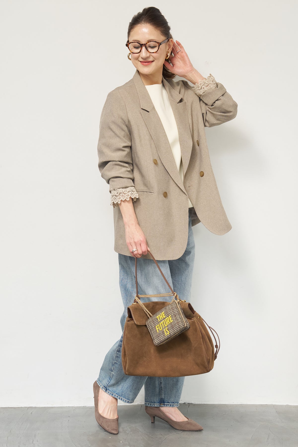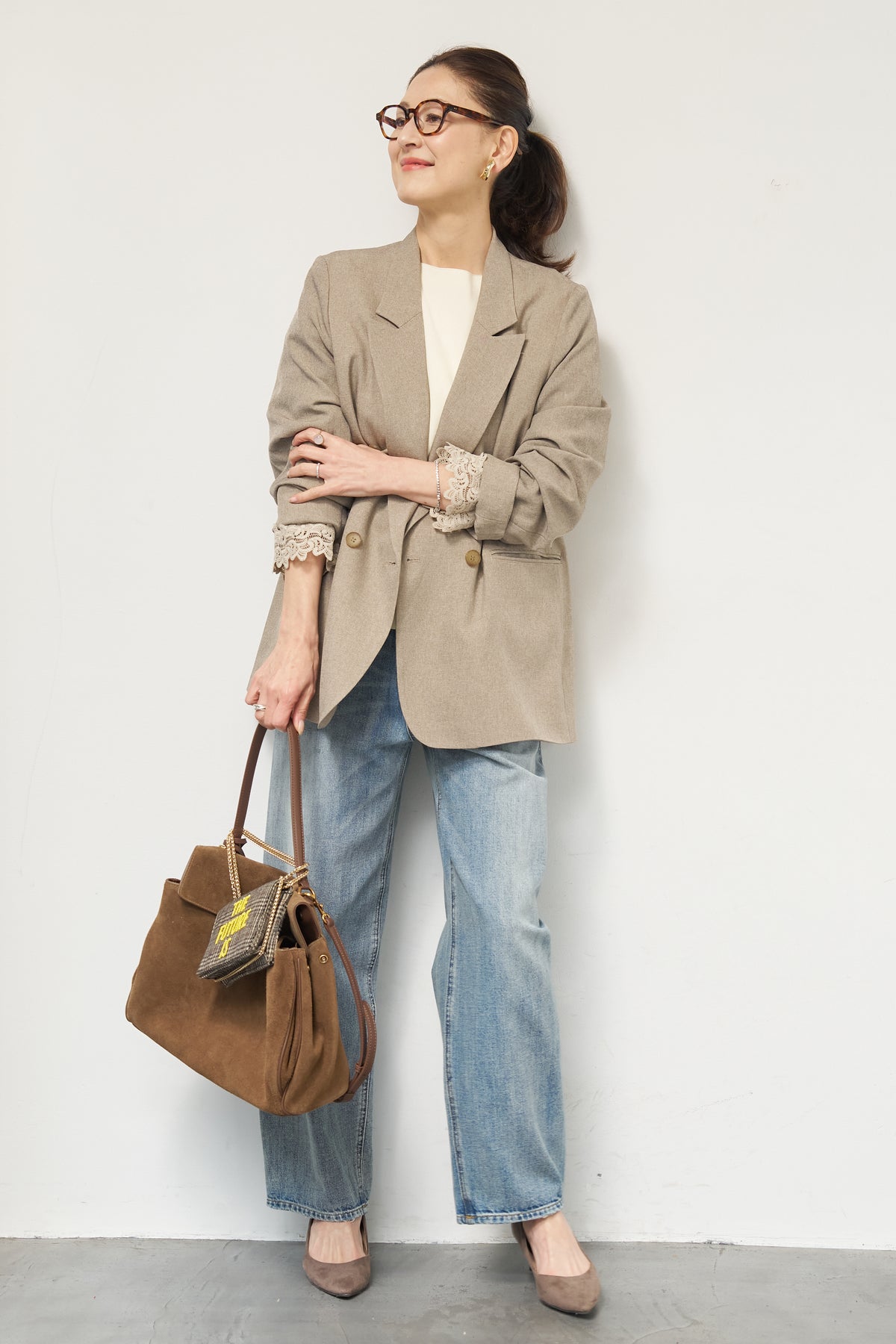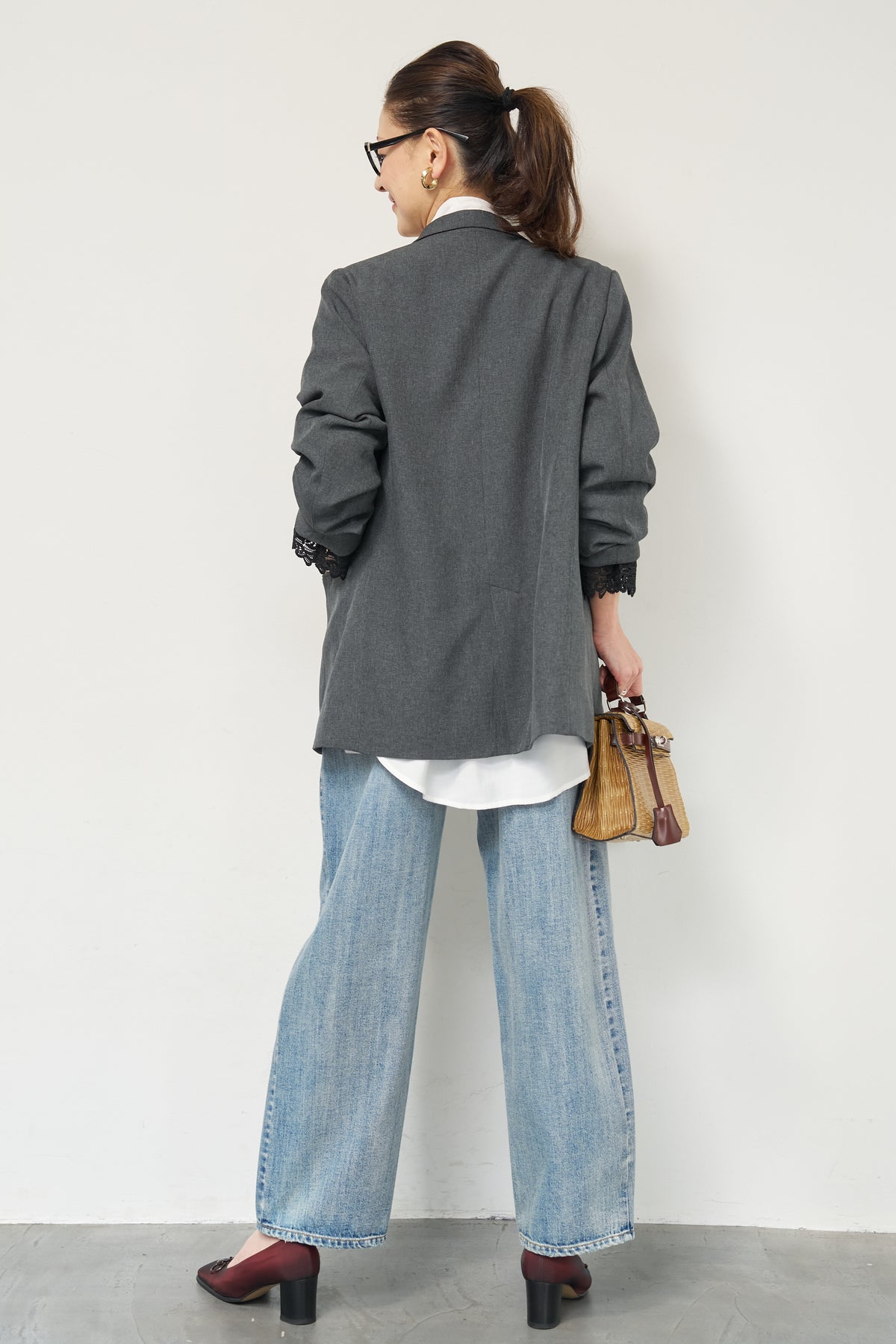 マニッシュなダブルブレストに、繊細なレースディテールを添えた大人のためのジャケット。きちんと感のあるテーラードデザインに、袖口から覗くレースが女性らしい抜け感を演出します。程よくゆとりのあるシルエットで、羽織るだけでこなれた印象に。デニムと合わせたカジュアルミックスはもちろん、きれいめボトムやワンピースの上に羽織れば、オンシーンにも対応可能です。袖はロールアップしてレースを際立たせる着こなしもおすすめ。シンプルながらもディテールにこだわった一着で、いつものスタイリングをワンランクアップしてくれます。