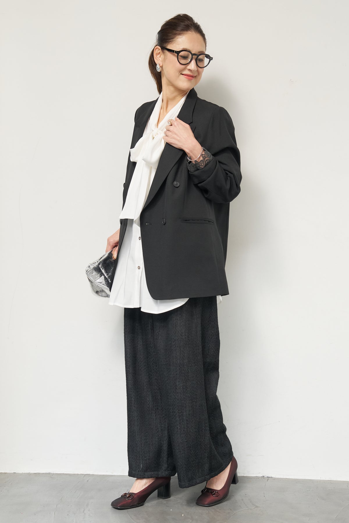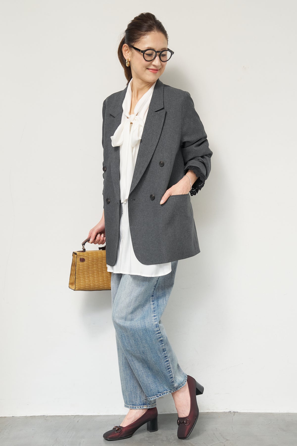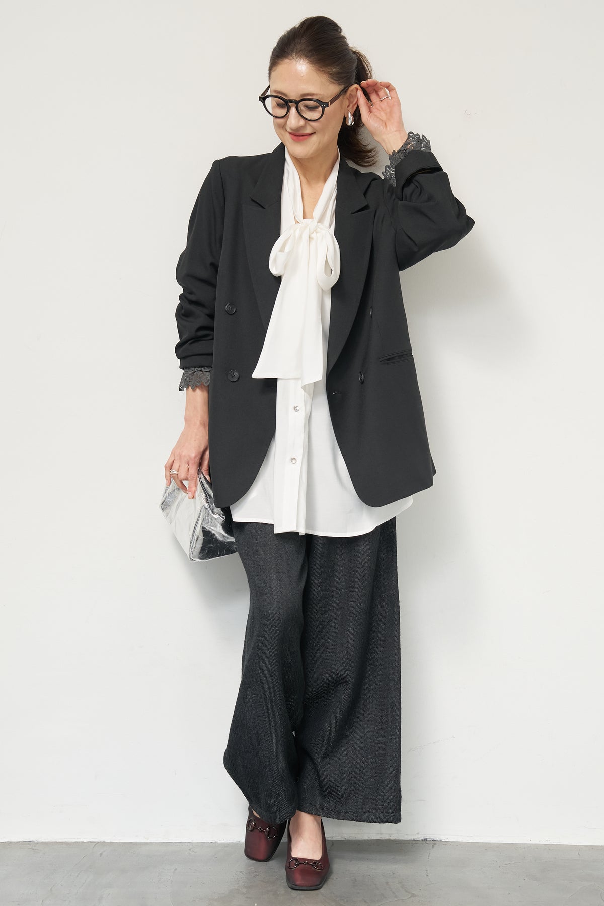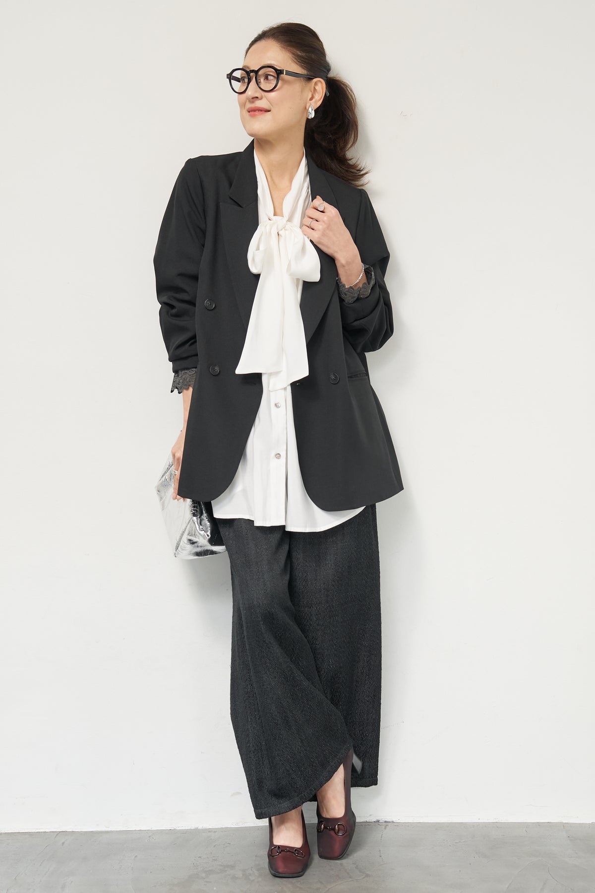 マニッシュなダブルブレストに、繊細なレースディテールを添えた大人のためのジャケット。きちんと感のあるテーラードデザインに、袖口から覗くレースが女性らしい抜け感を演出します。程よくゆとりのあるシルエットで、羽織るだけでこなれた印象に。デニムと合わせたカジュアルミックスはもちろん、きれいめボトムやワンピースの上に羽織れば、オンシーンにも対応可能です。袖はロールアップしてレースを際立たせる着こなしもおすすめ。シンプルながらもディテールにこだわった一着で、いつものスタイリングをワンランクアップしてくれます。