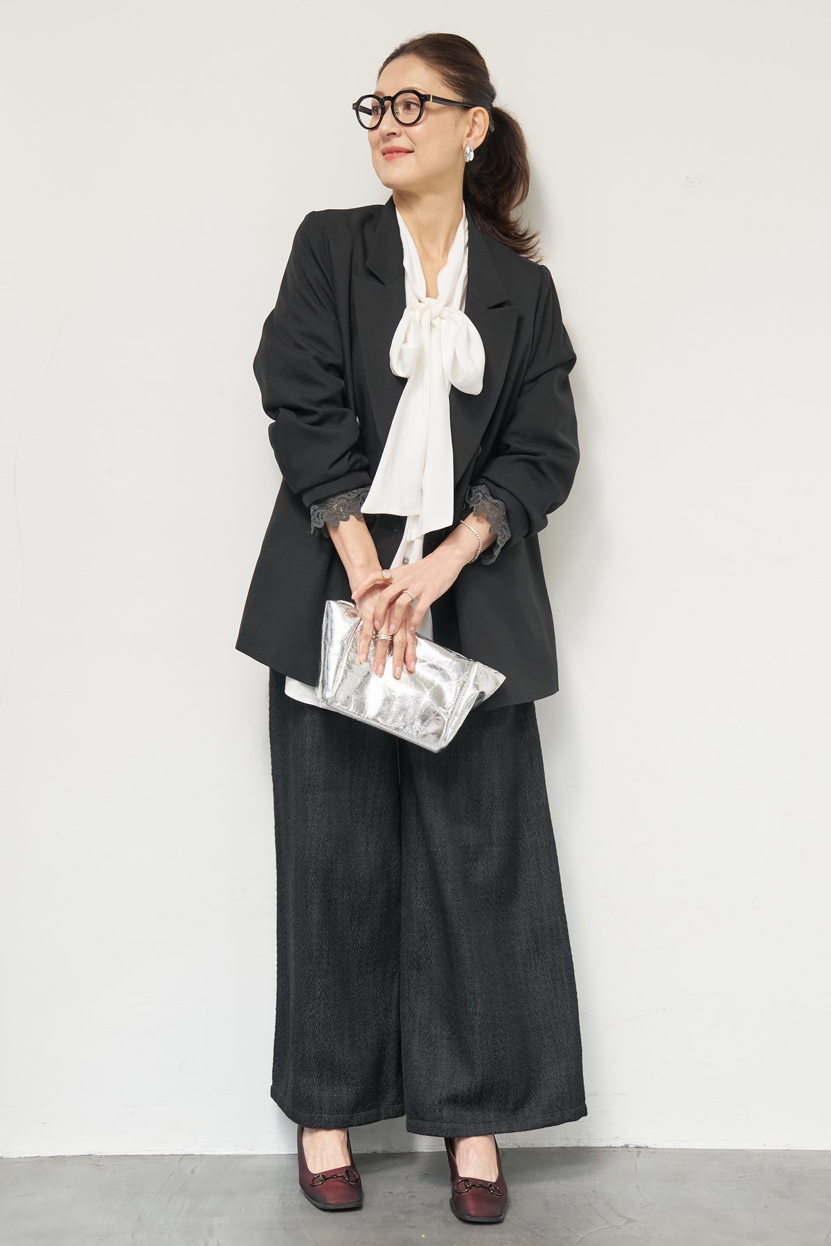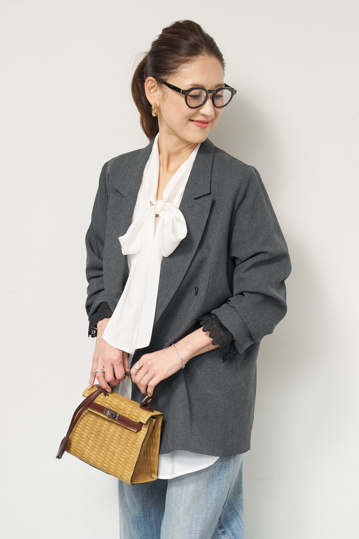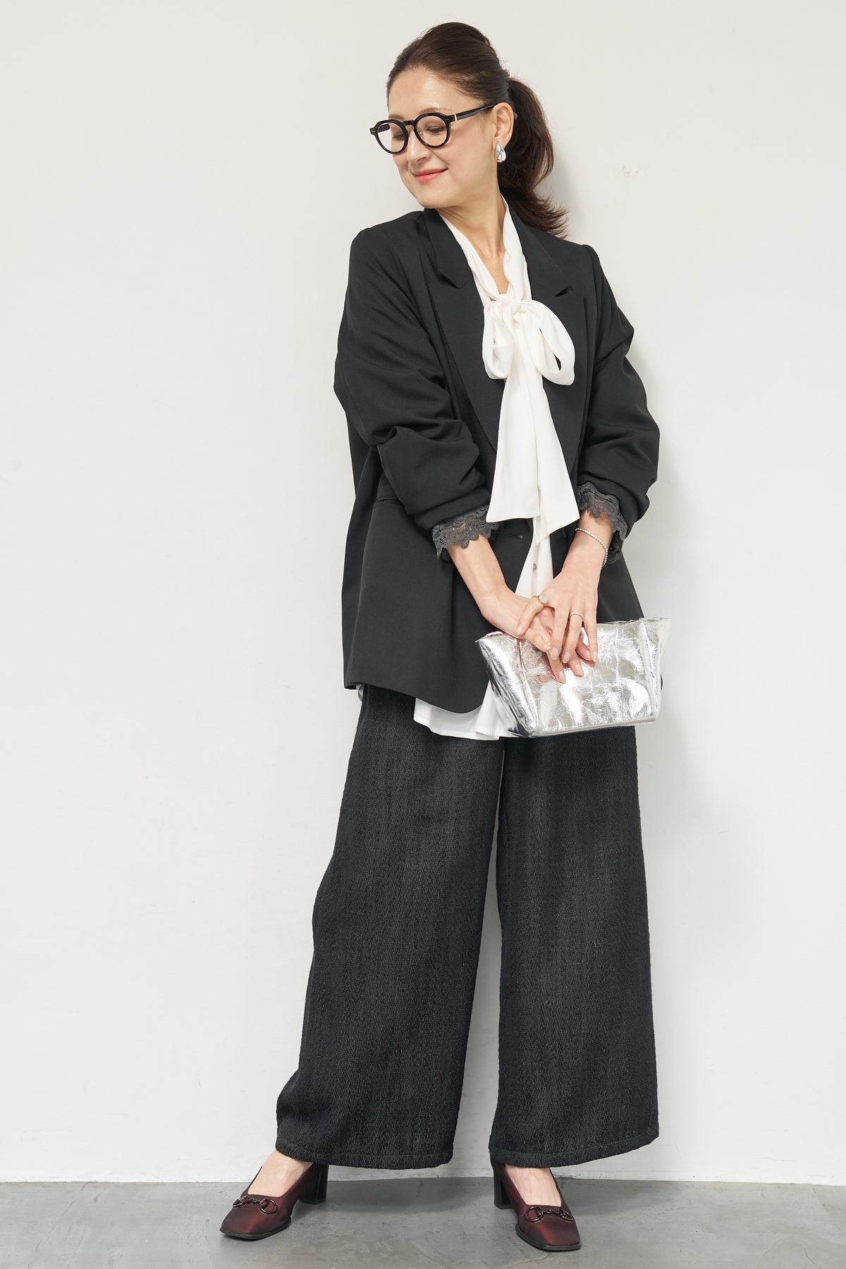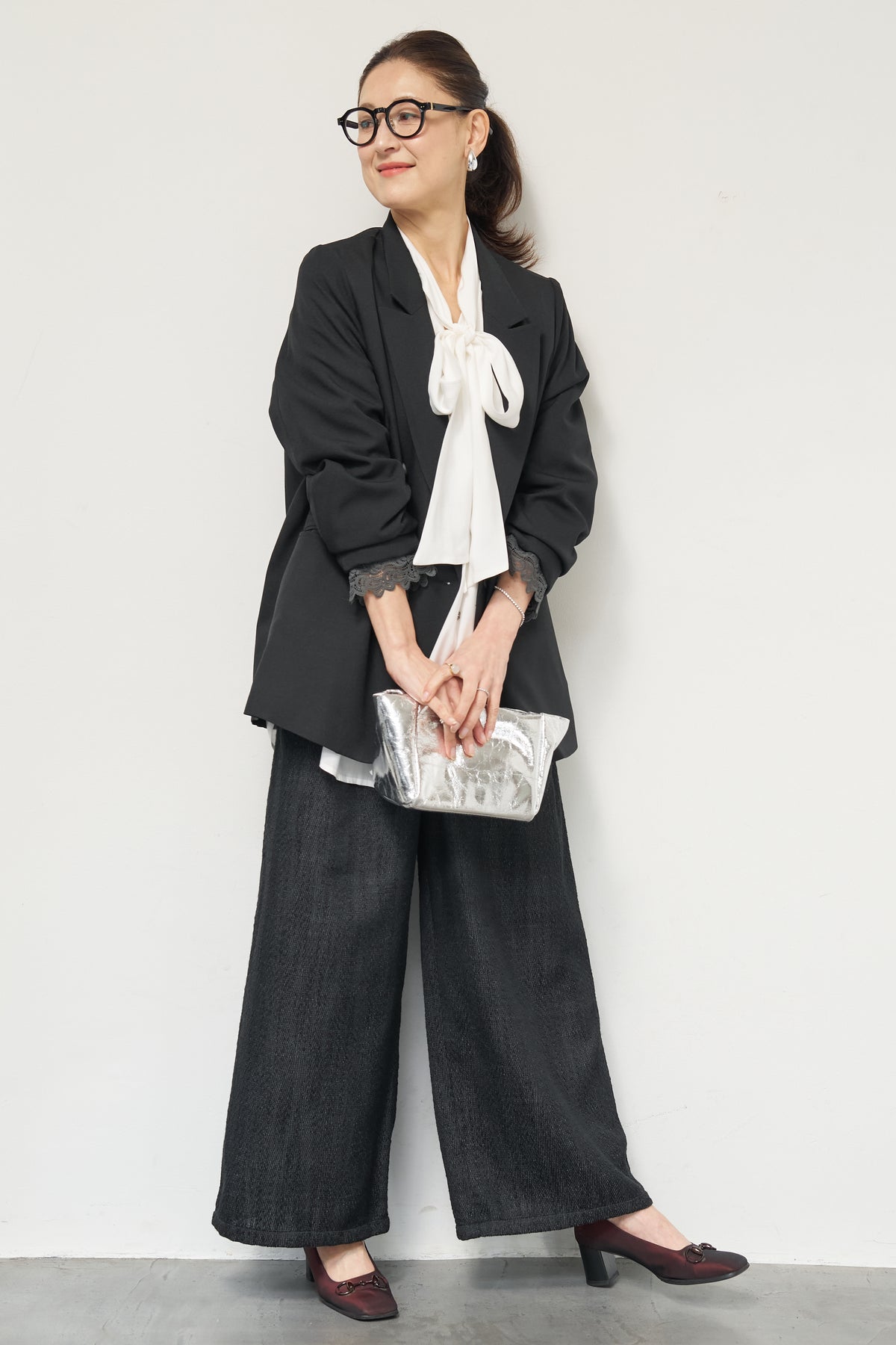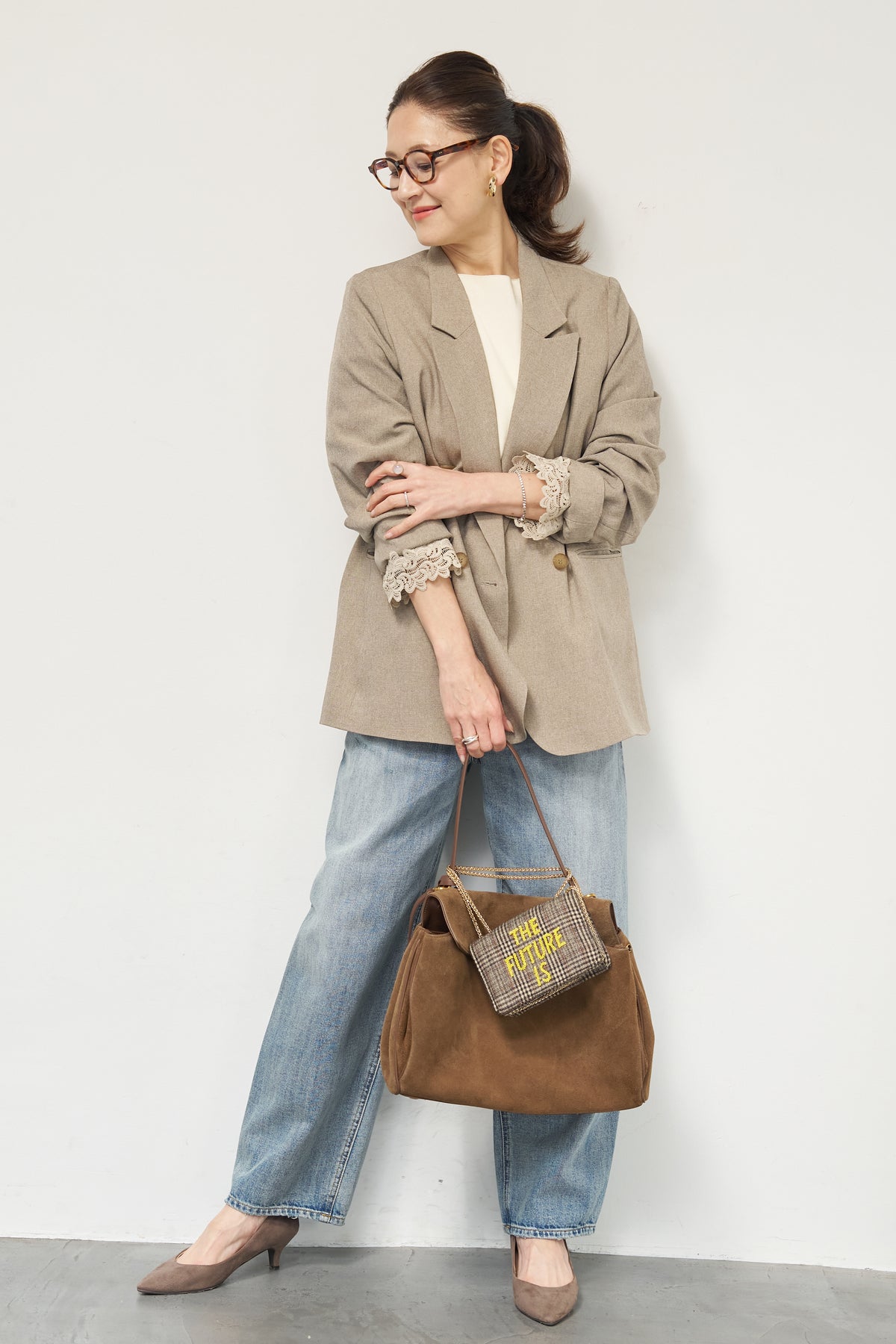 マニッシュなダブルブレストに、繊細なレースディテールを添えた大人のためのジャケット。きちんと感のあるテーラードデザインに、袖口から覗くレースが女性らしい抜け感を演出します。程よくゆとりのあるシルエットで、羽織るだけでこなれた印象に。デニムと合わせたカジュアルミックスはもちろん、きれいめボトムやワンピースの上に羽織れば、オンシーンにも対応可能です。袖はロールアップしてレースを際立たせる着こなしもおすすめ。シンプルながらもディテールにこだわった一着で、いつものスタイリングをワンランクアップしてくれます。