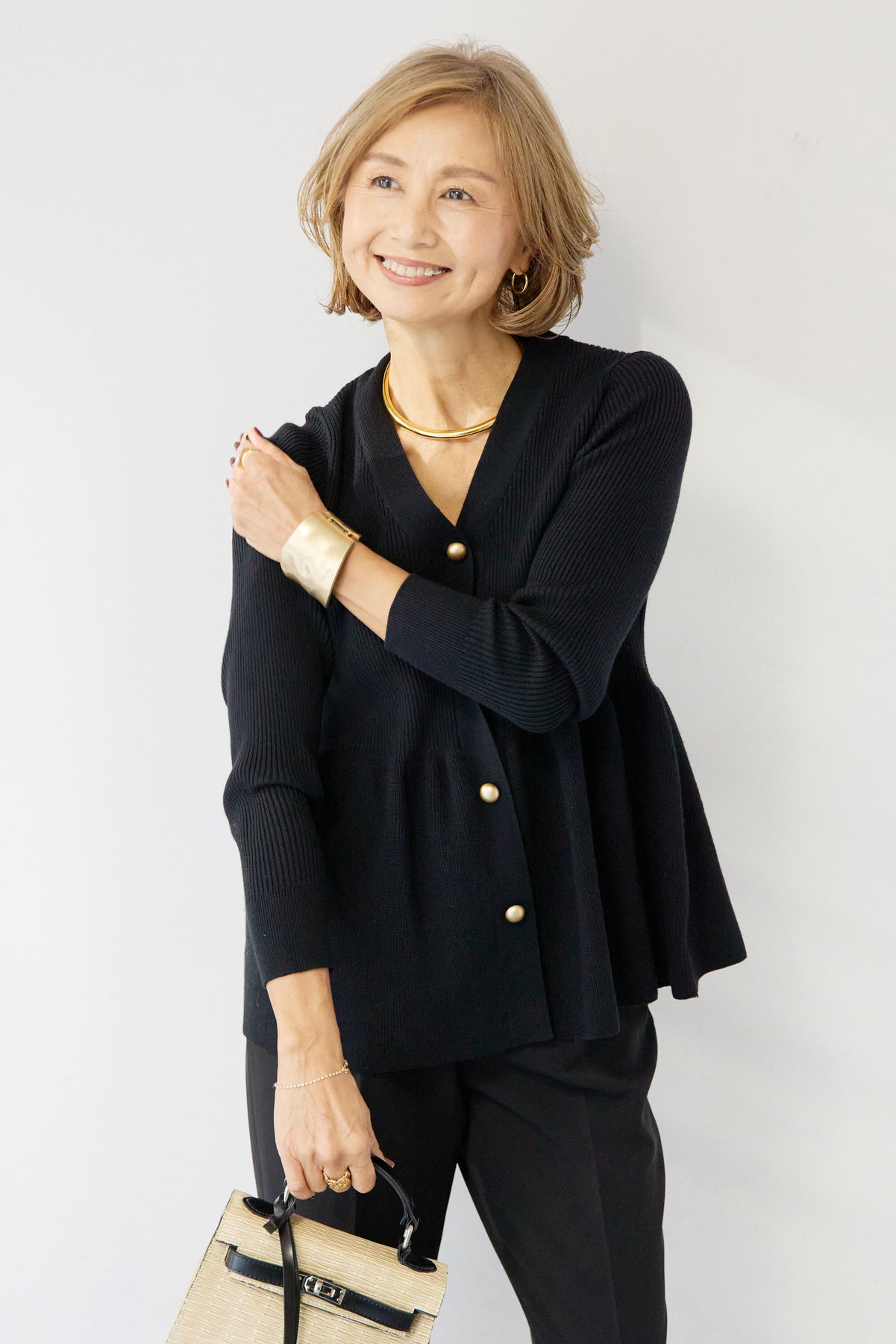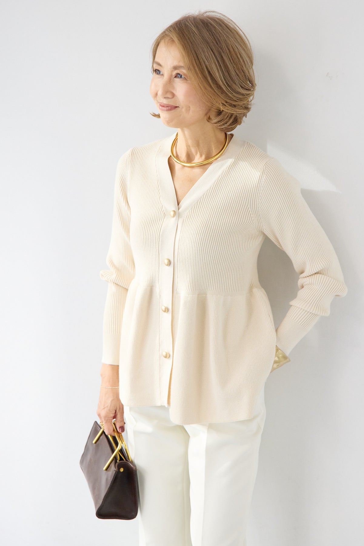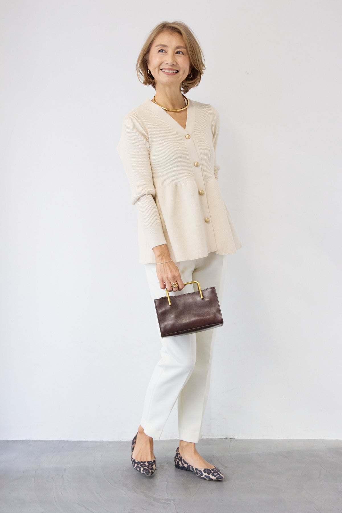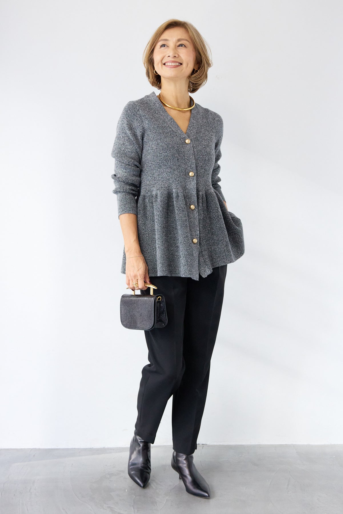 ゴールドボタンペプラムカーディガン/ウォッシャブルテーパードパンツ