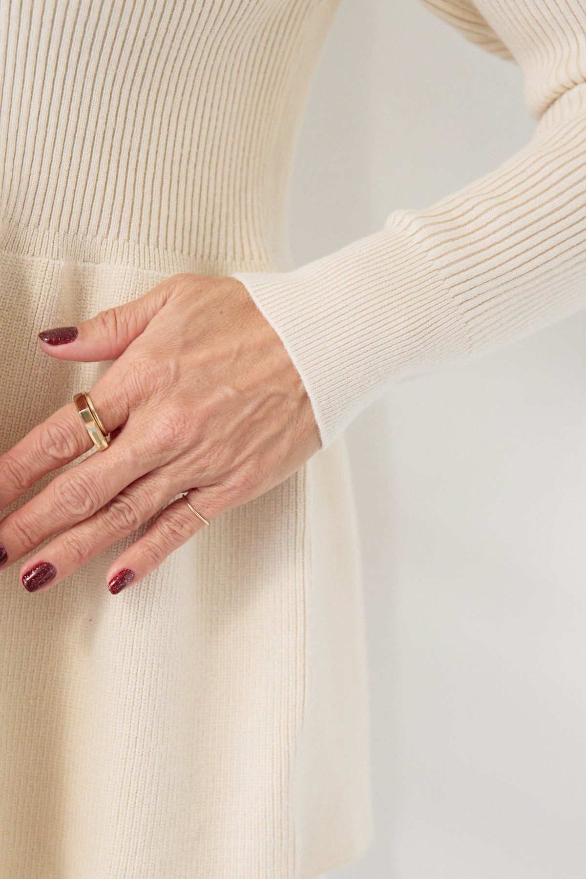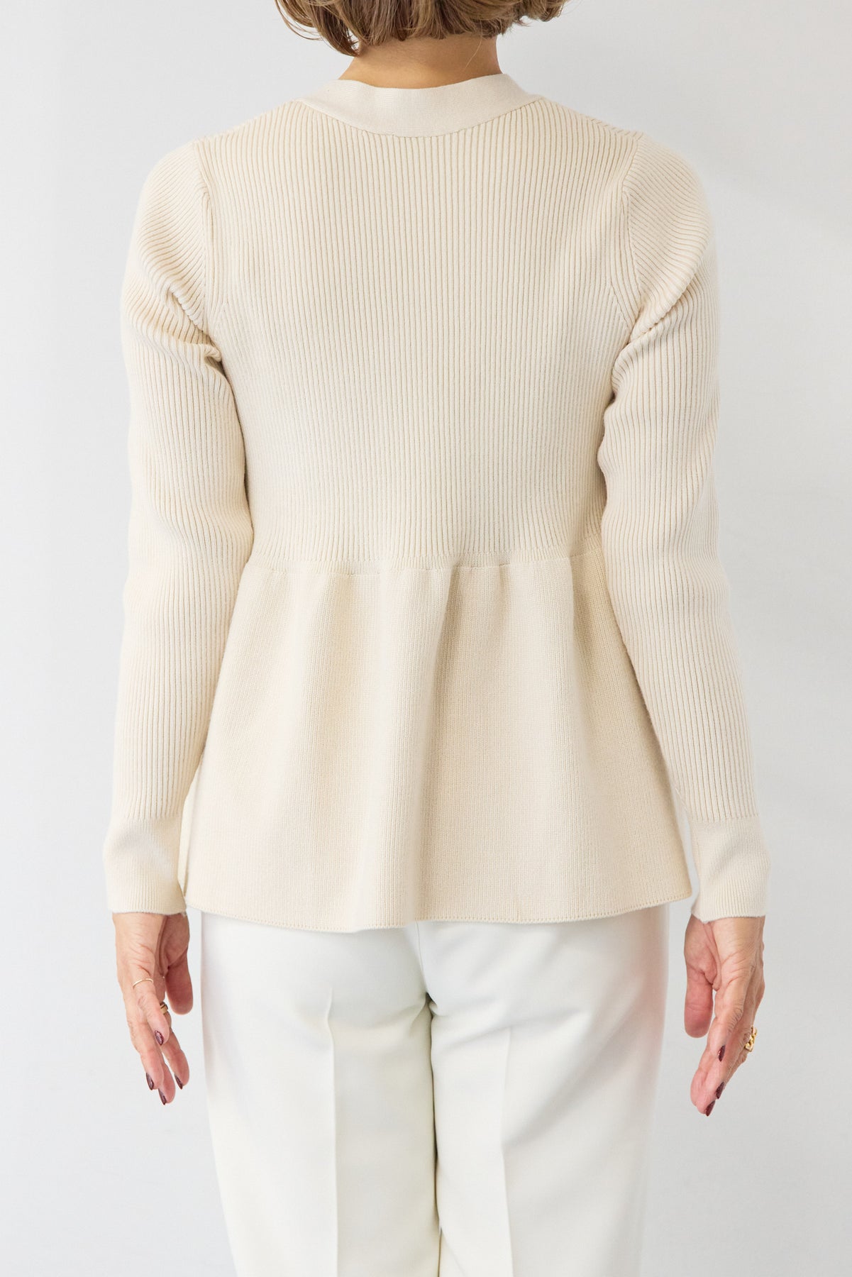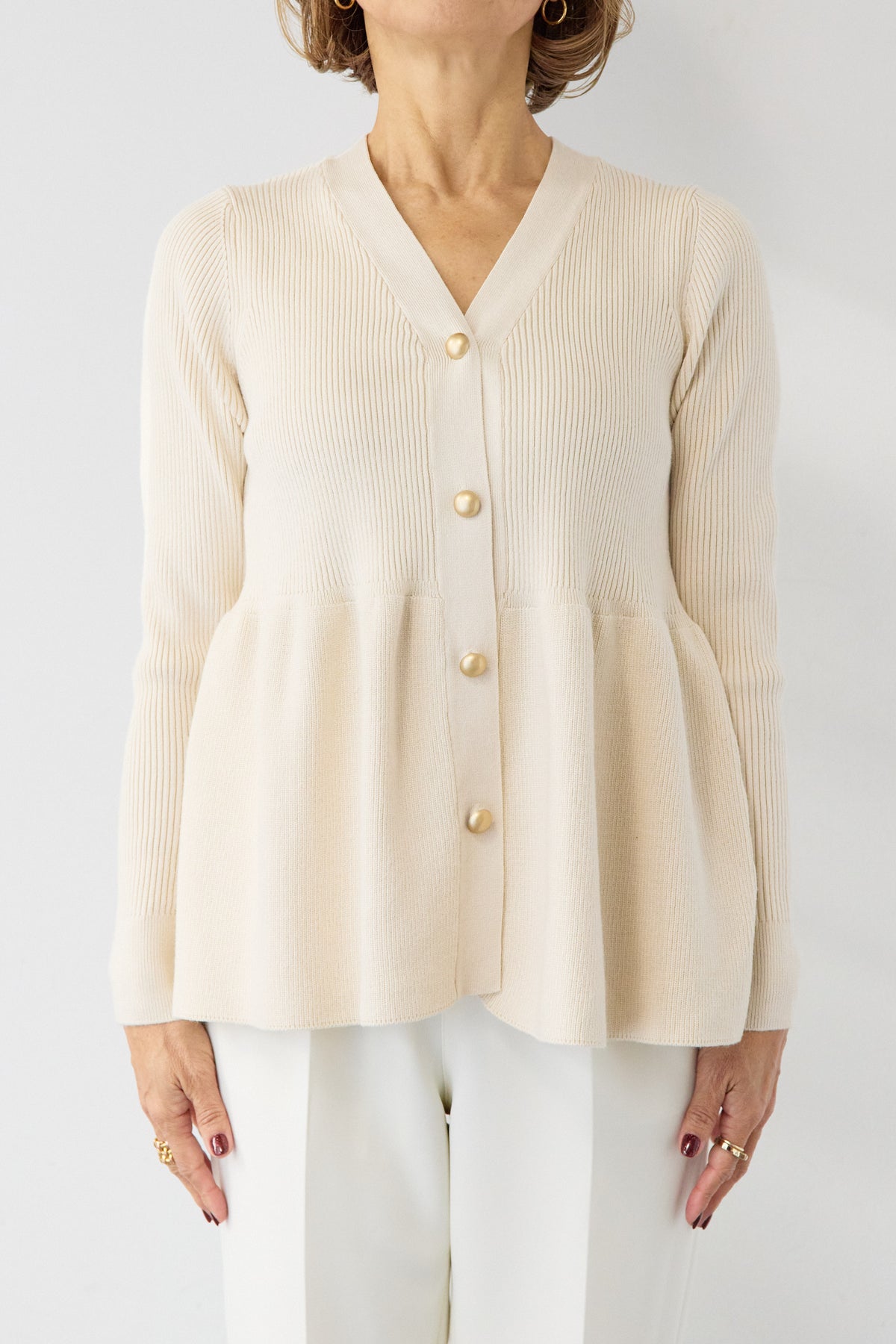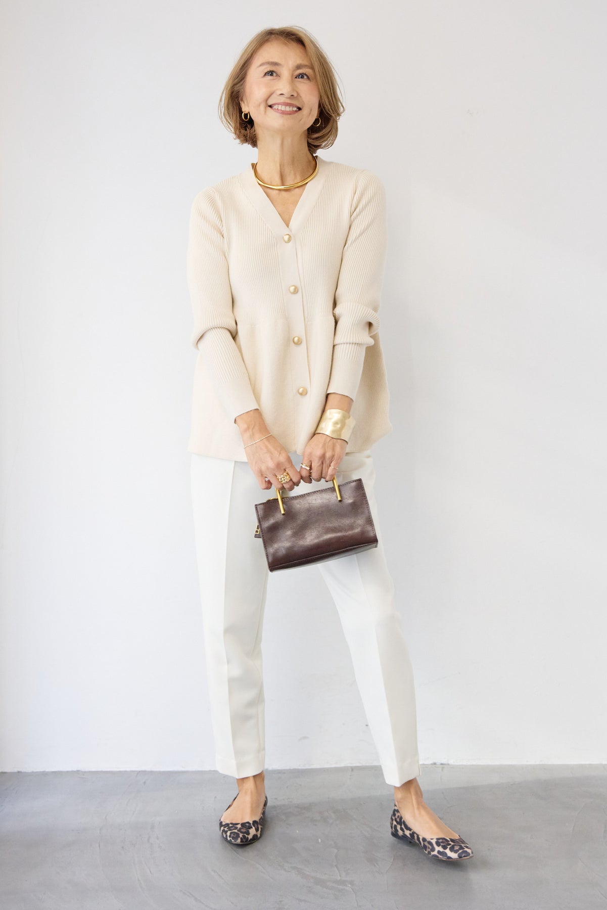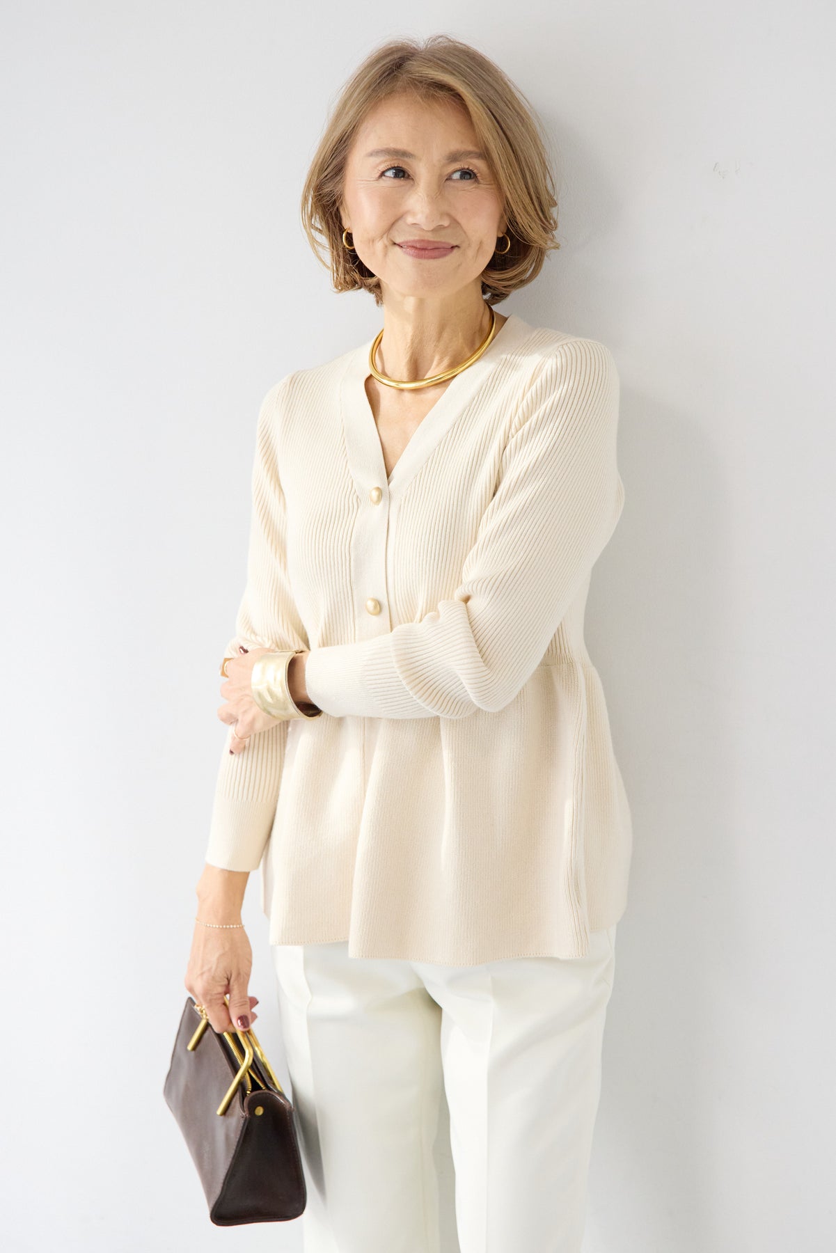 ゴールドボタンペプラムカーディガン/ウォッシャブルテーパードパンツ