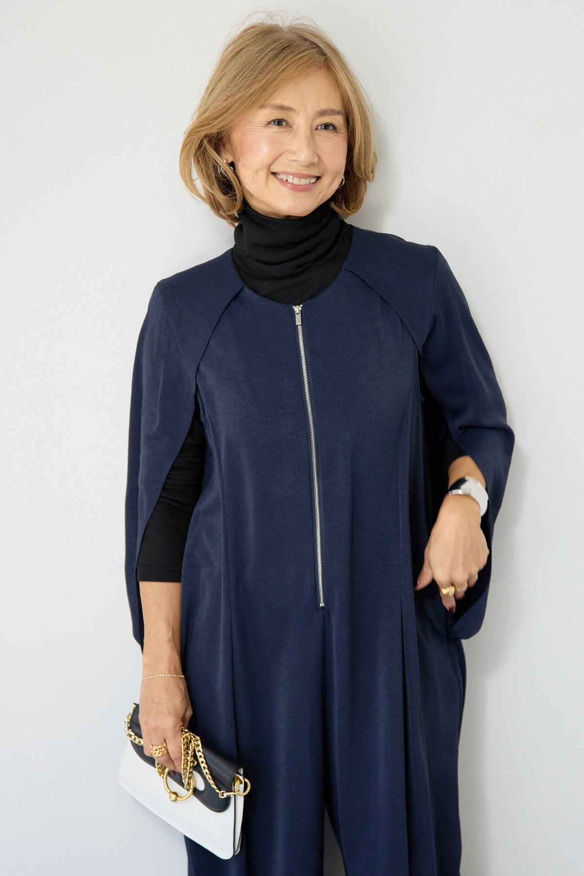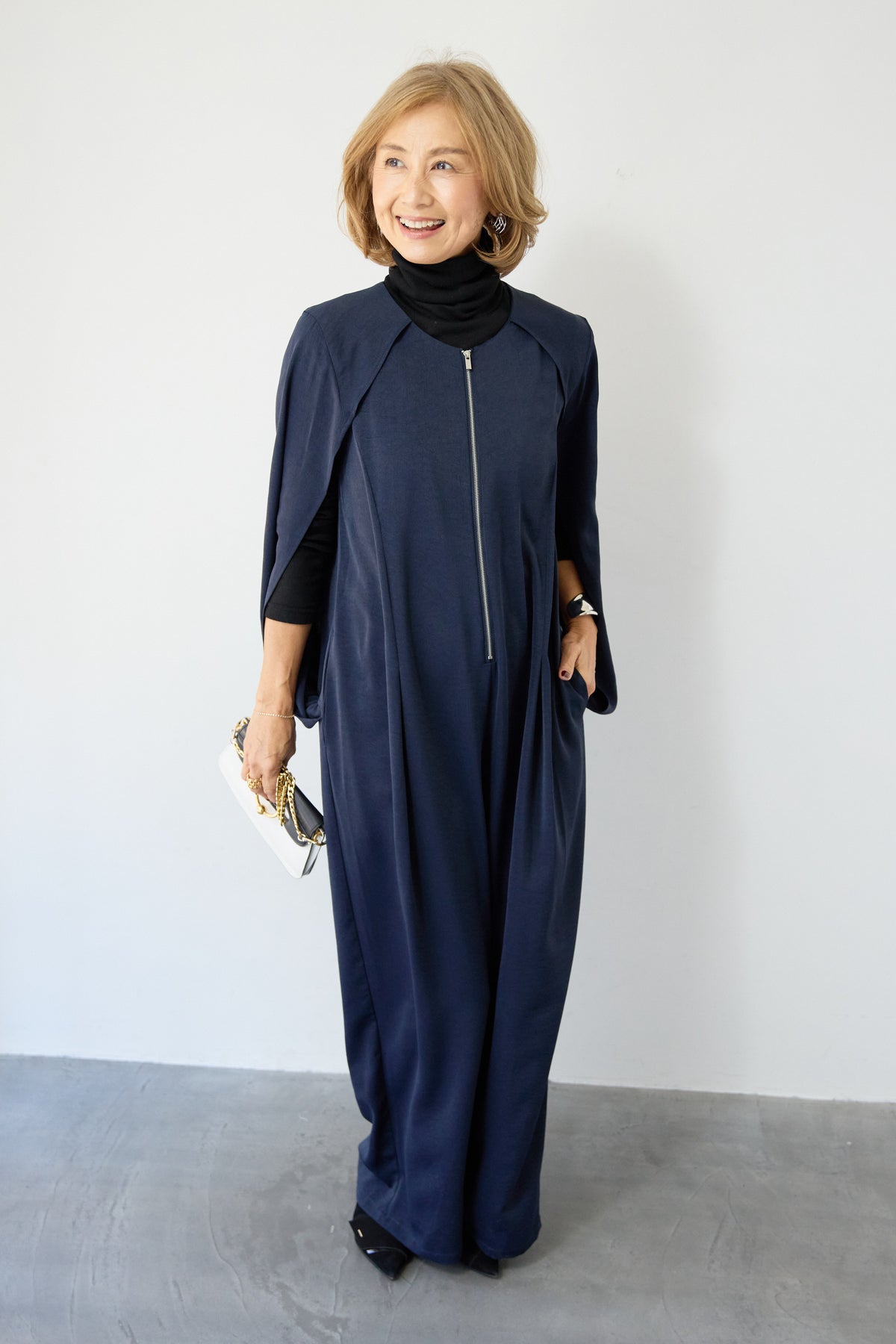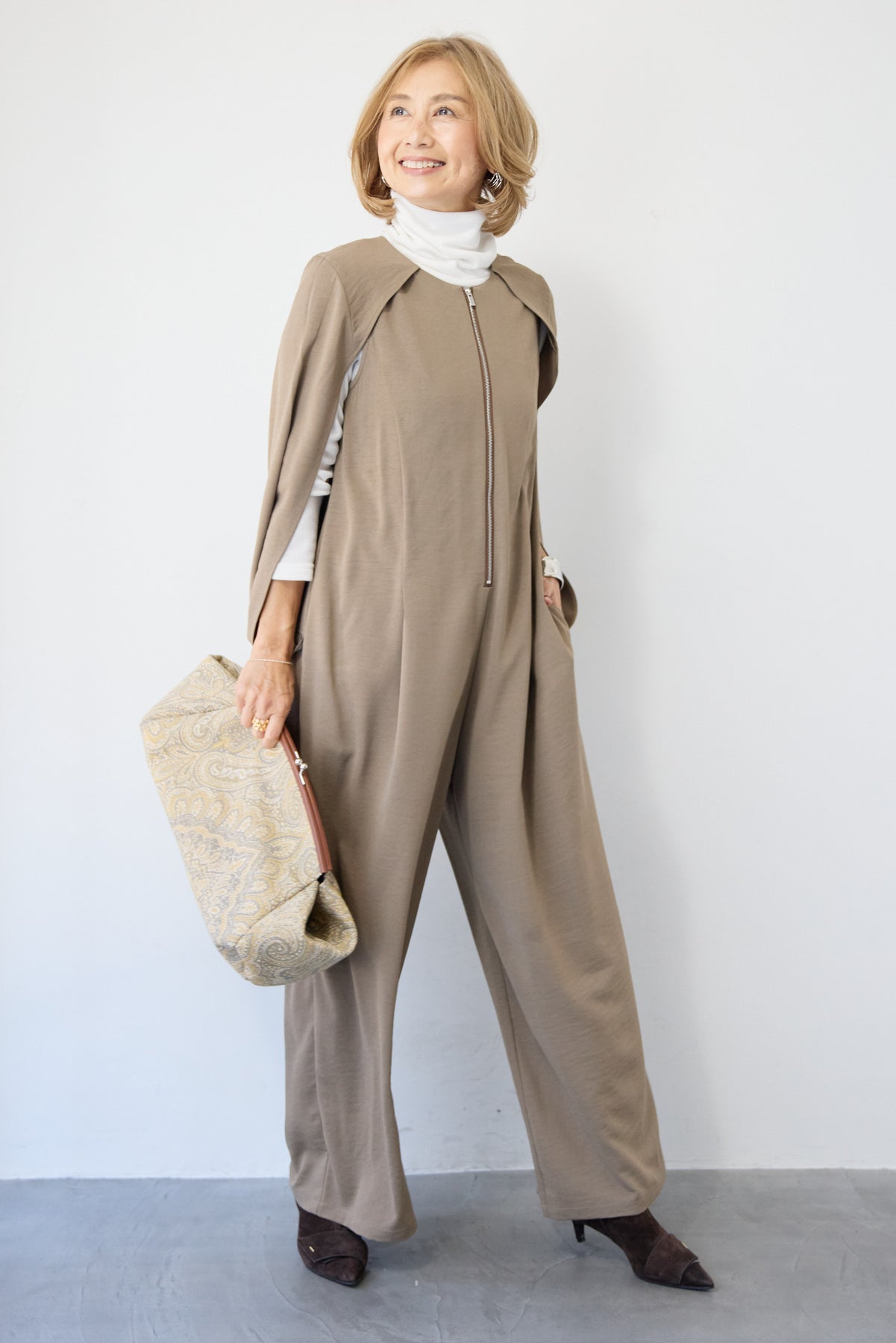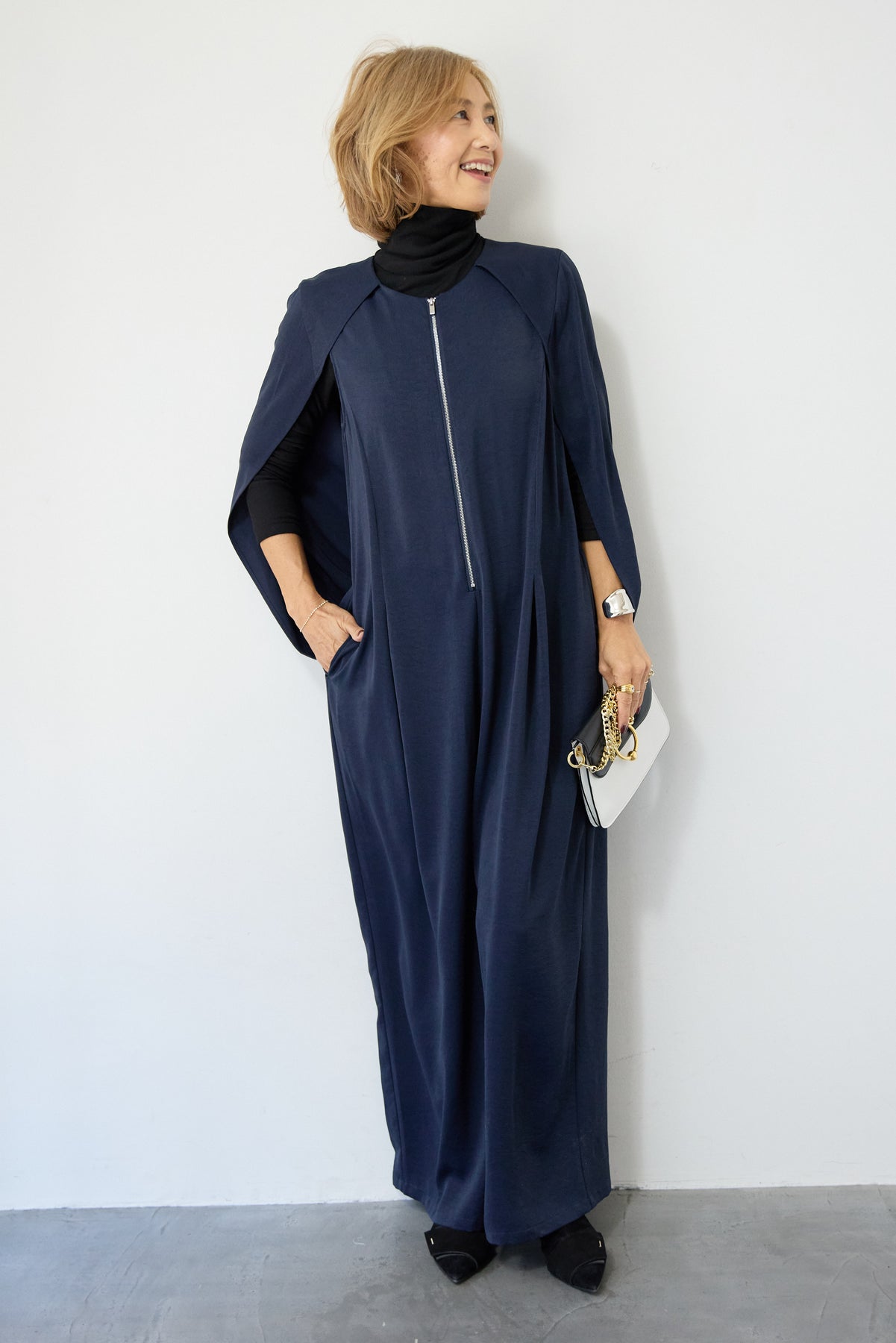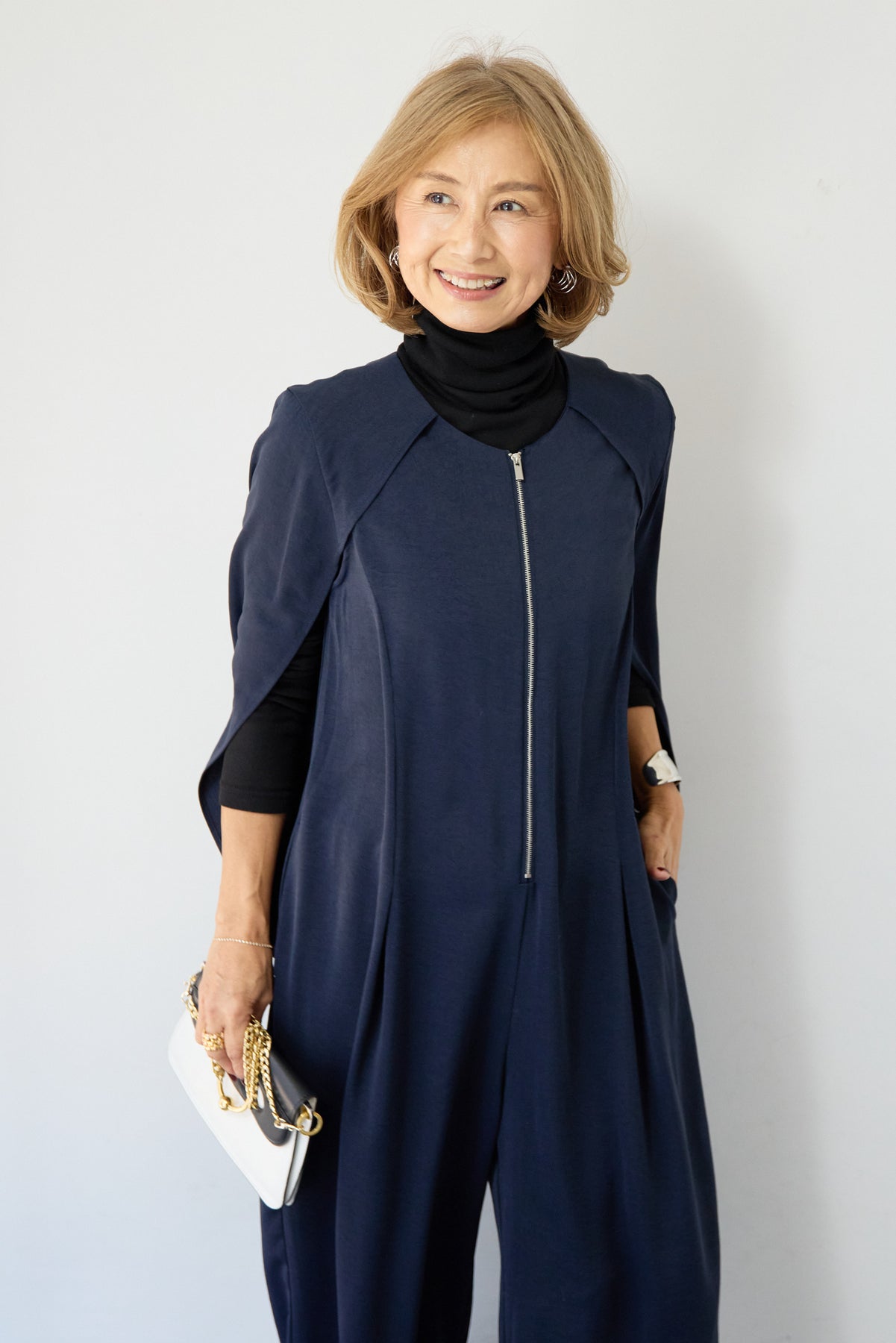 ケープマントオールインワン/ふんわり裏起毛タートルネック