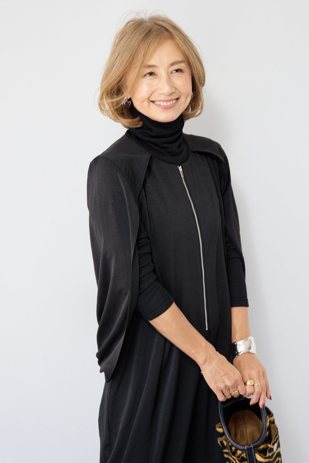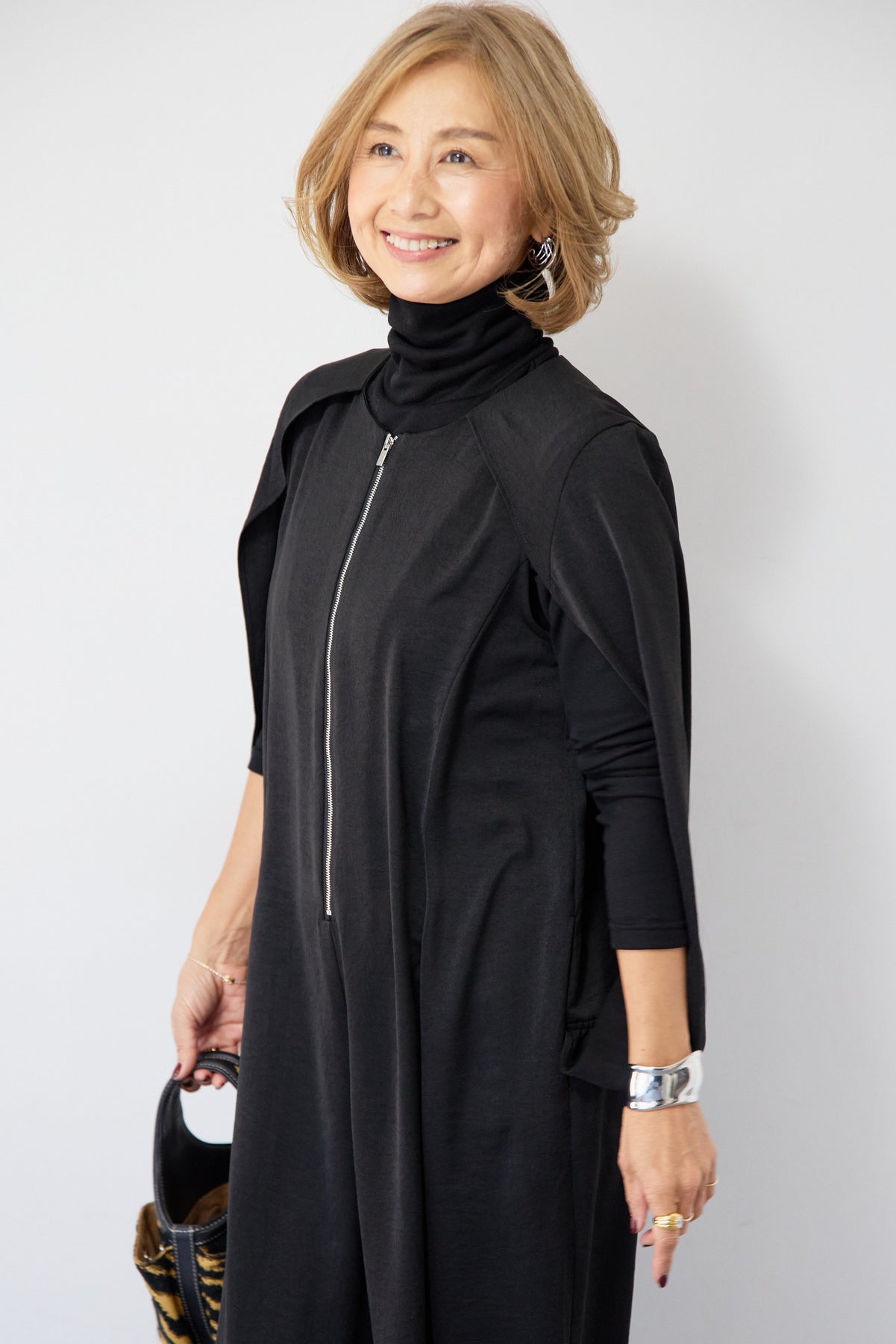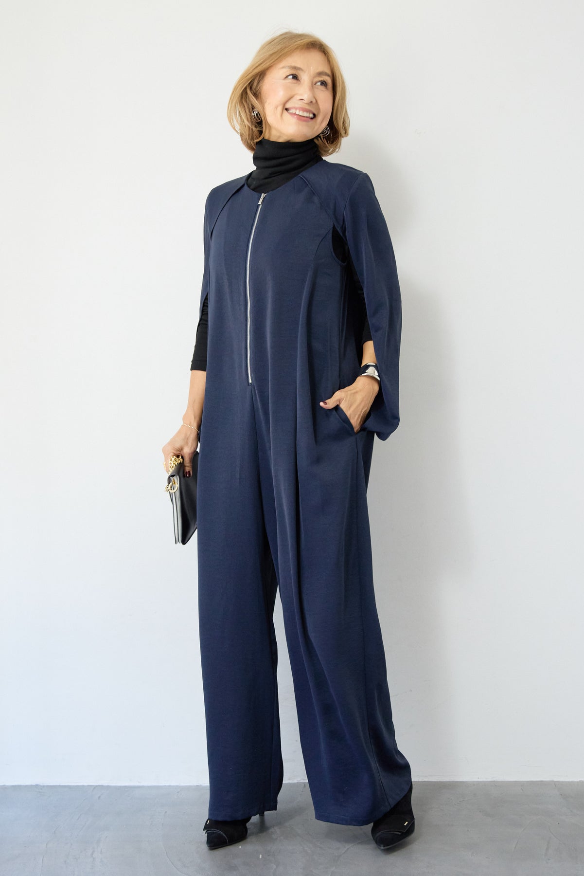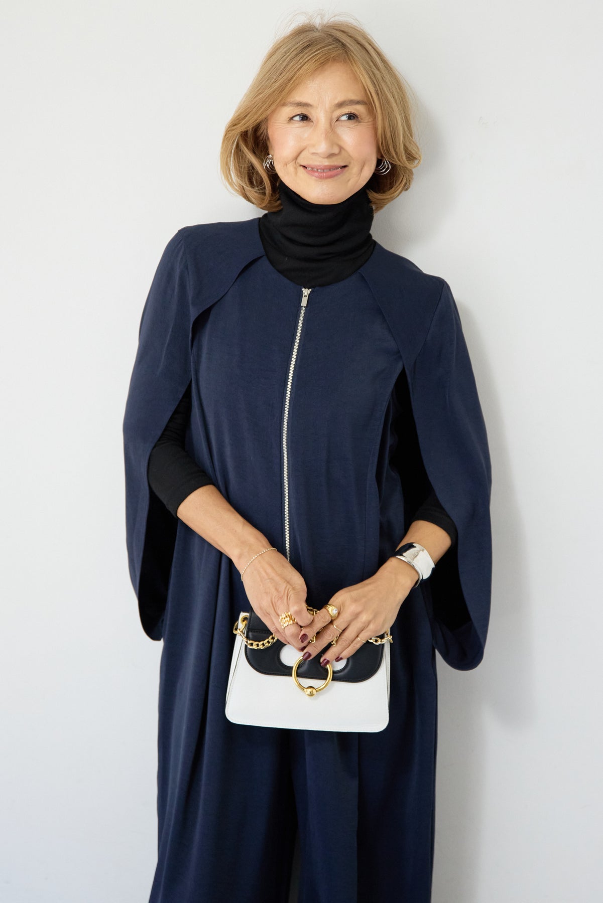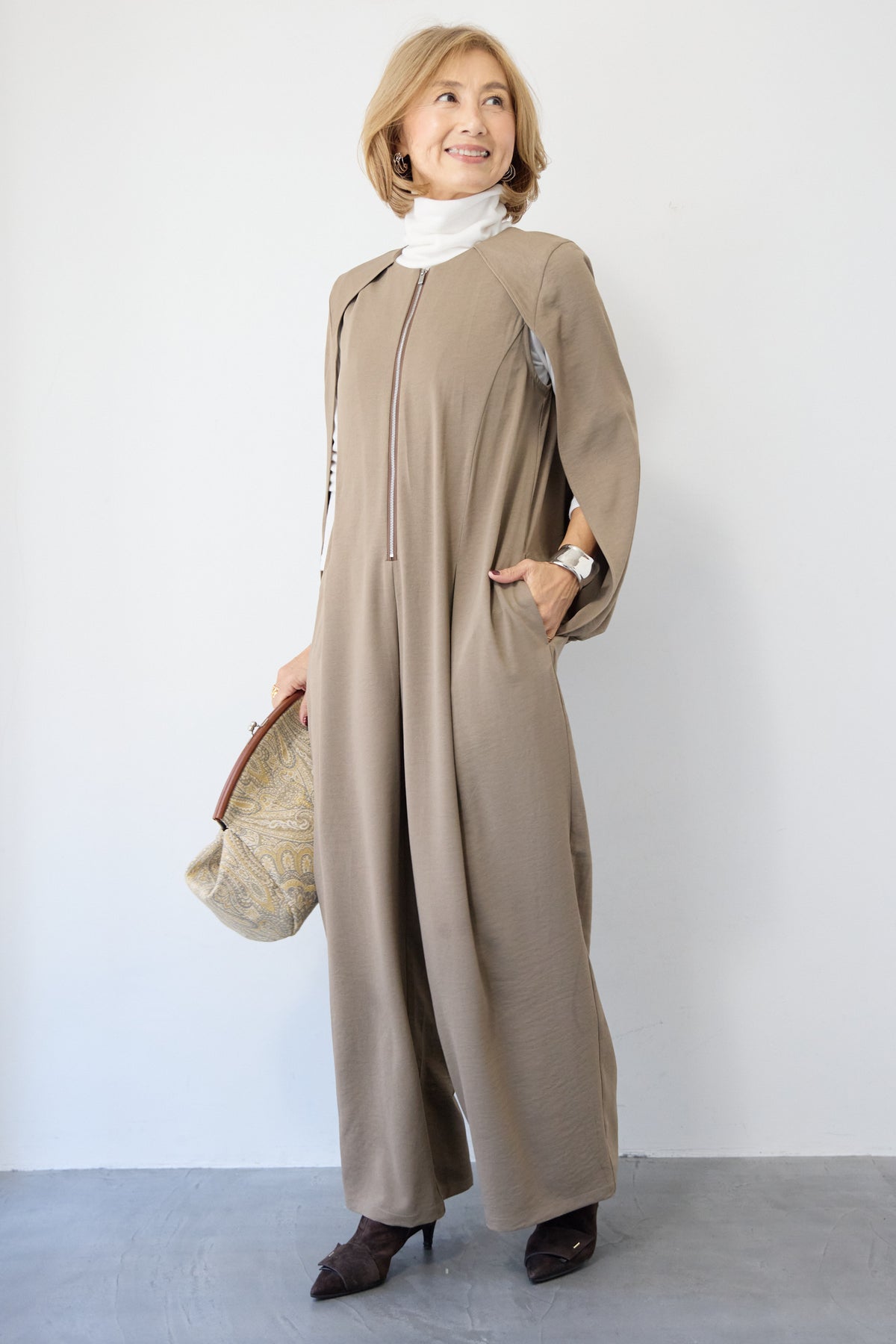 ケープマントオールインワン/ふんわり裏起毛タートルネック
