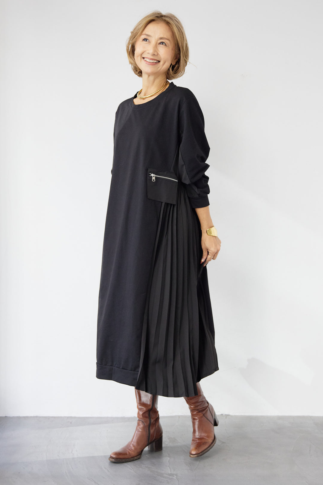 [SET]ショートカールボアベスト+モックネックニットワンピース(2set)