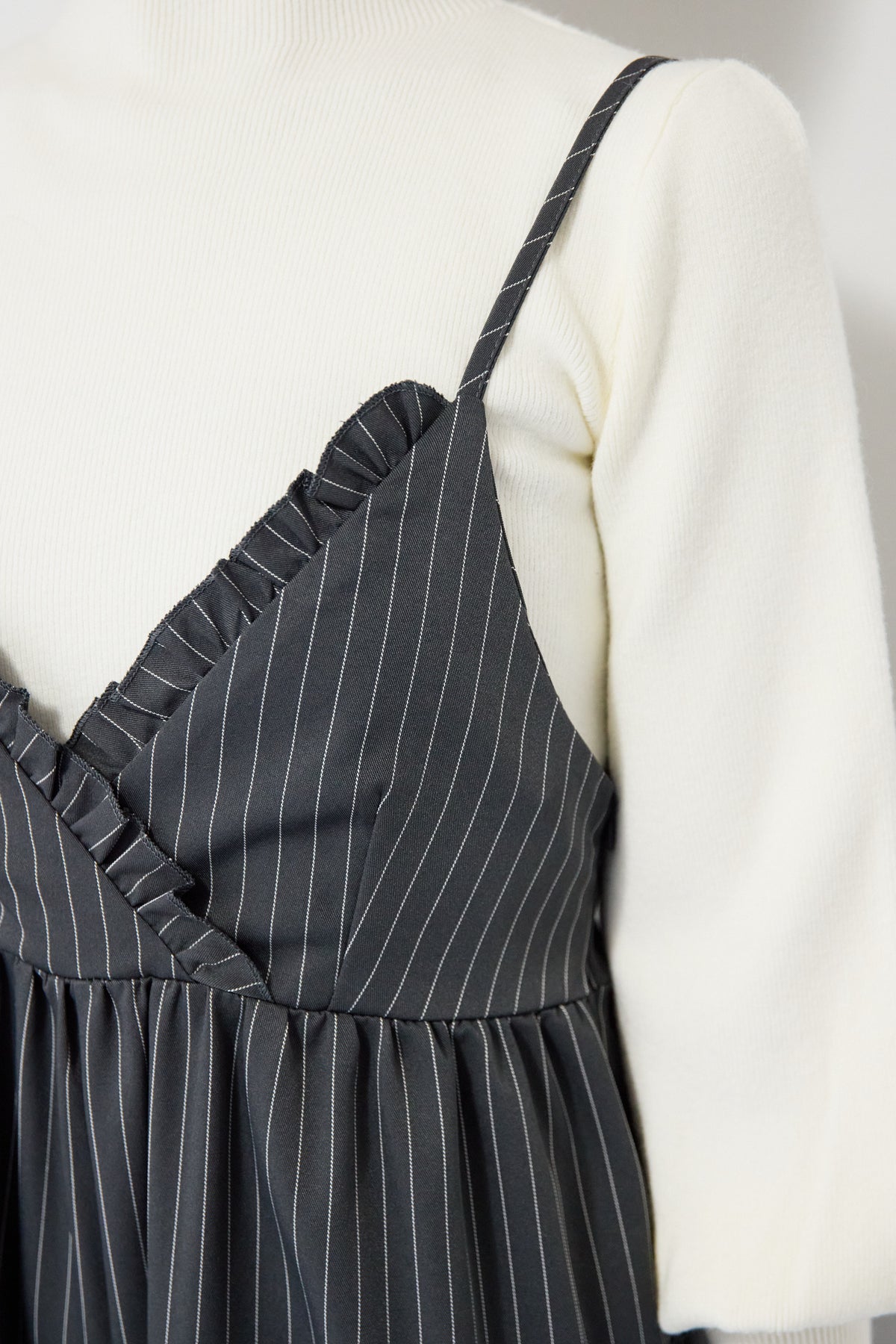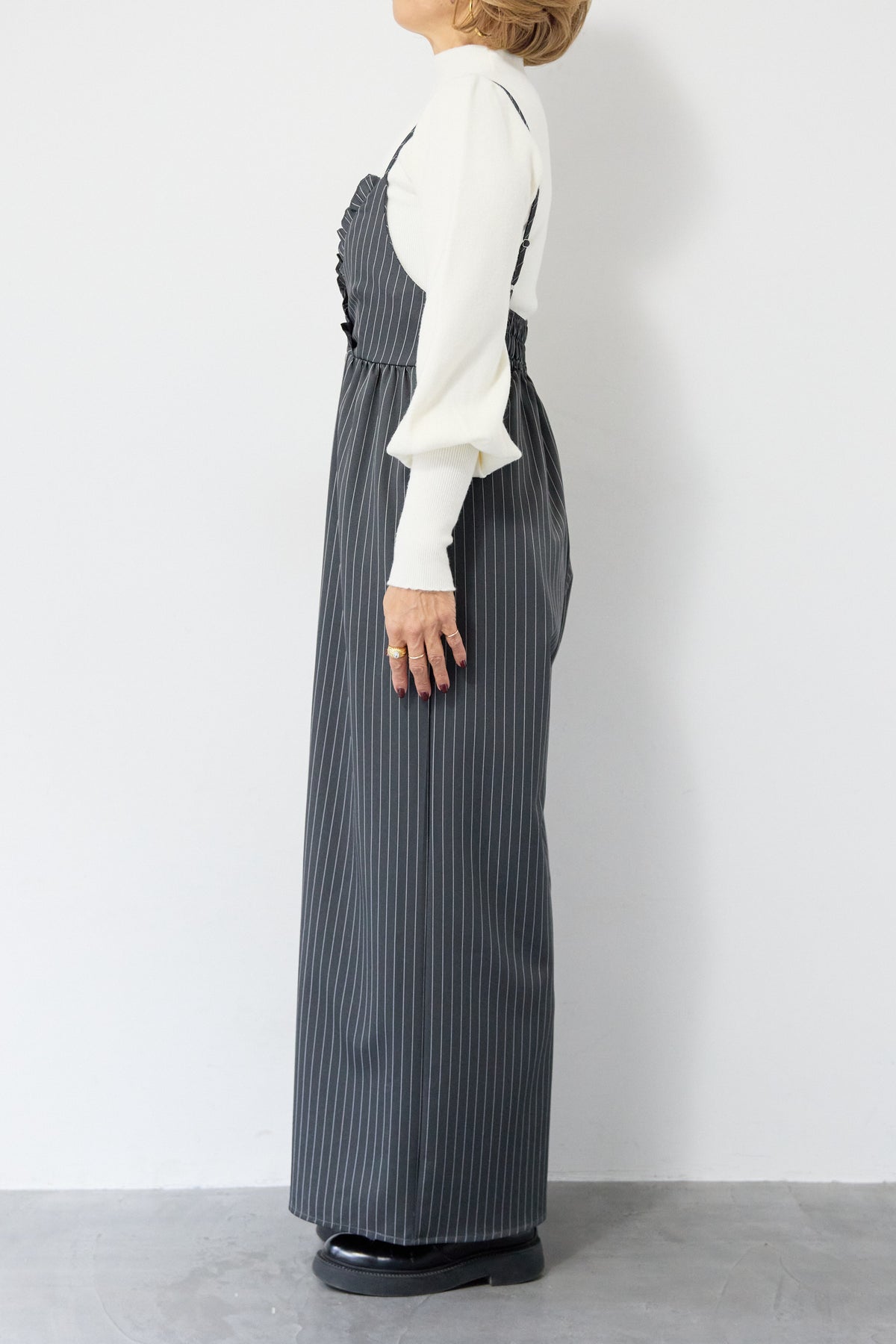 ピンストライプ・フリルカシュクールサロペット