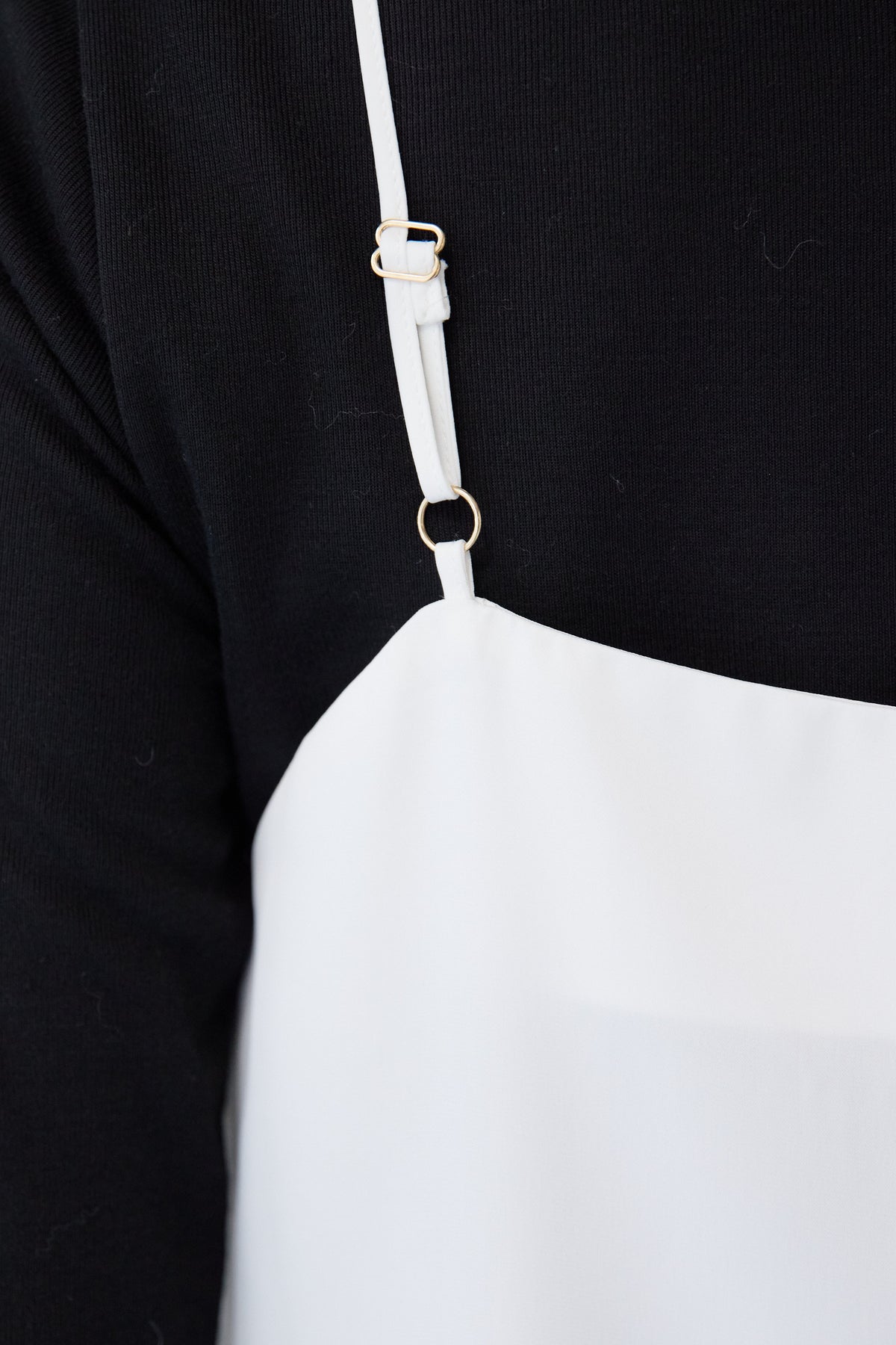 肩紐は華奢なストラップ仕様で、アジャスター付きのため長さ調節が可能。