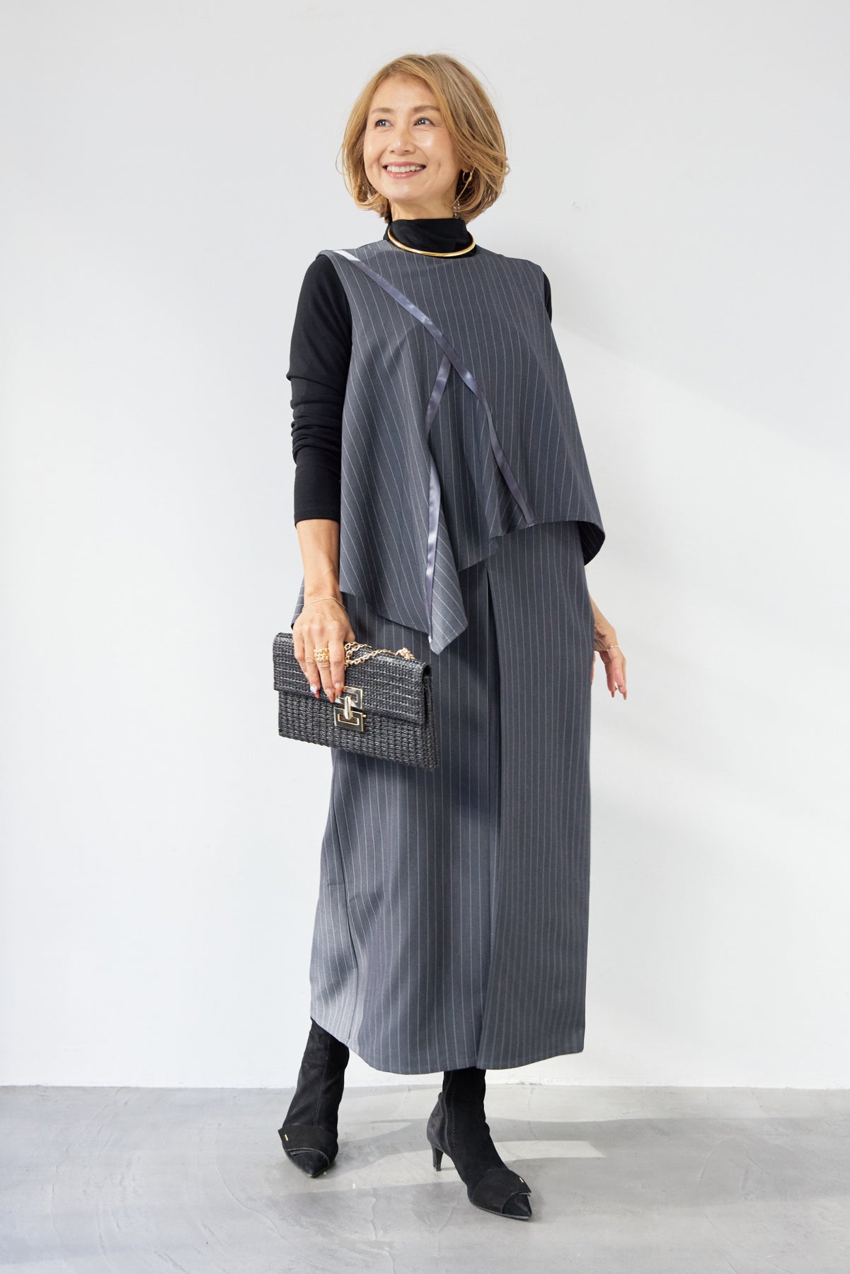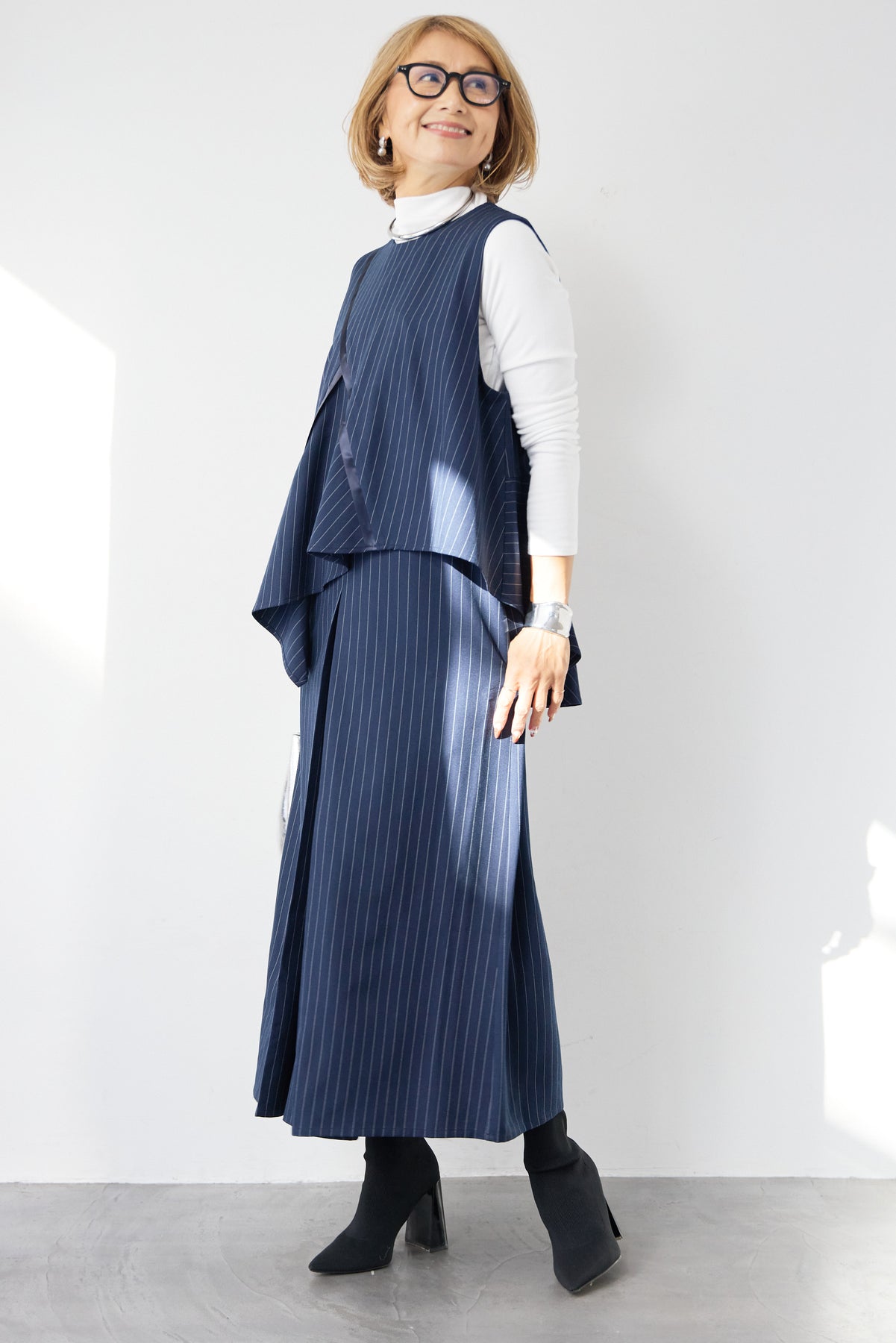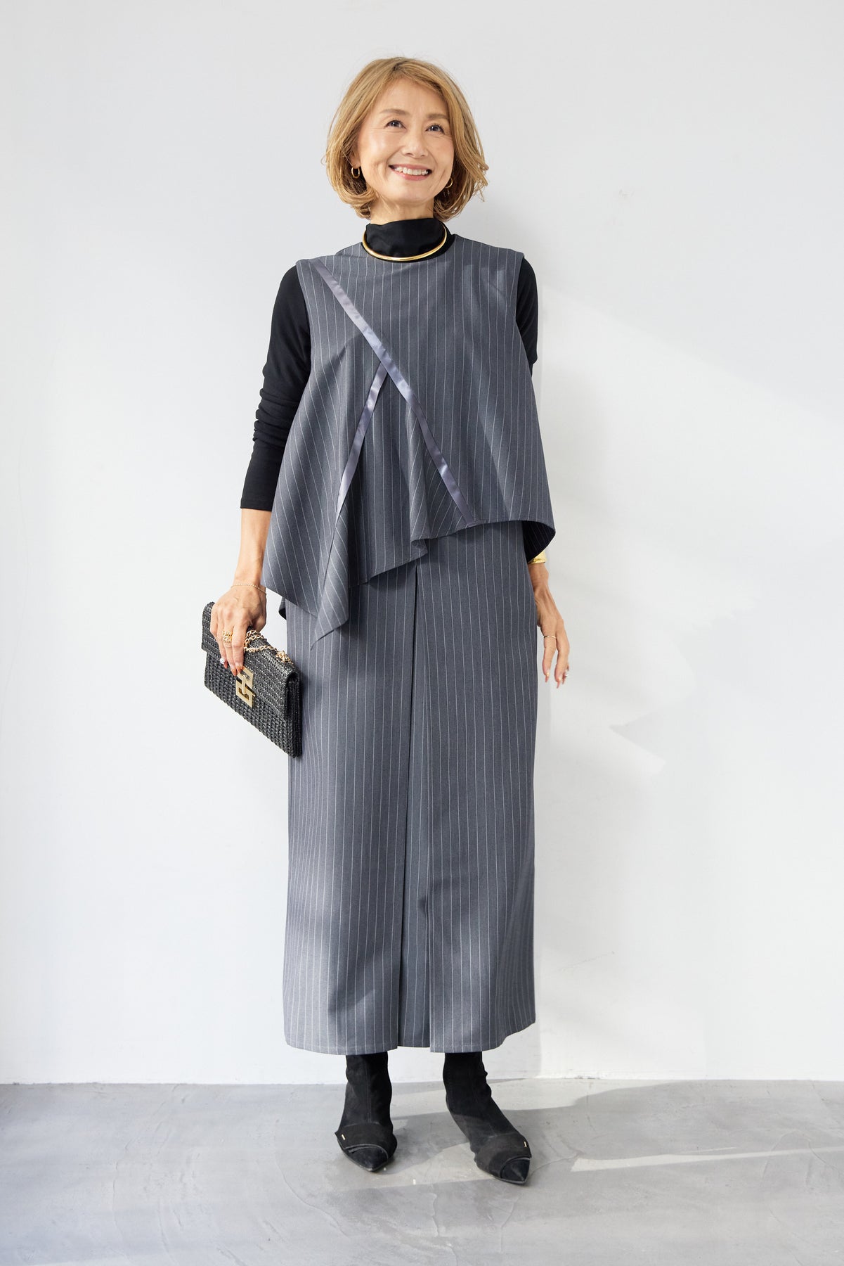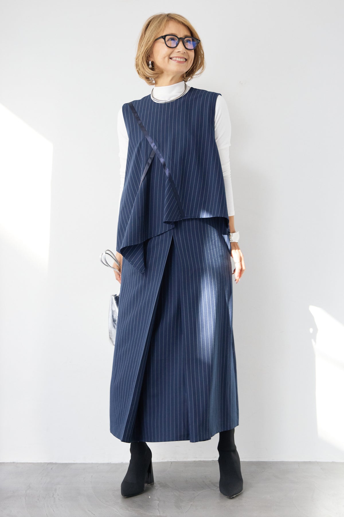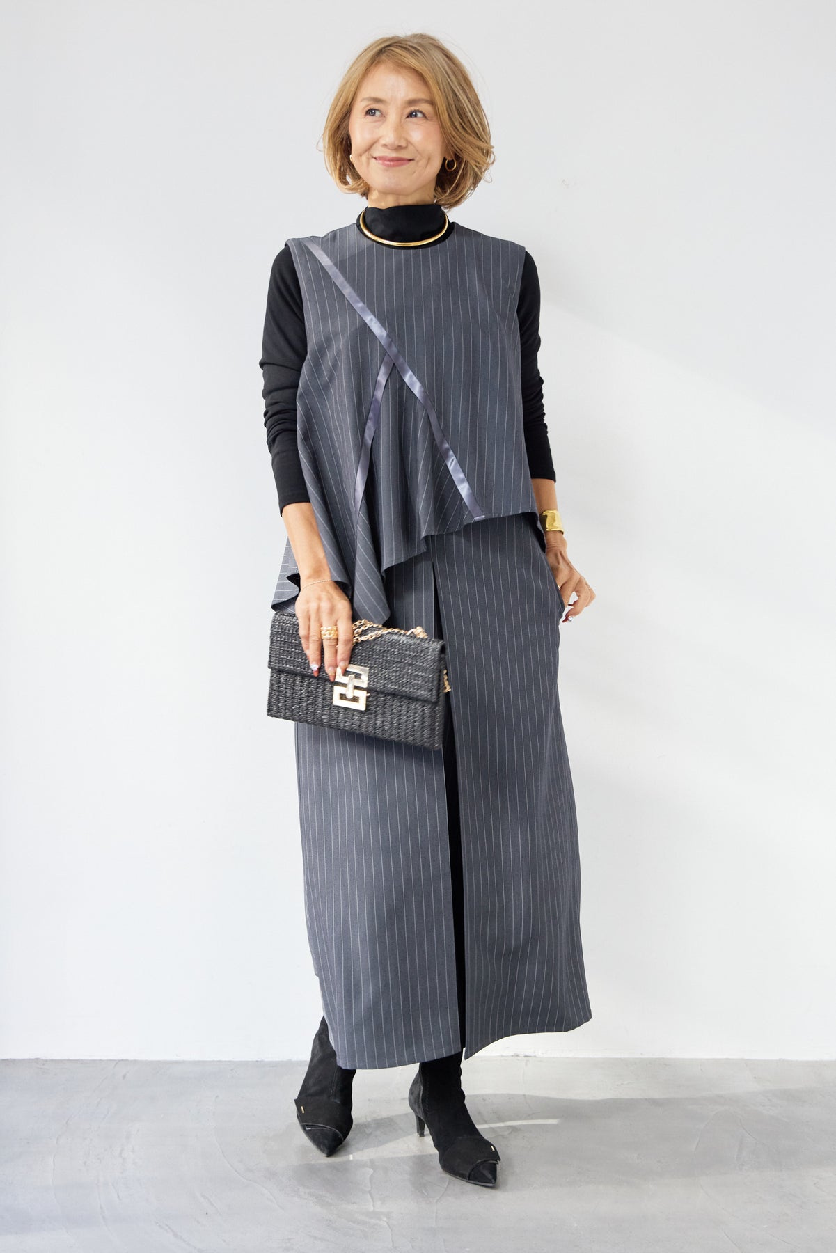 [SET]アシンメトリーストライプジャンスカ+タートルインナー(2set)