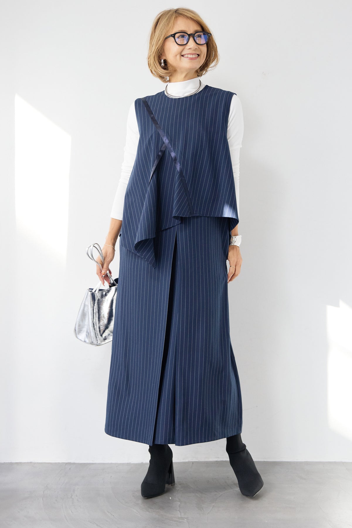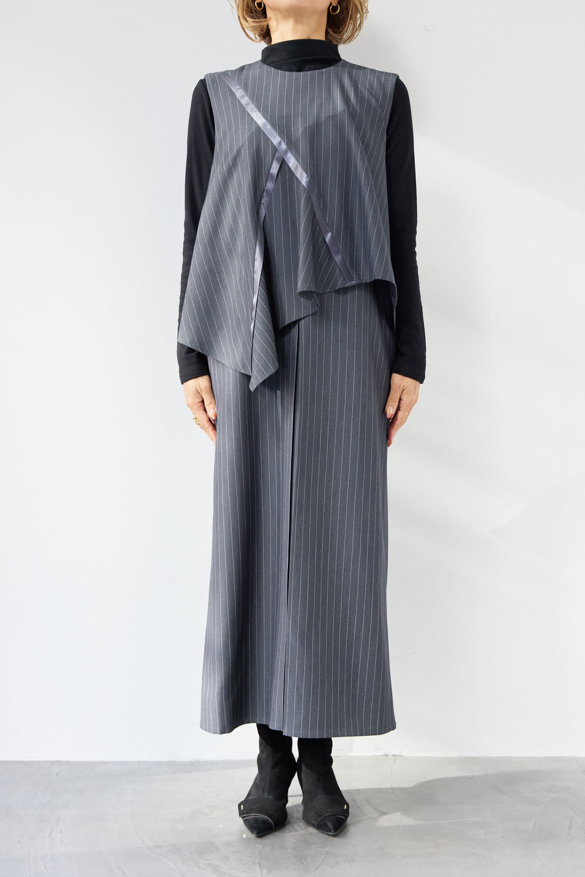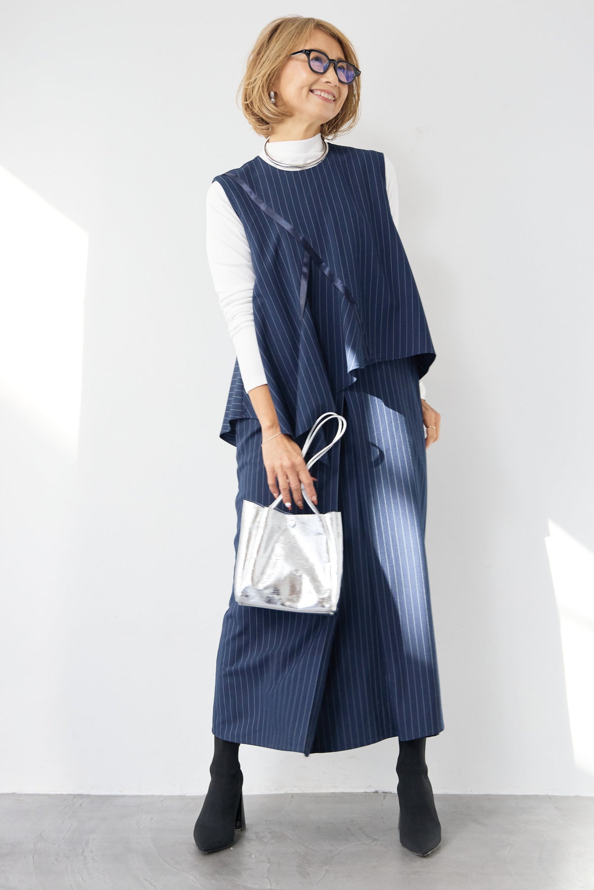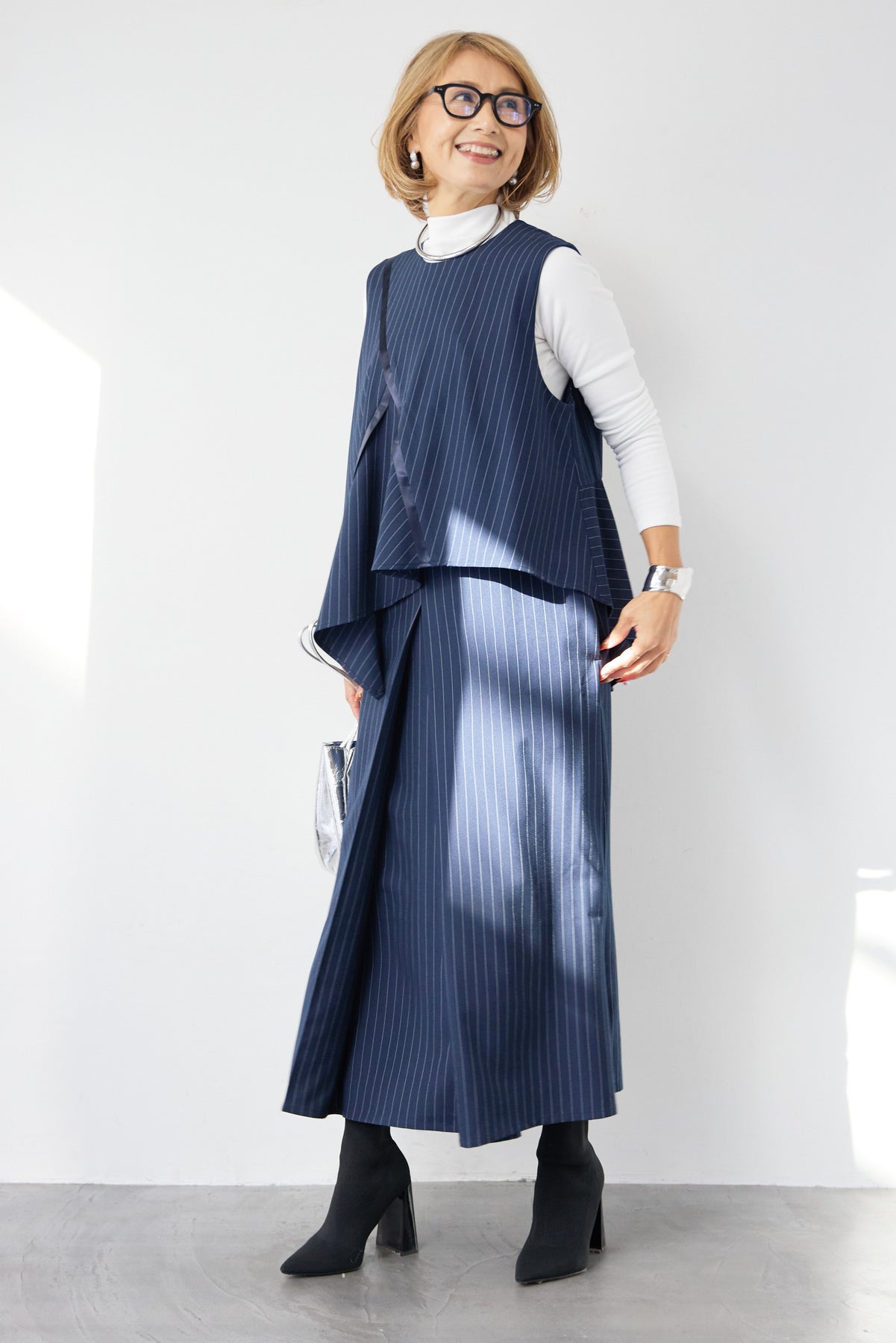 [SET]アシンメトリーストライプジャンスカ+タートルインナー(2set)