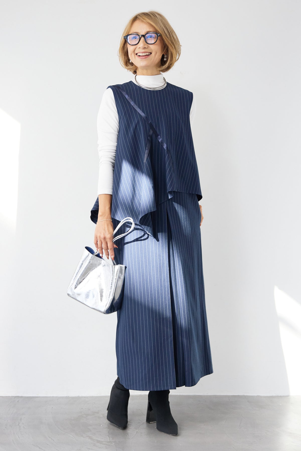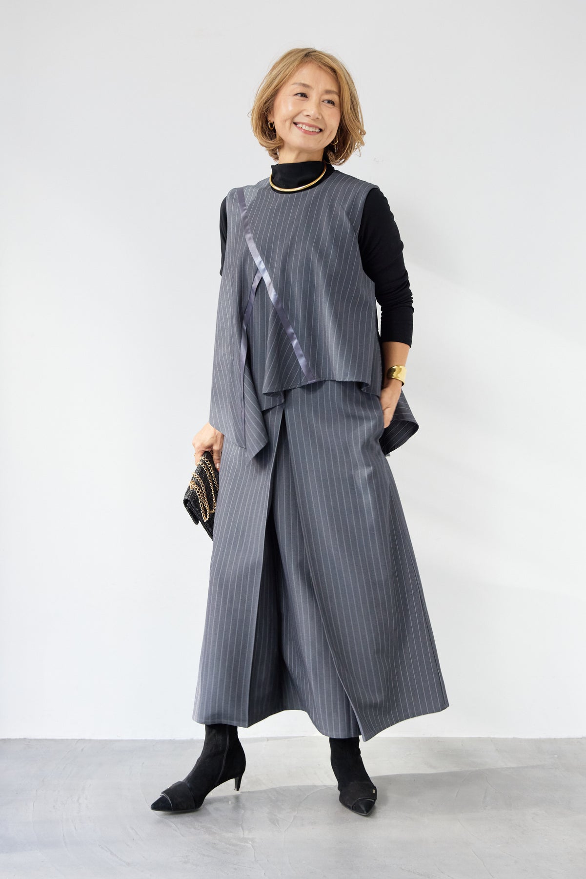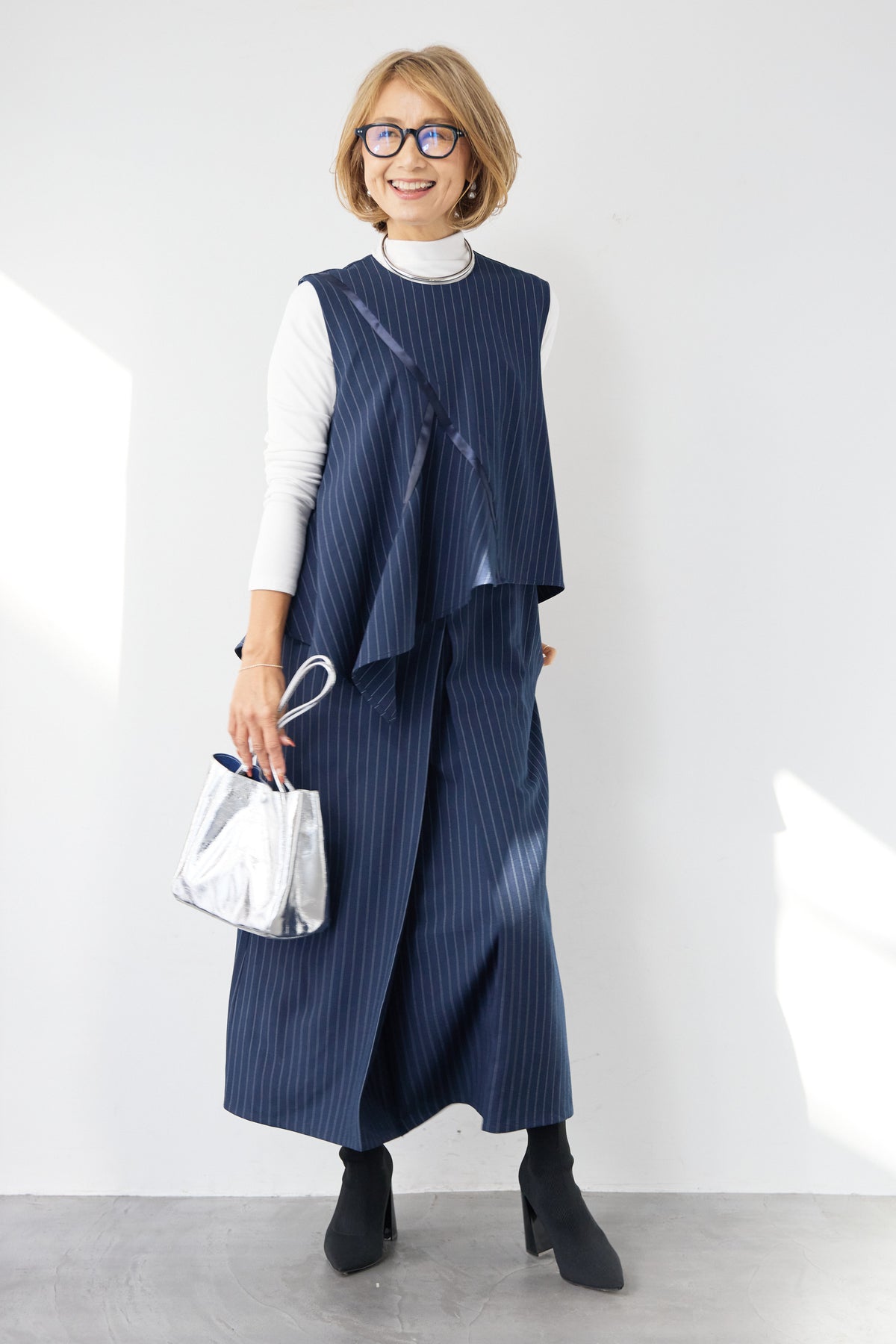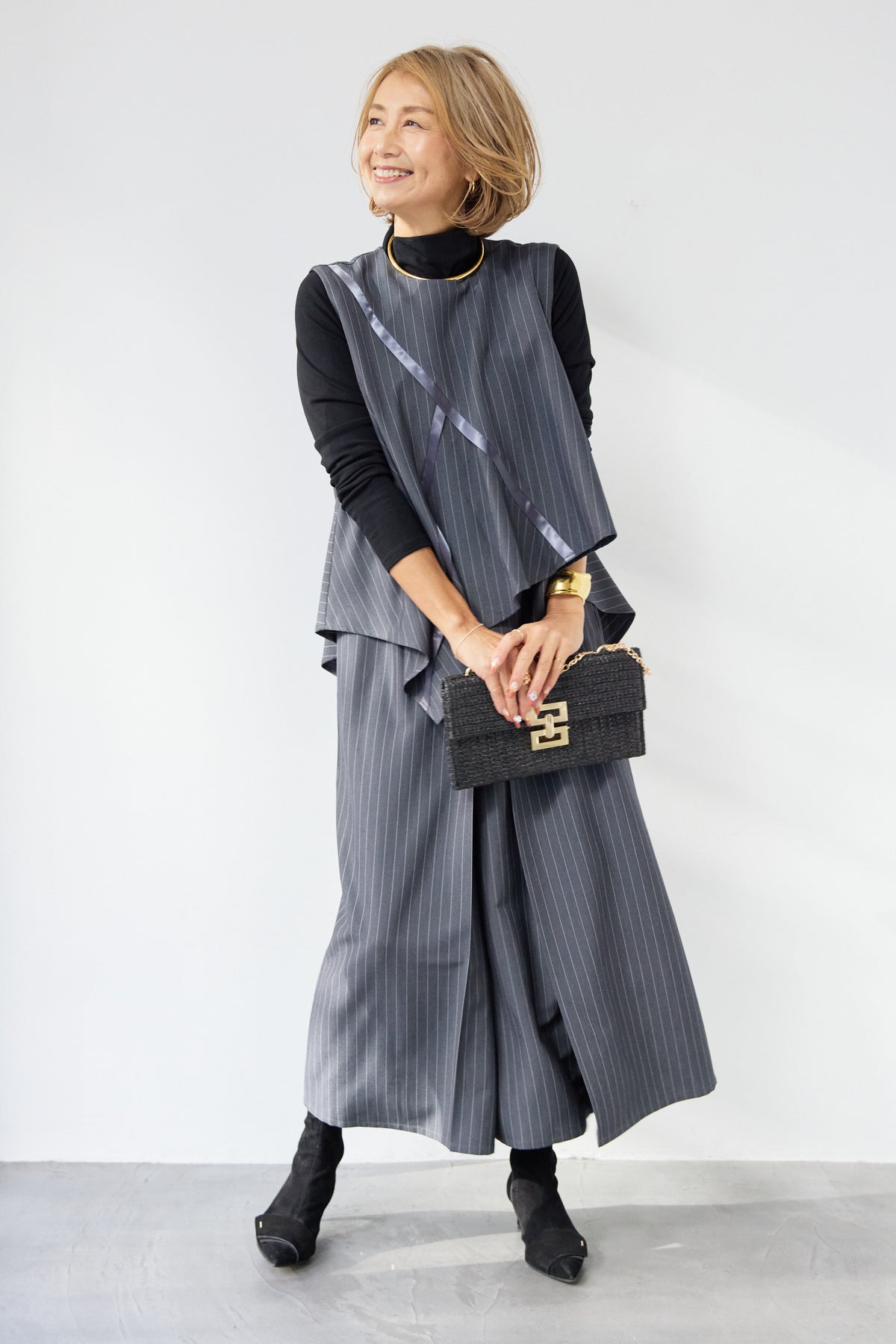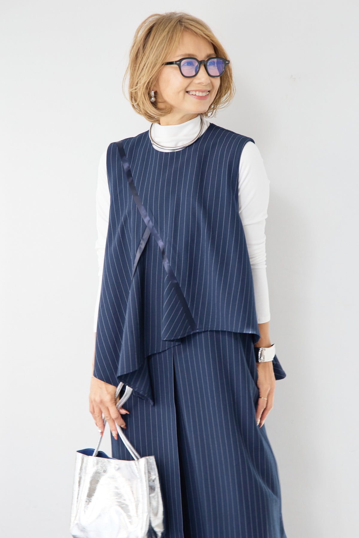 [SET]アシンメトリーストライプジャンスカ+タートルインナー(2set)