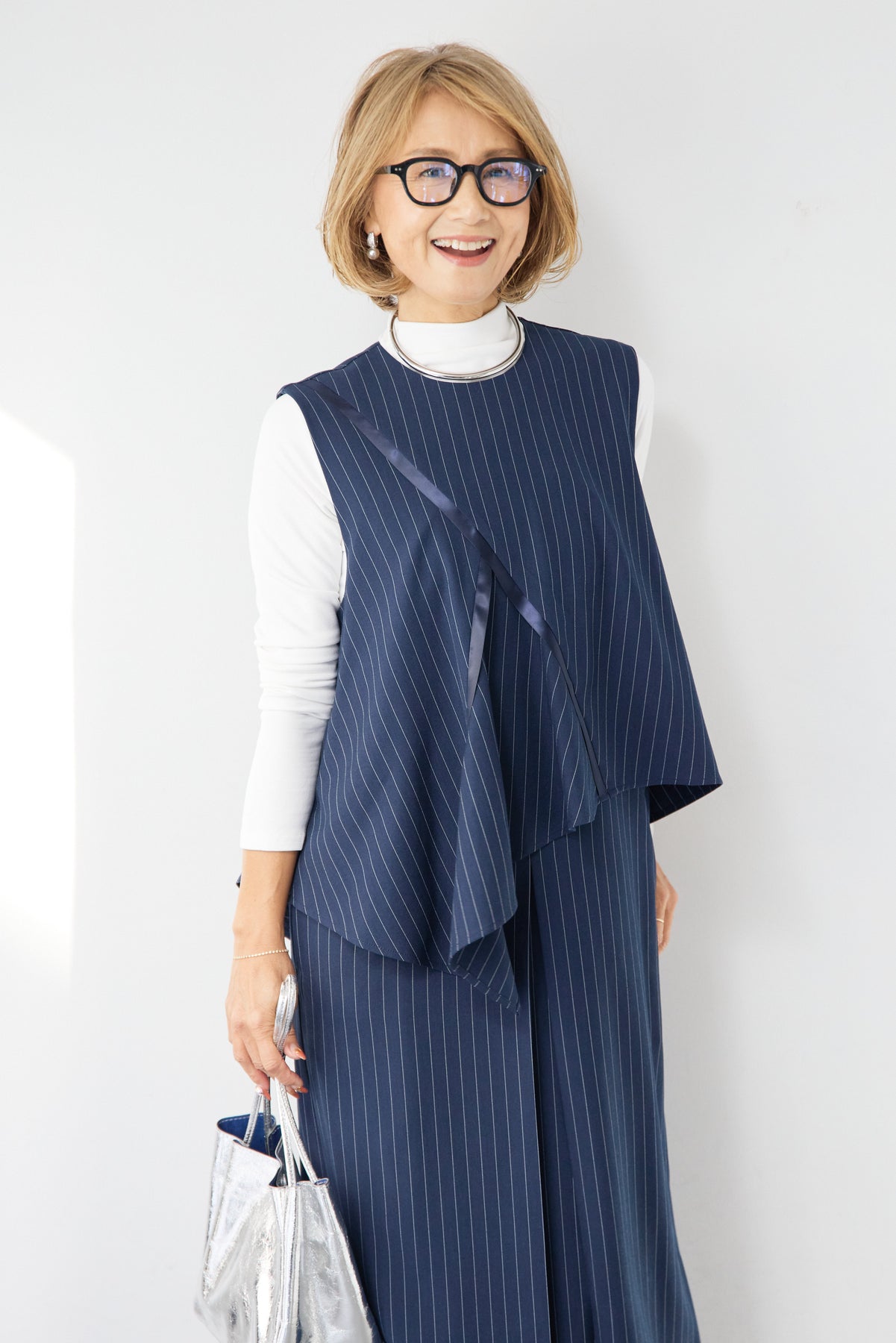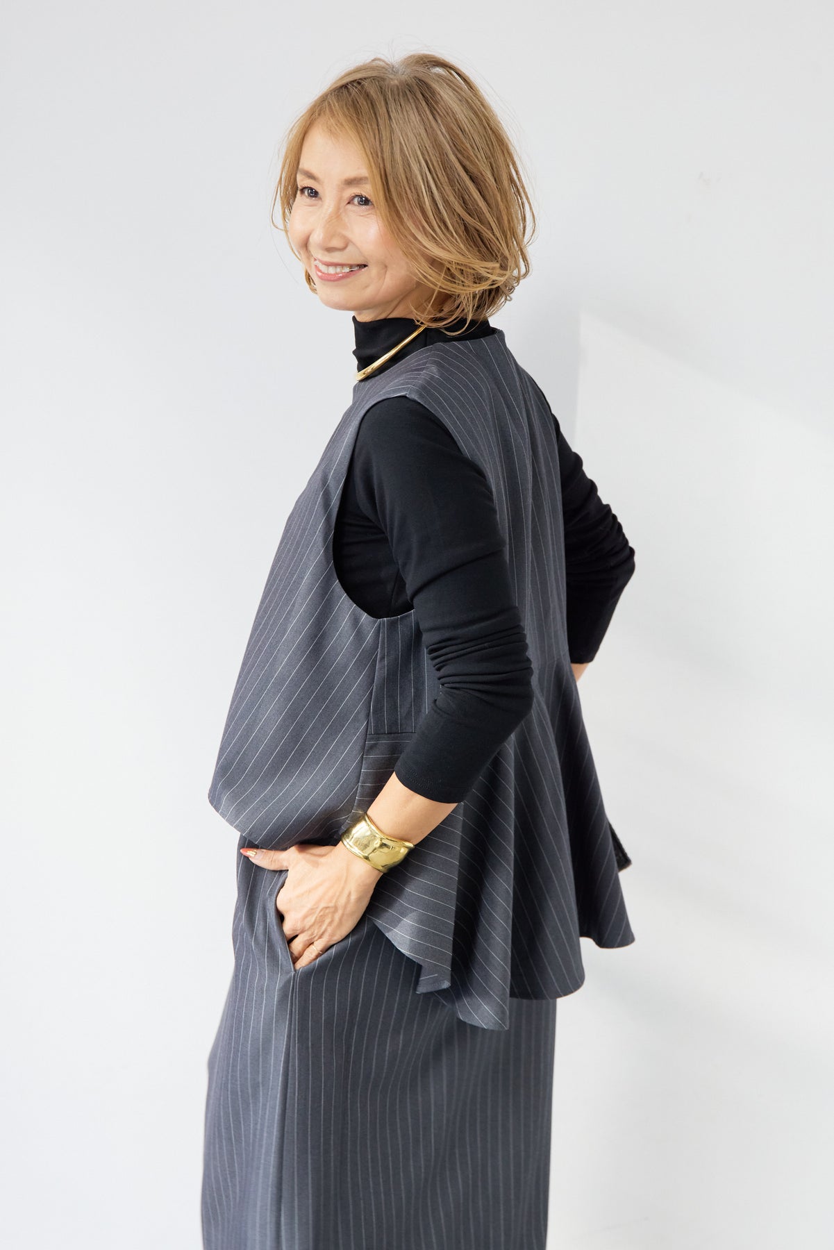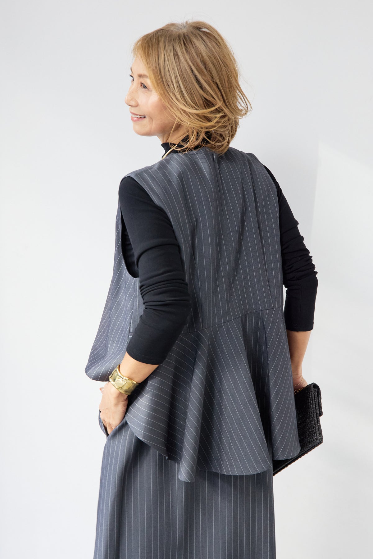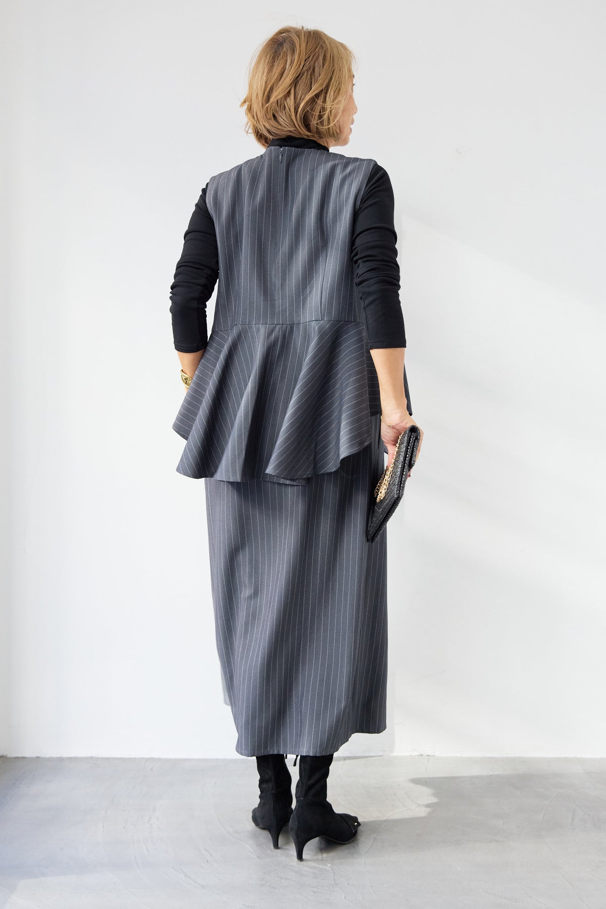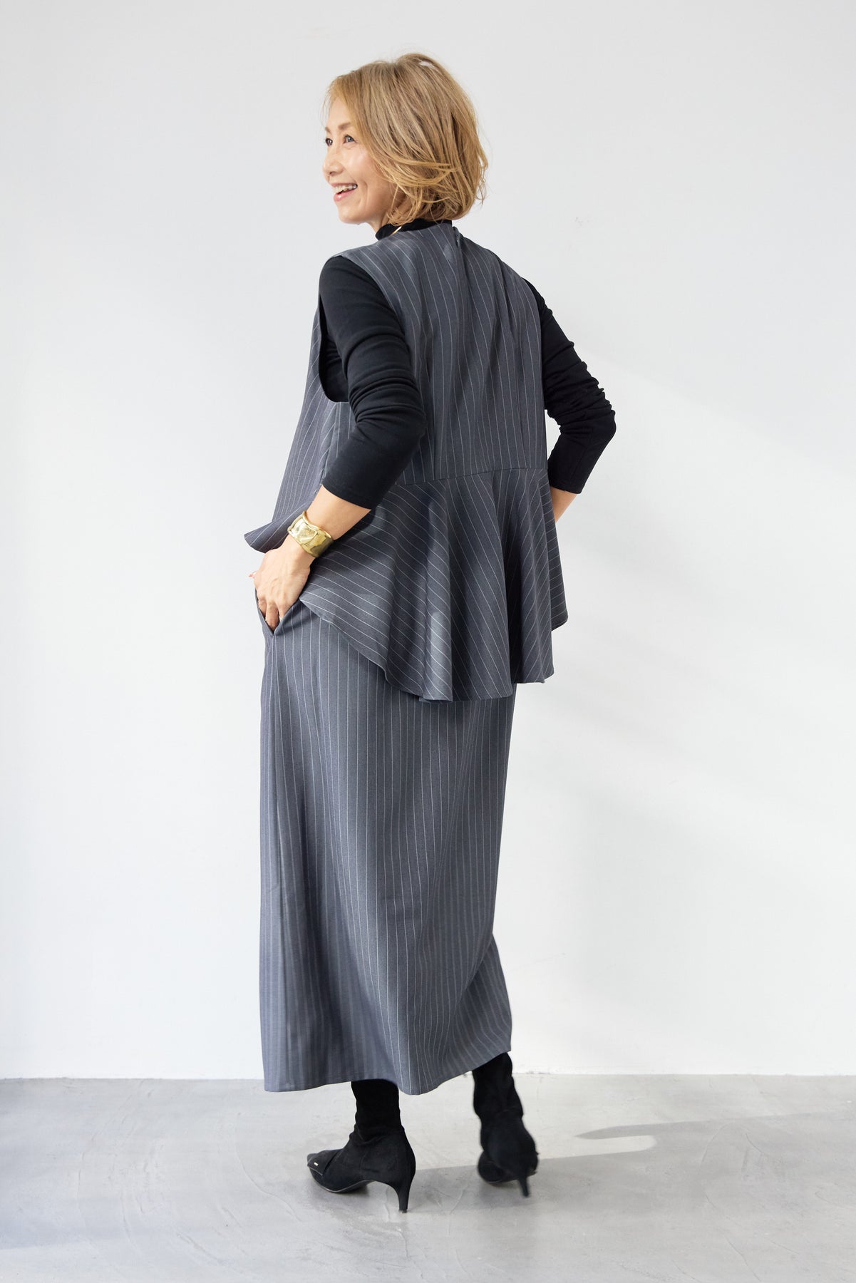 [SET]アシンメトリーストライプジャンスカ+タートルインナー(2set)
