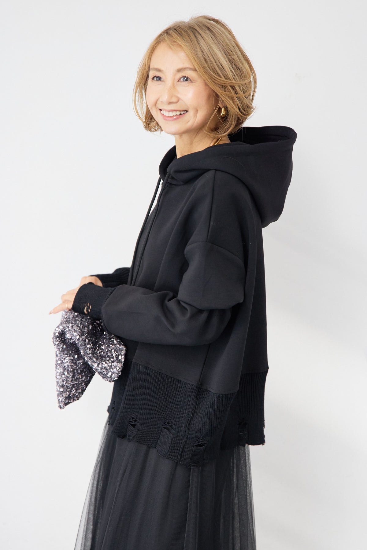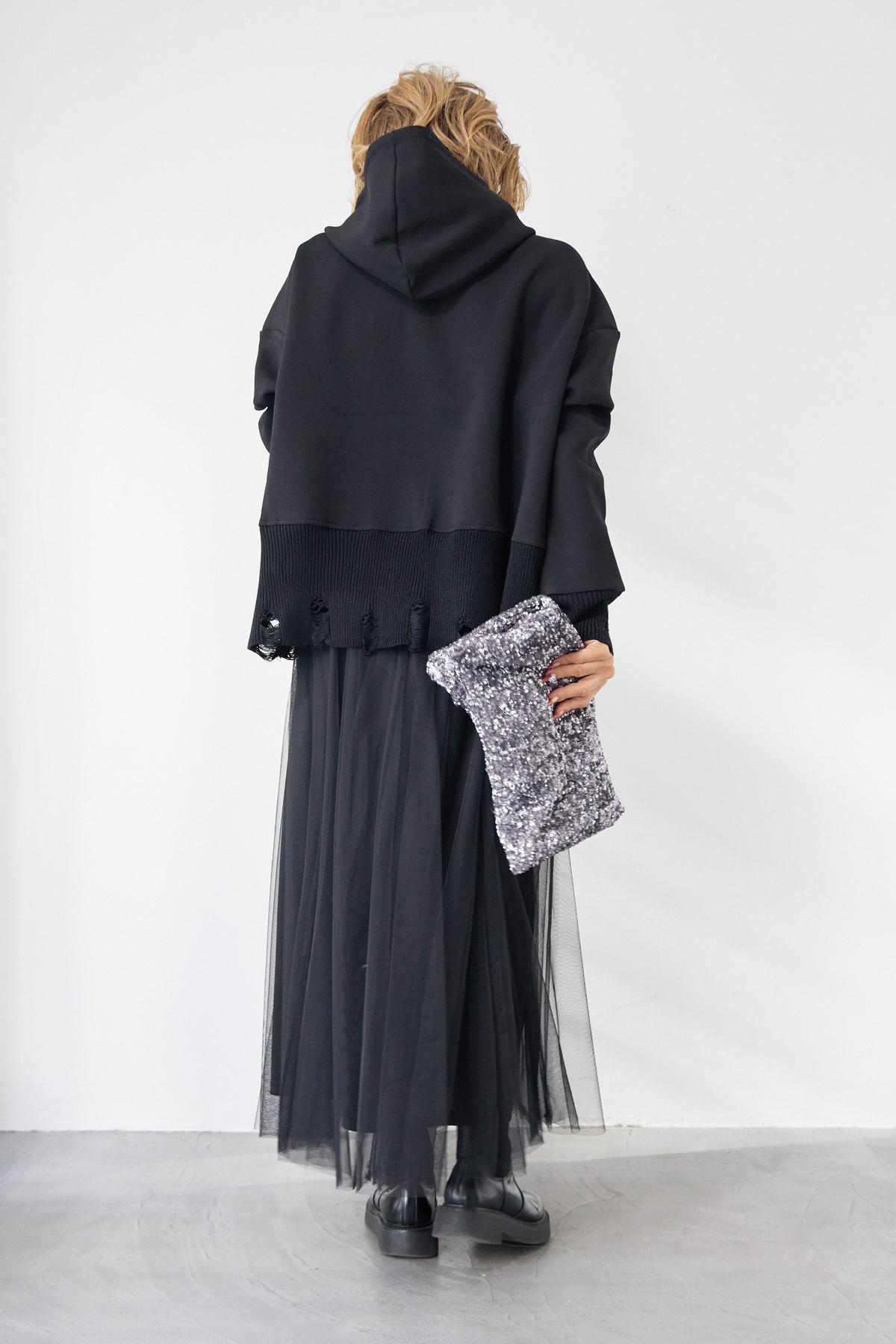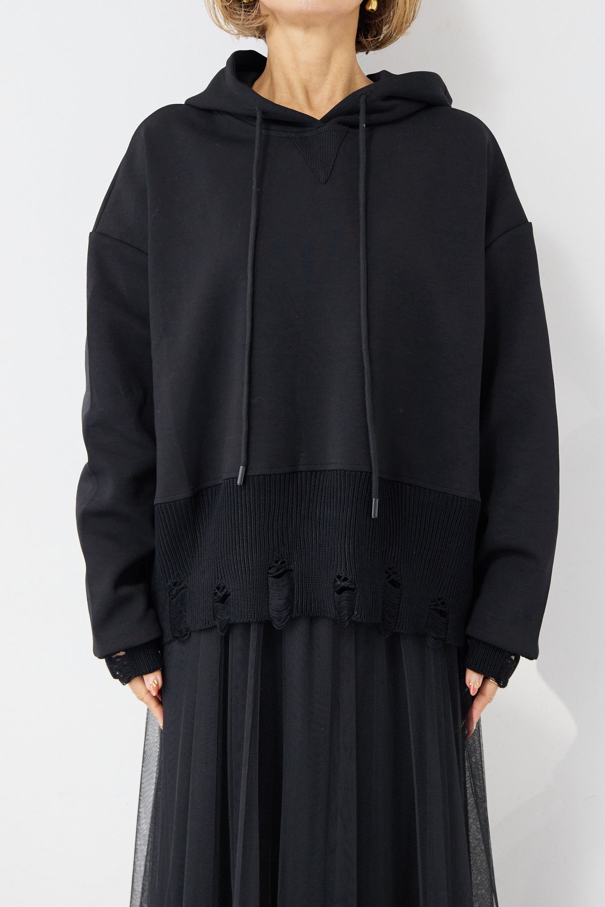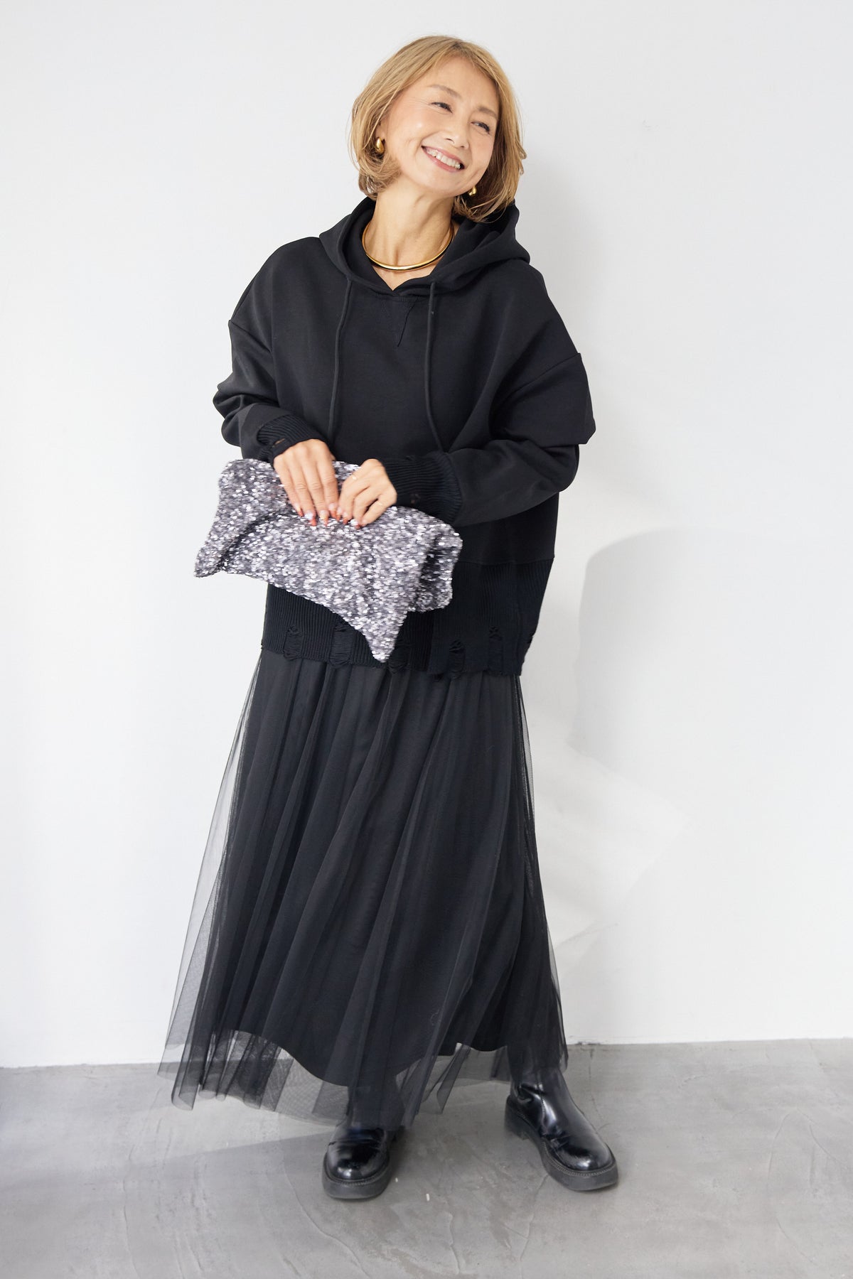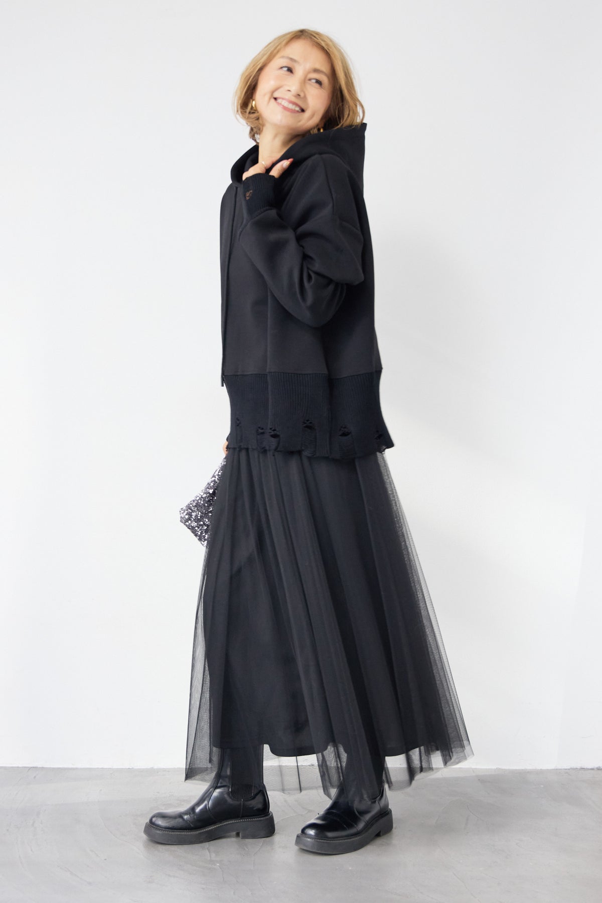 ダメージヘムデザインフーディ/チュールギャザースカート