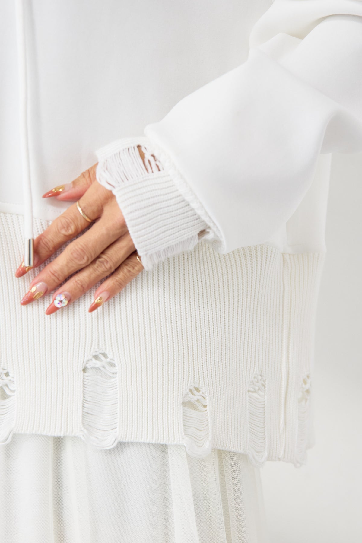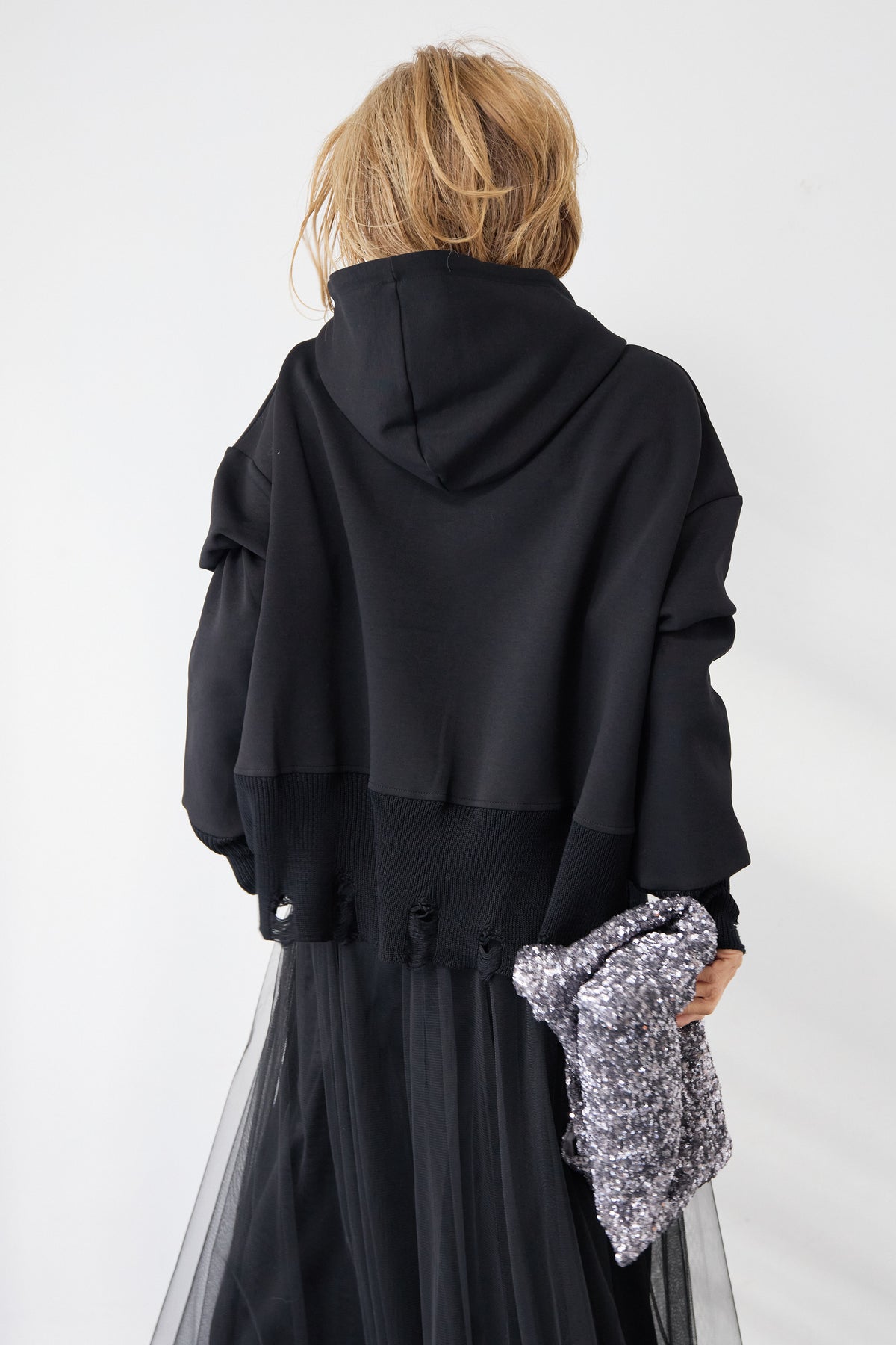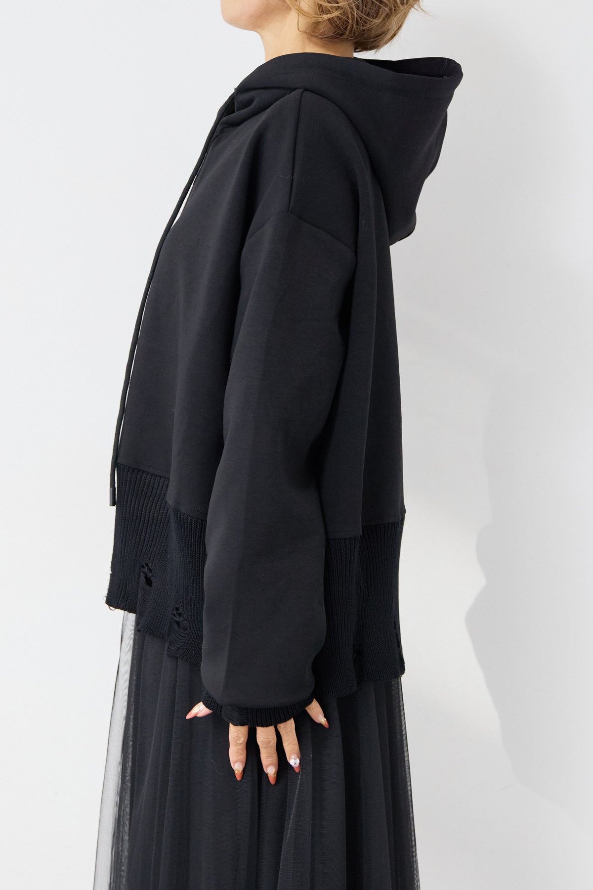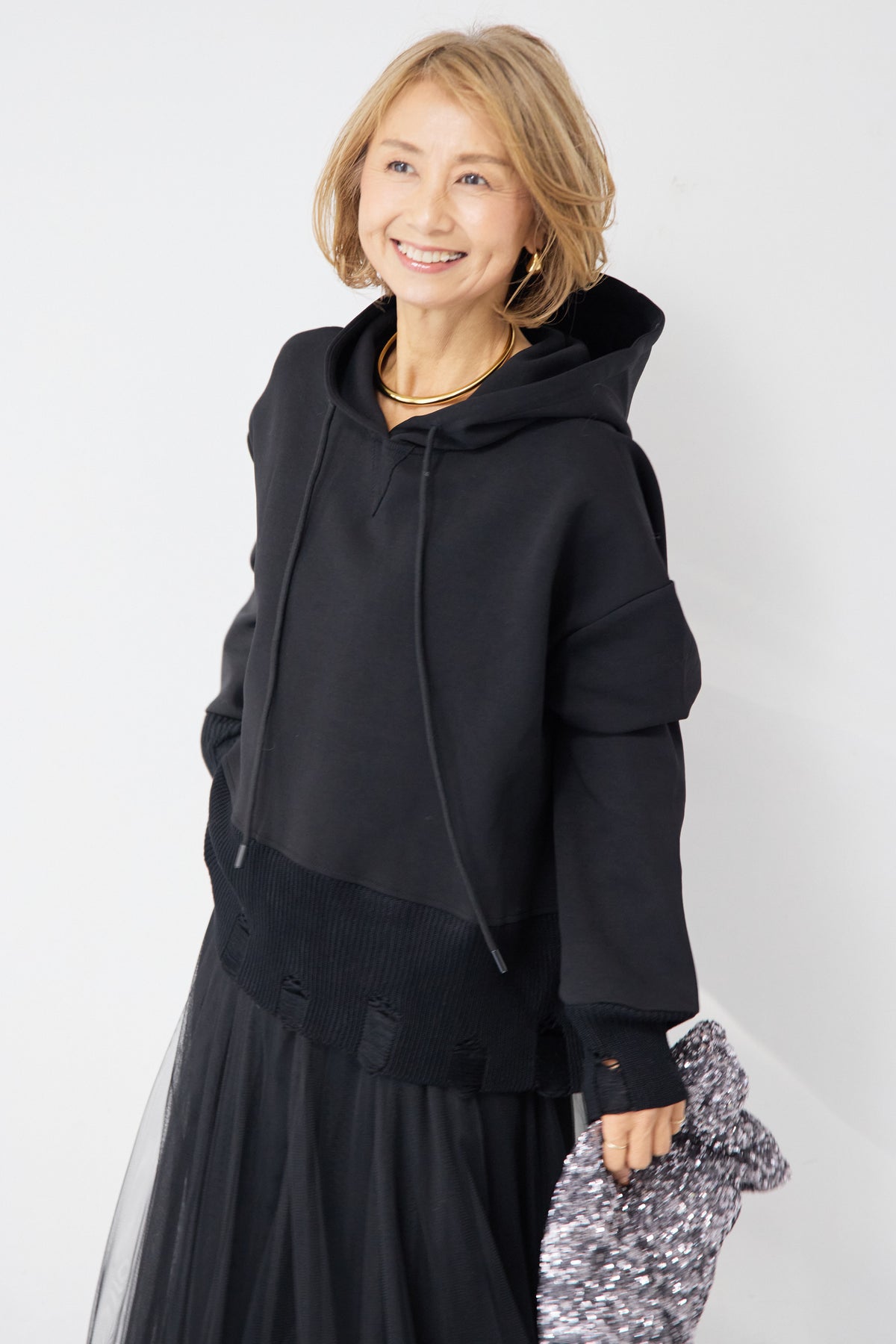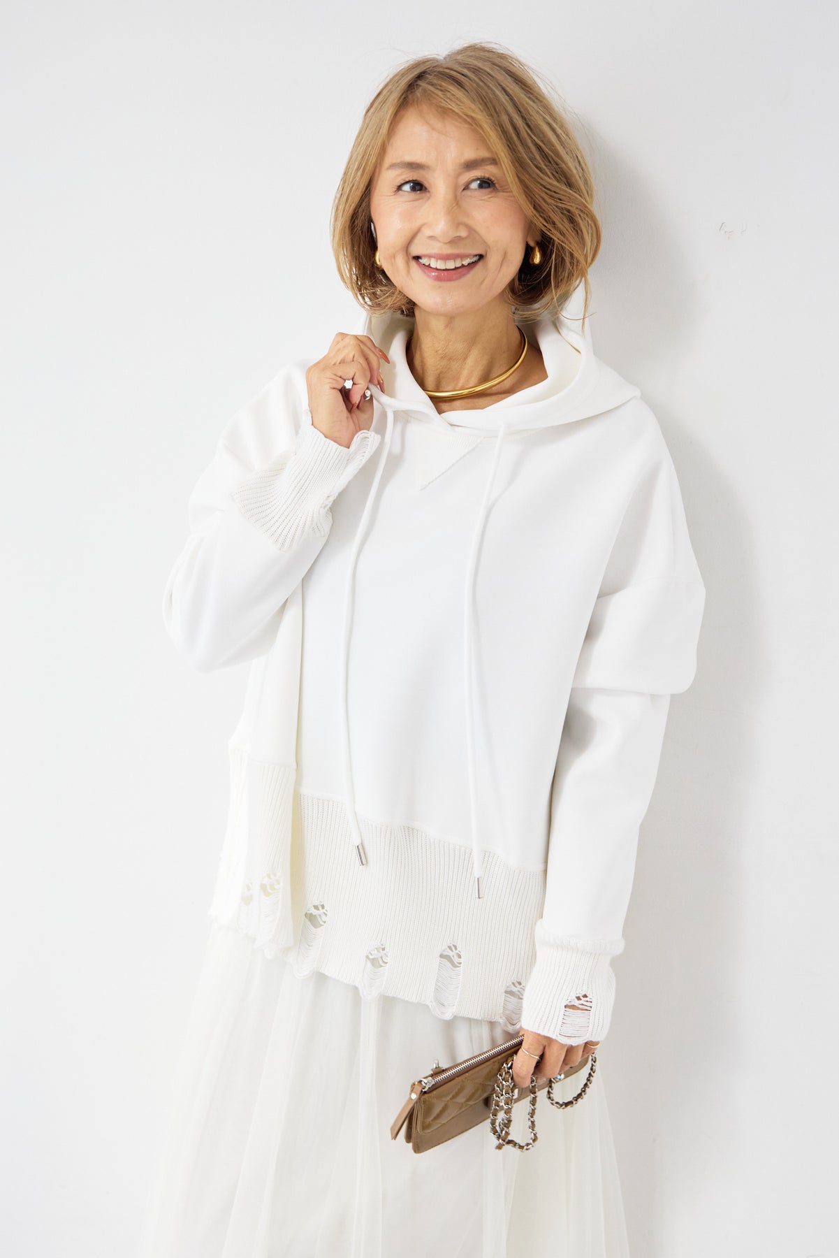 ダメージヘムデザインフーディ/チュールギャザースカート