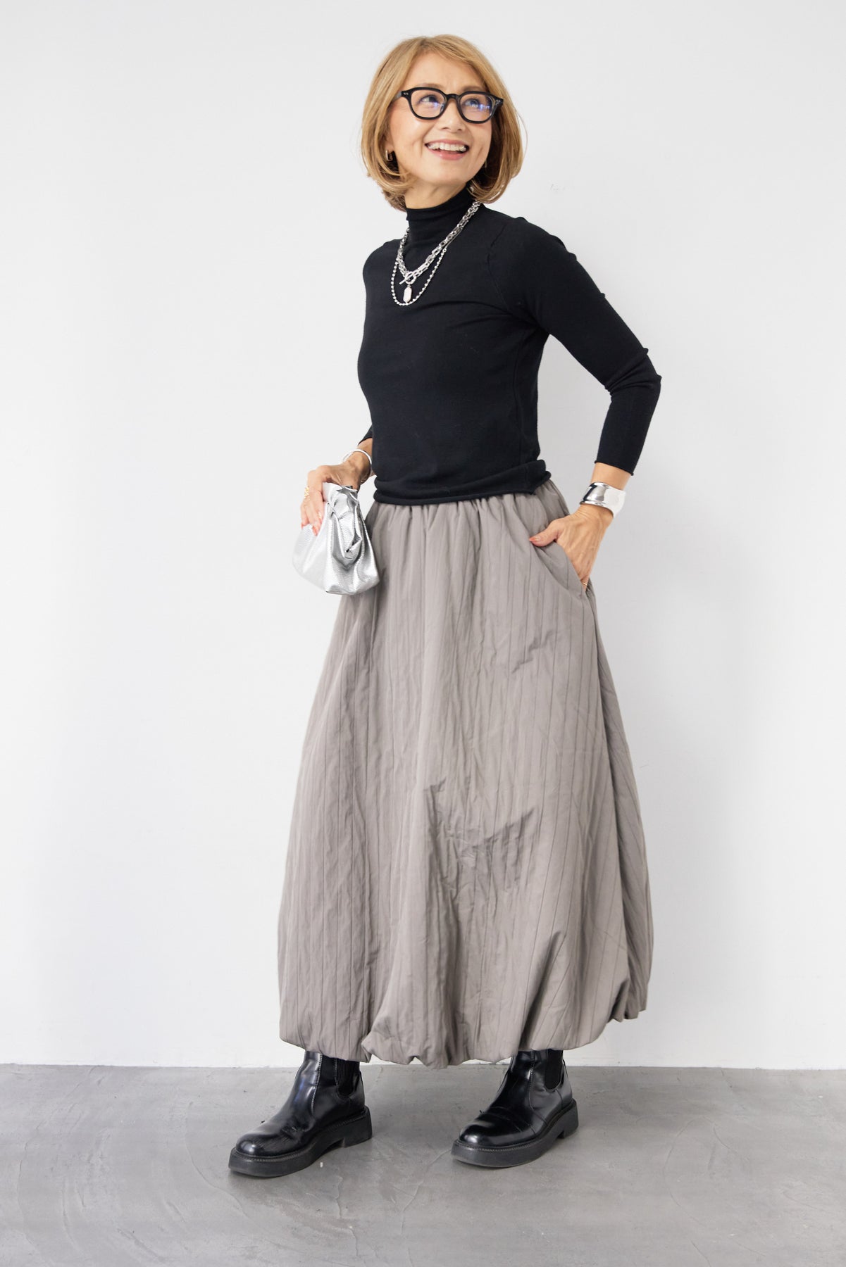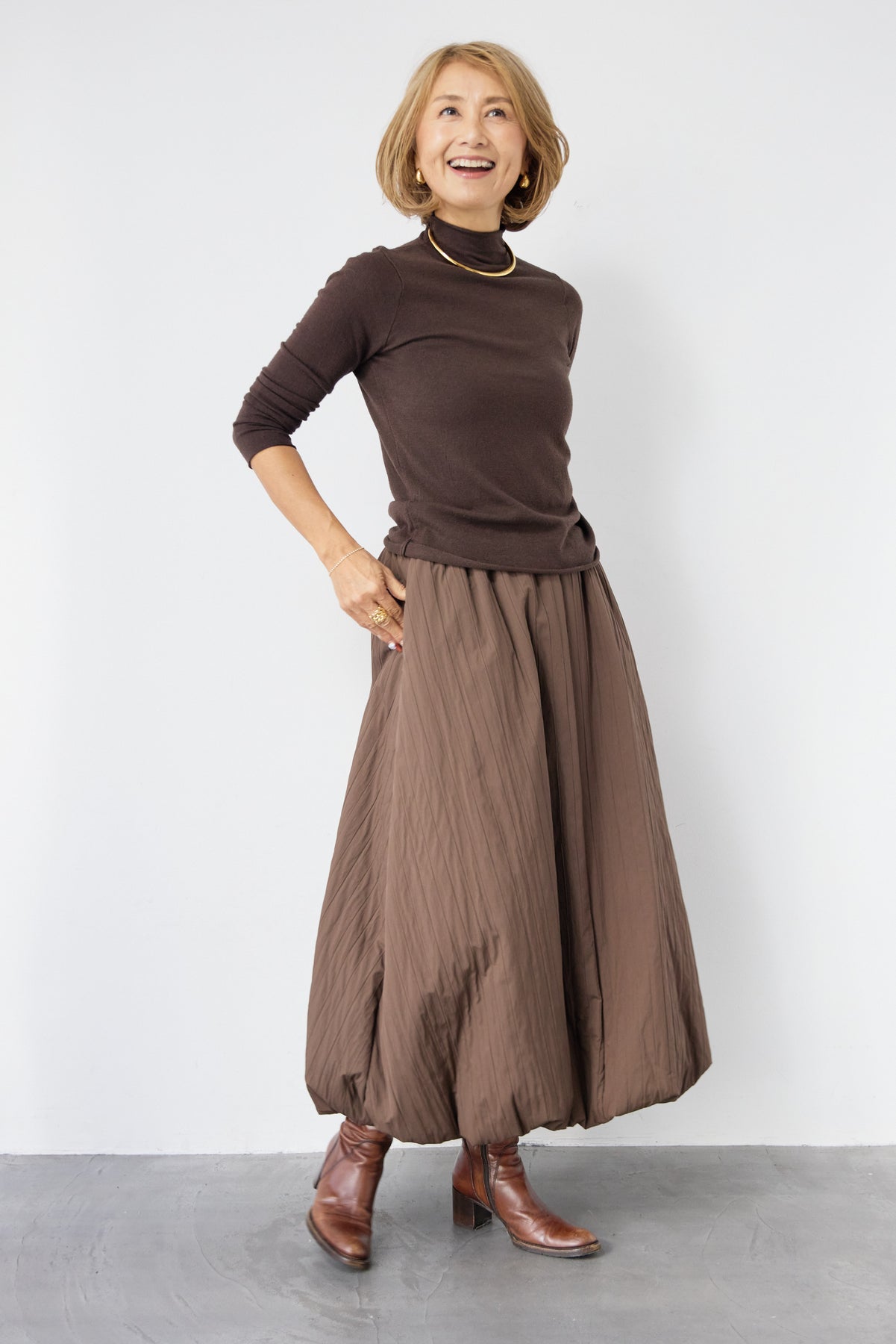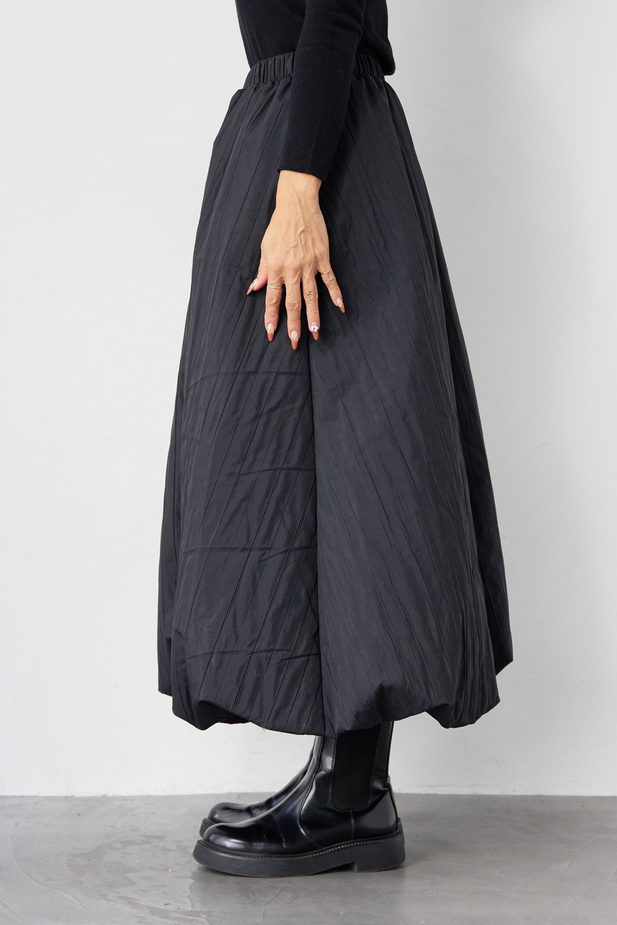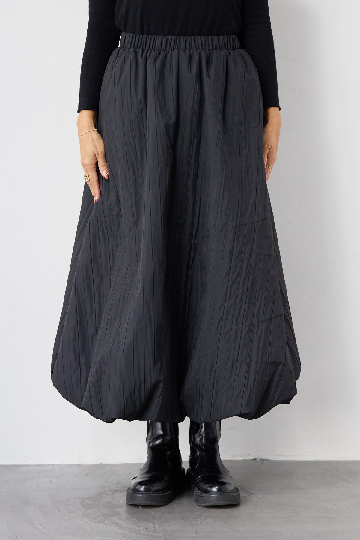 ロールエッジタートルニット/中綿エアリーバルーンスカート