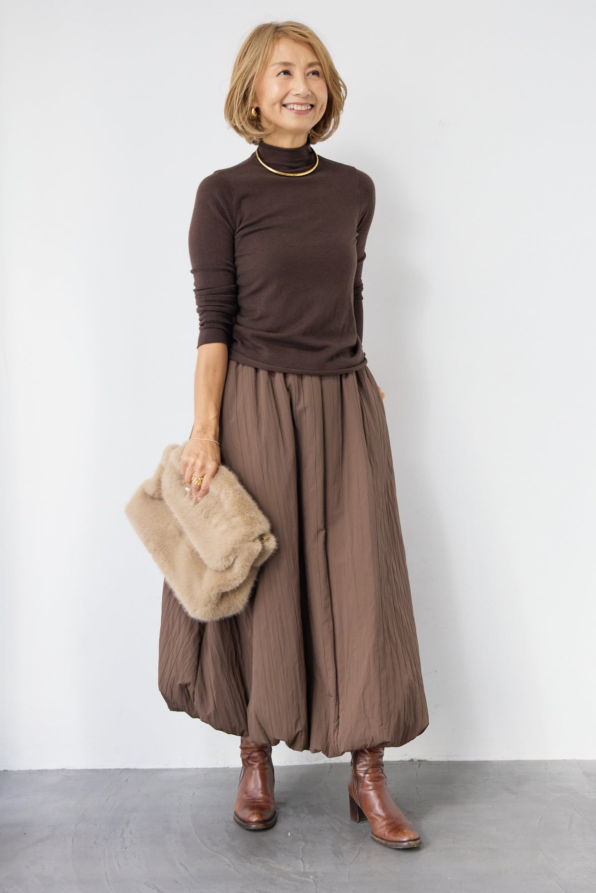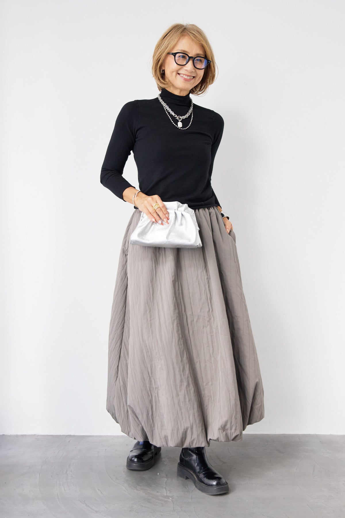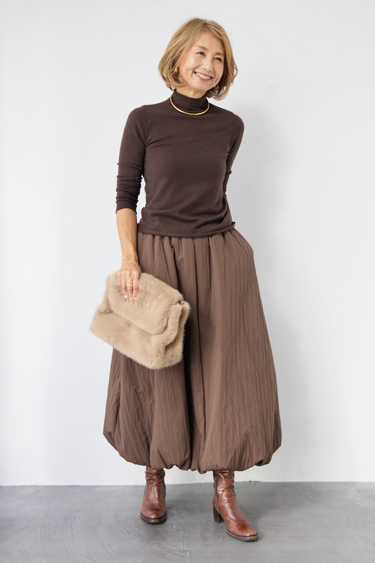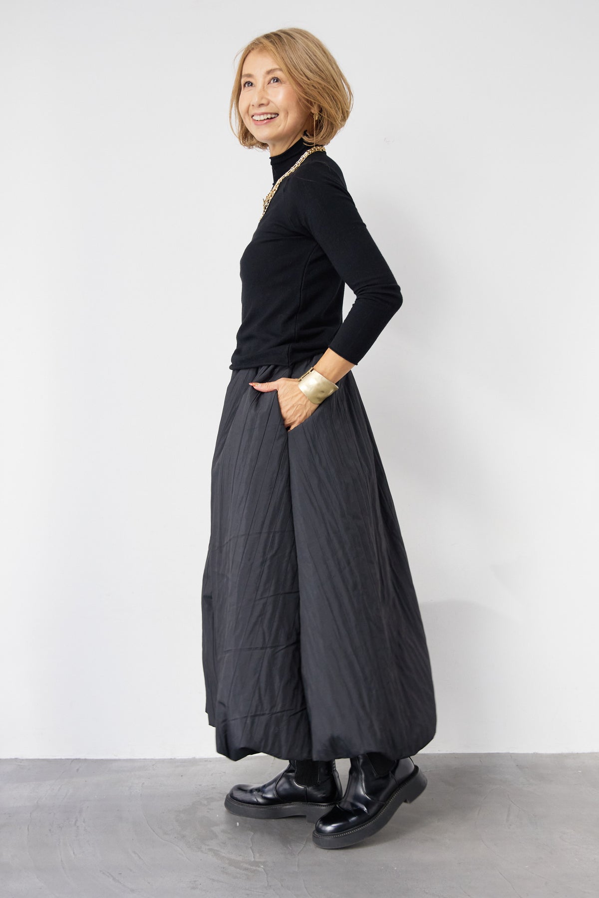 ロールエッジタートルニット/中綿エアリーバルーンスカート