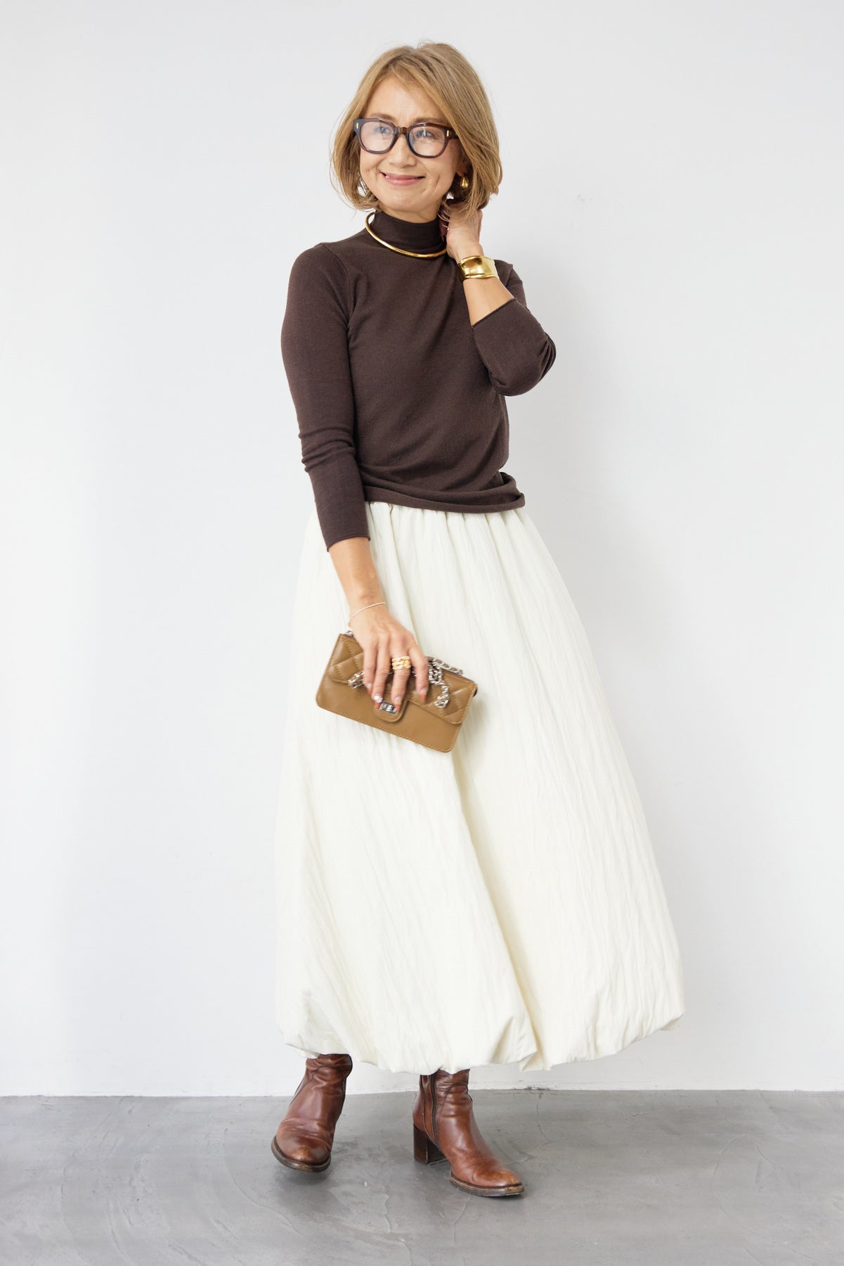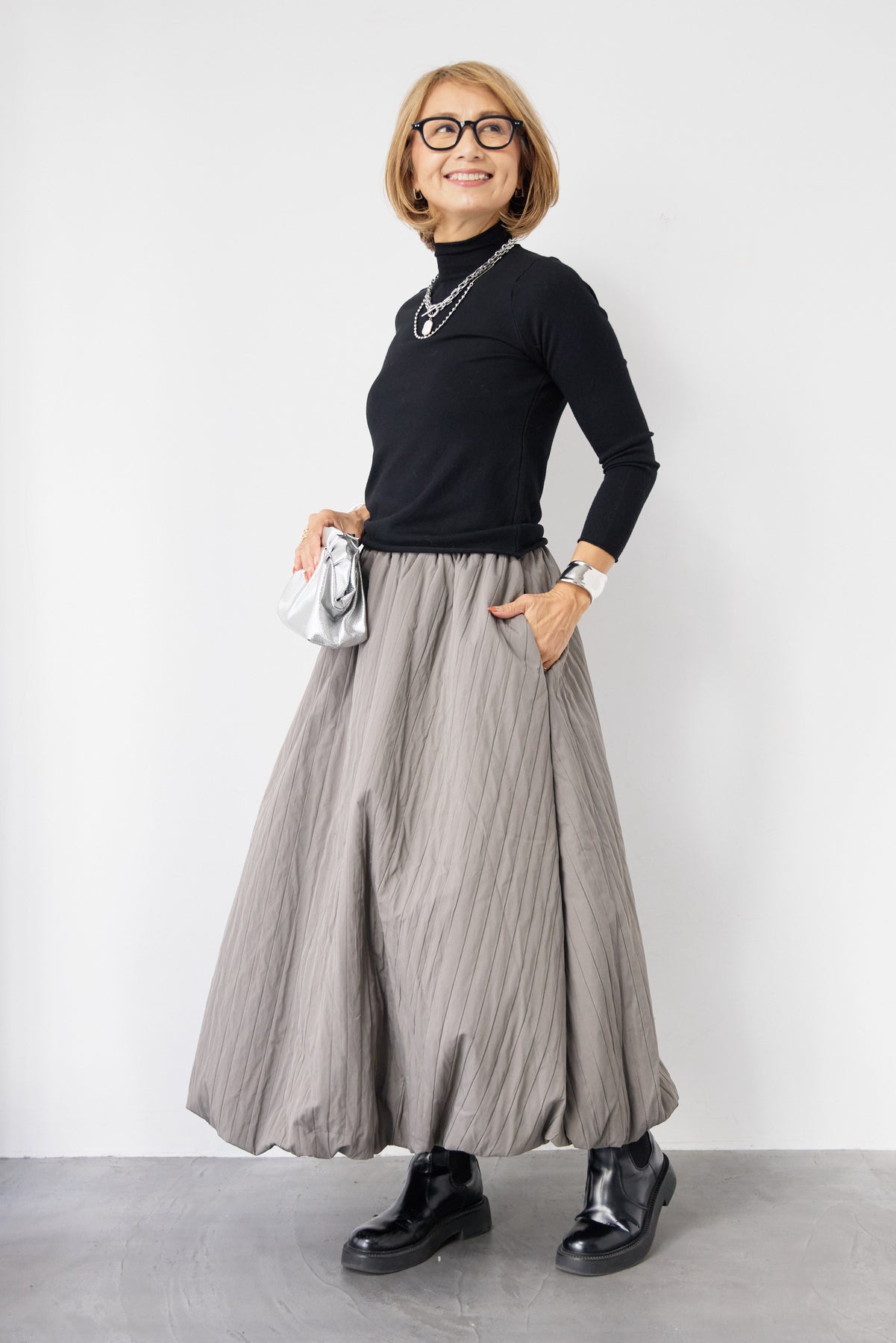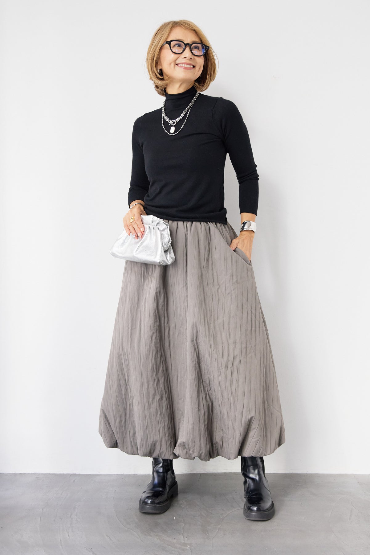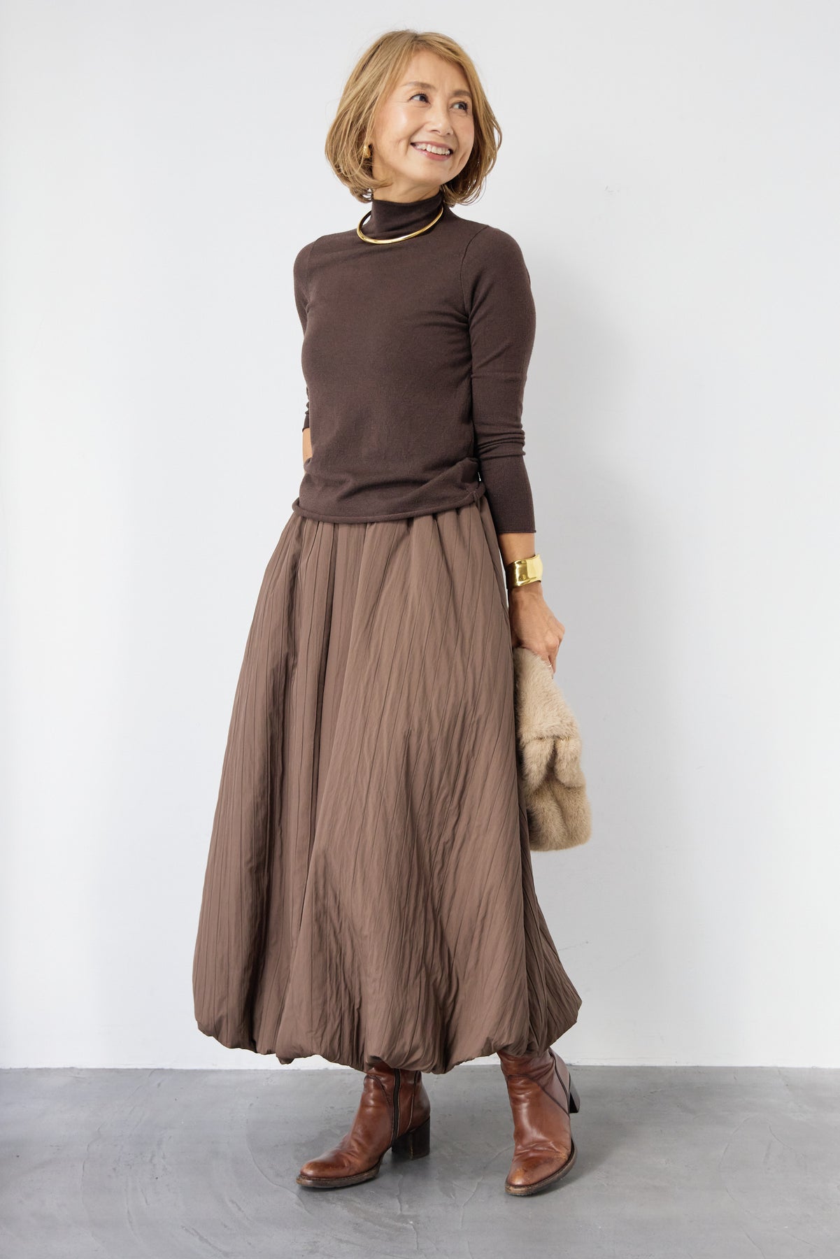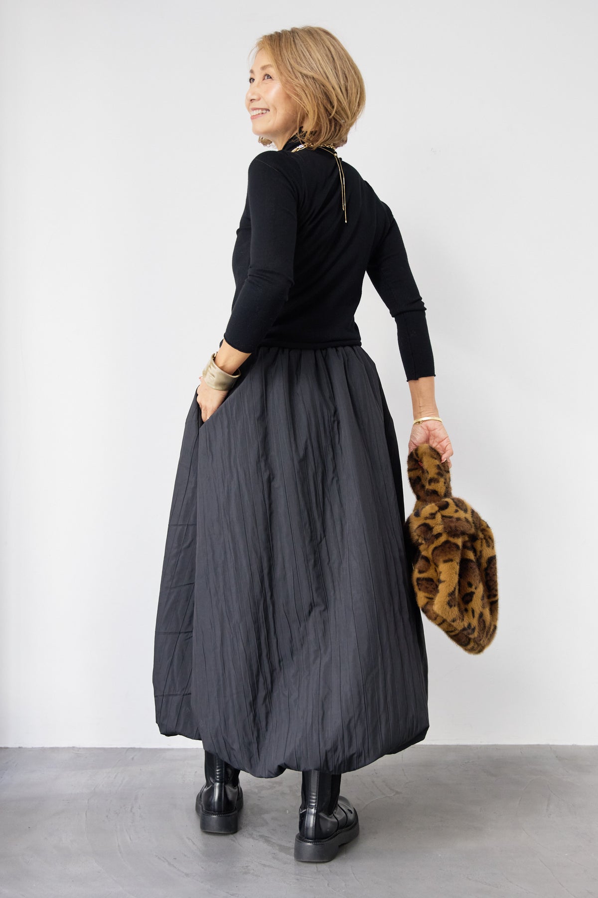 ロールエッジタートルニット/中綿エアリーバルーンスカート