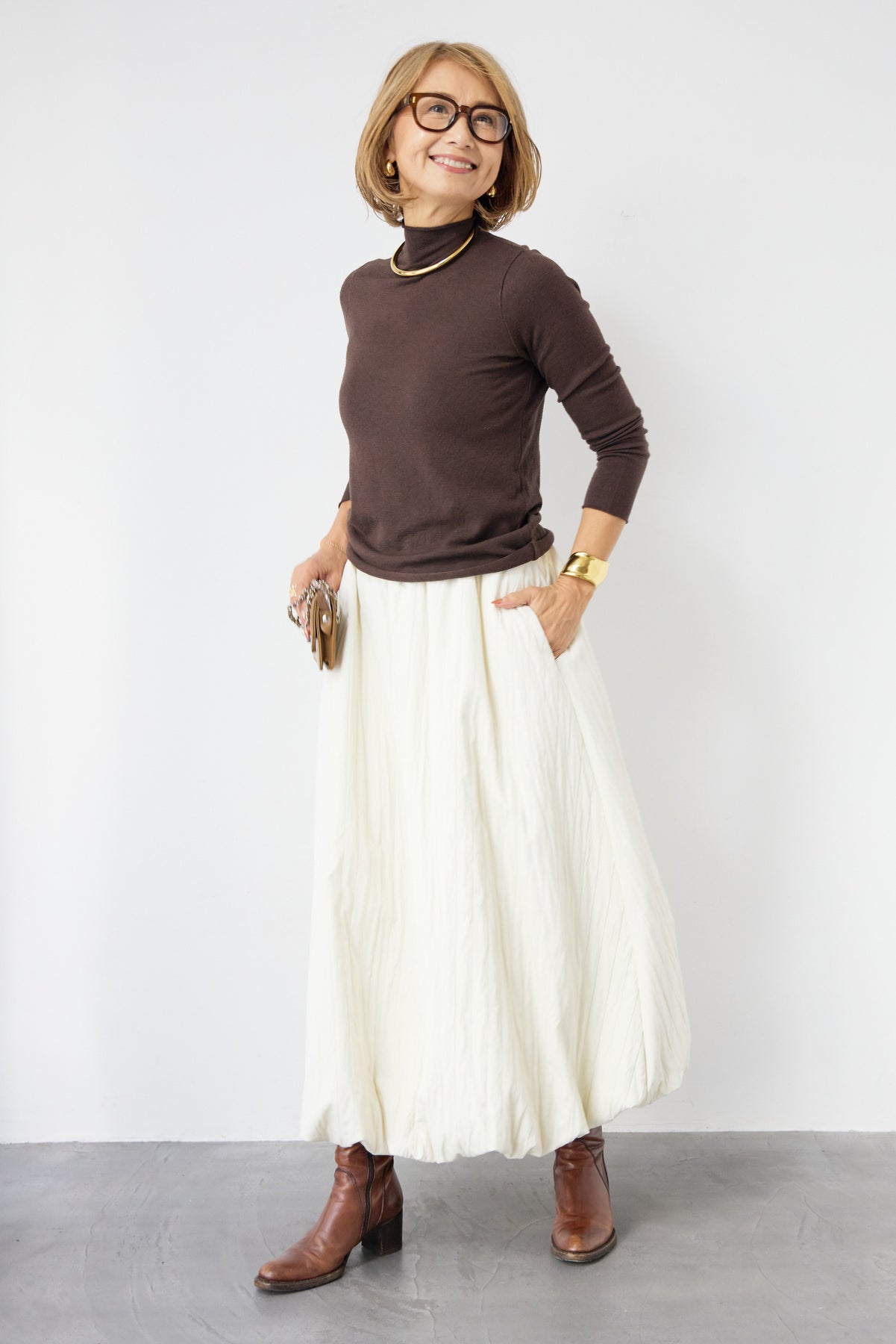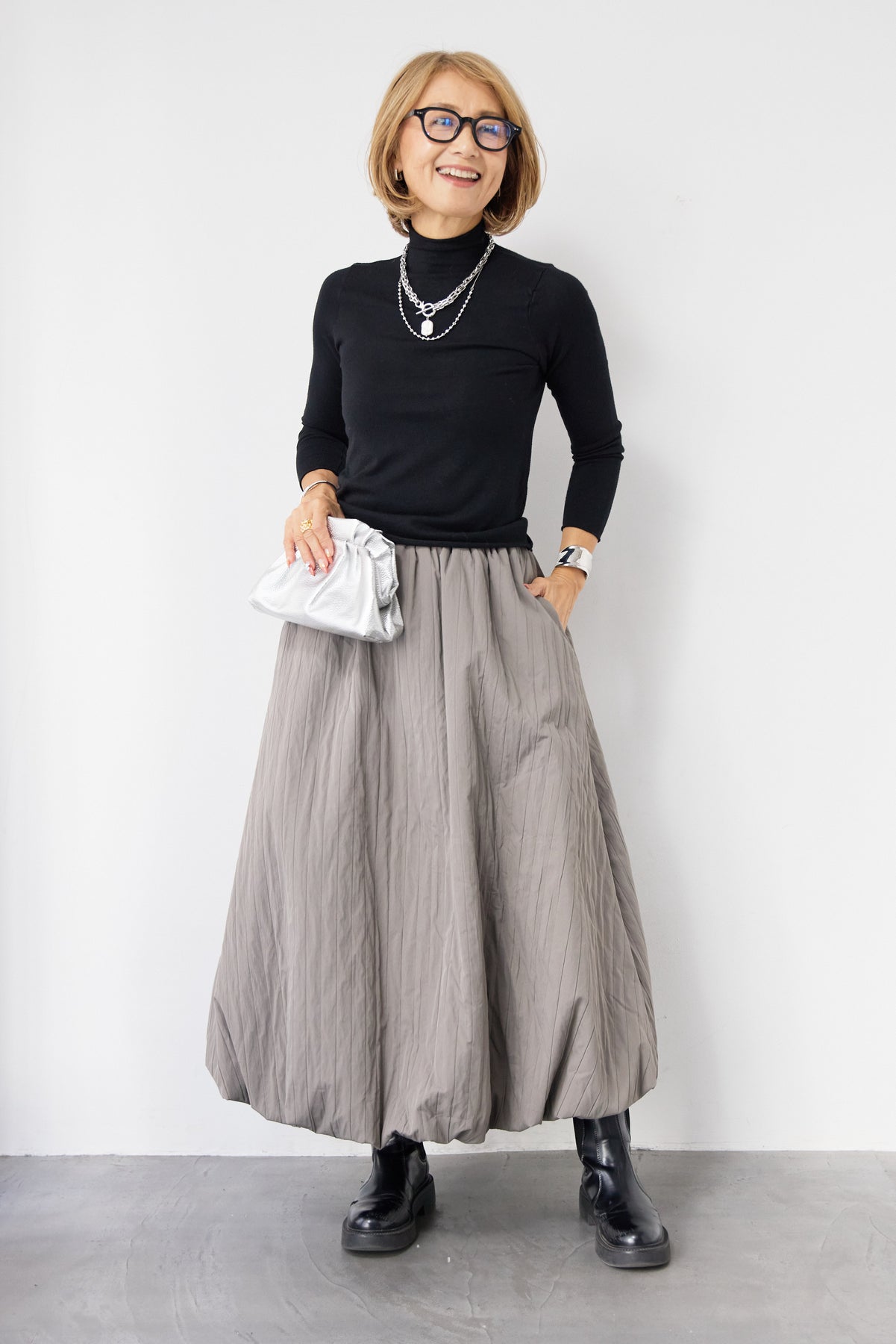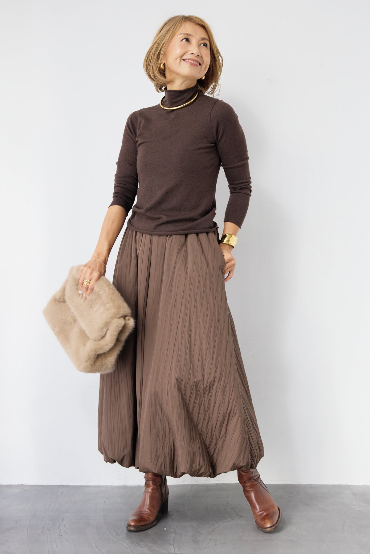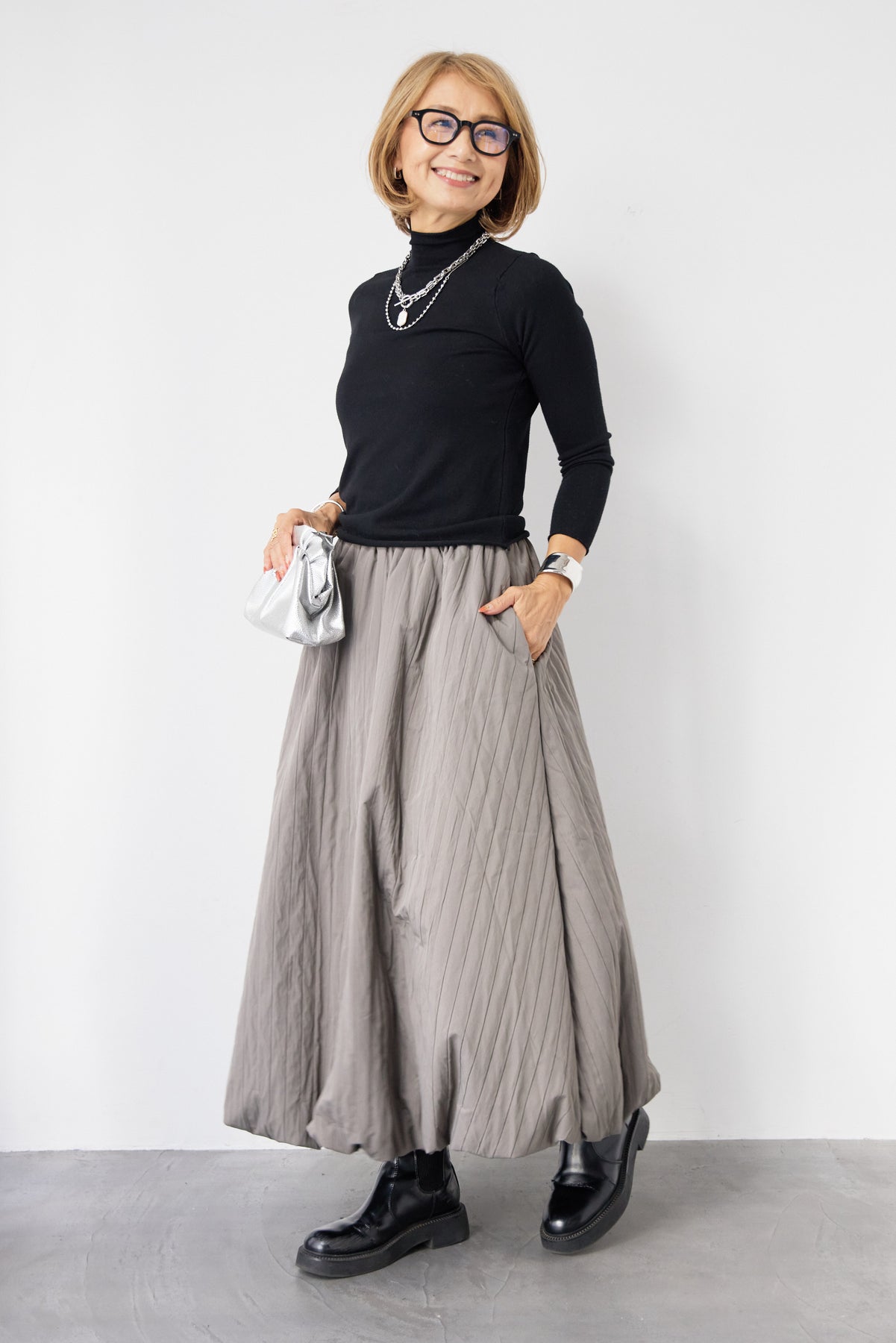 ロールエッジタートルニット/中綿エアリーバルーンスカート