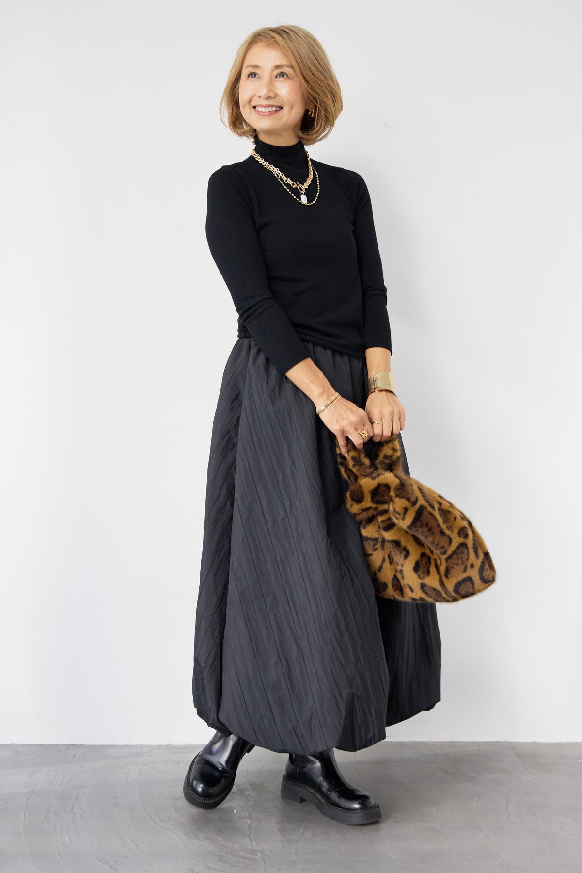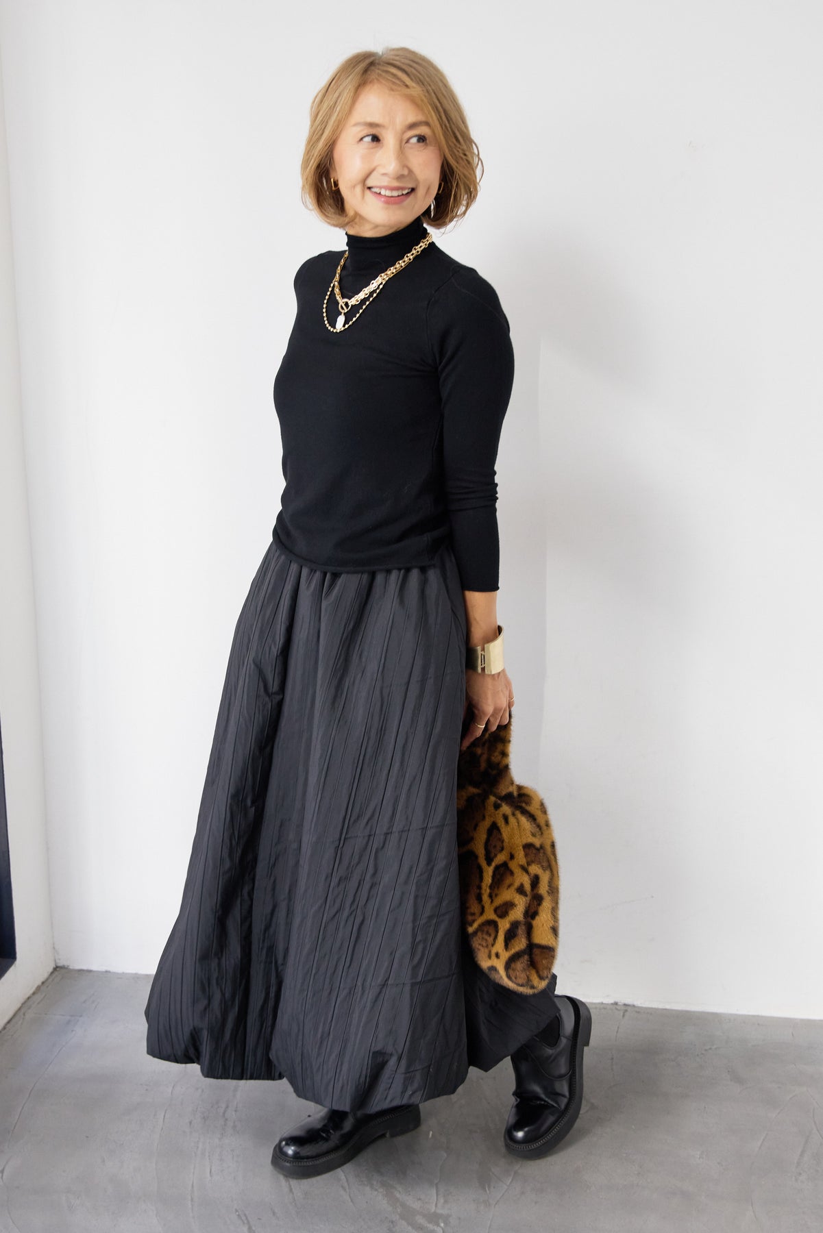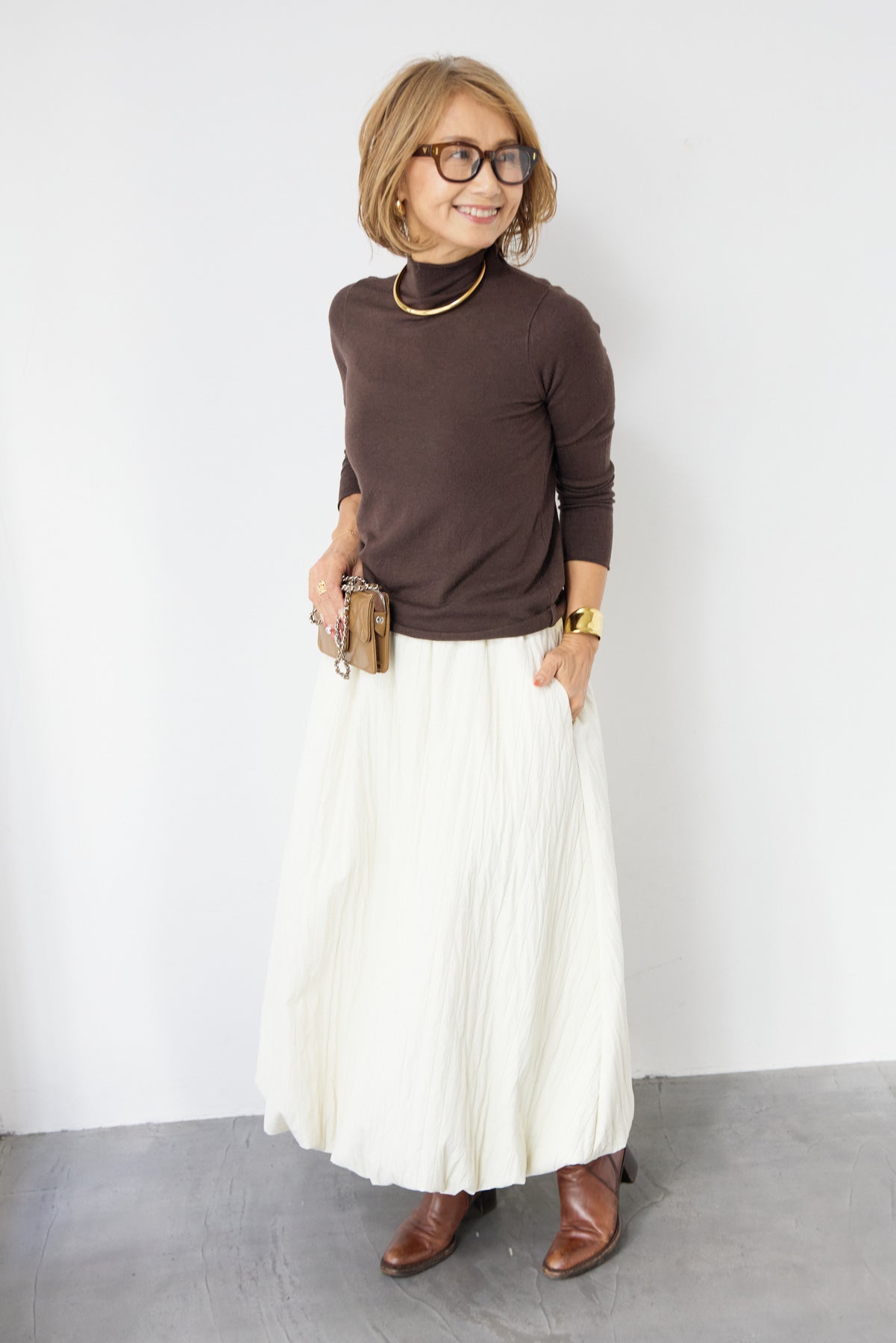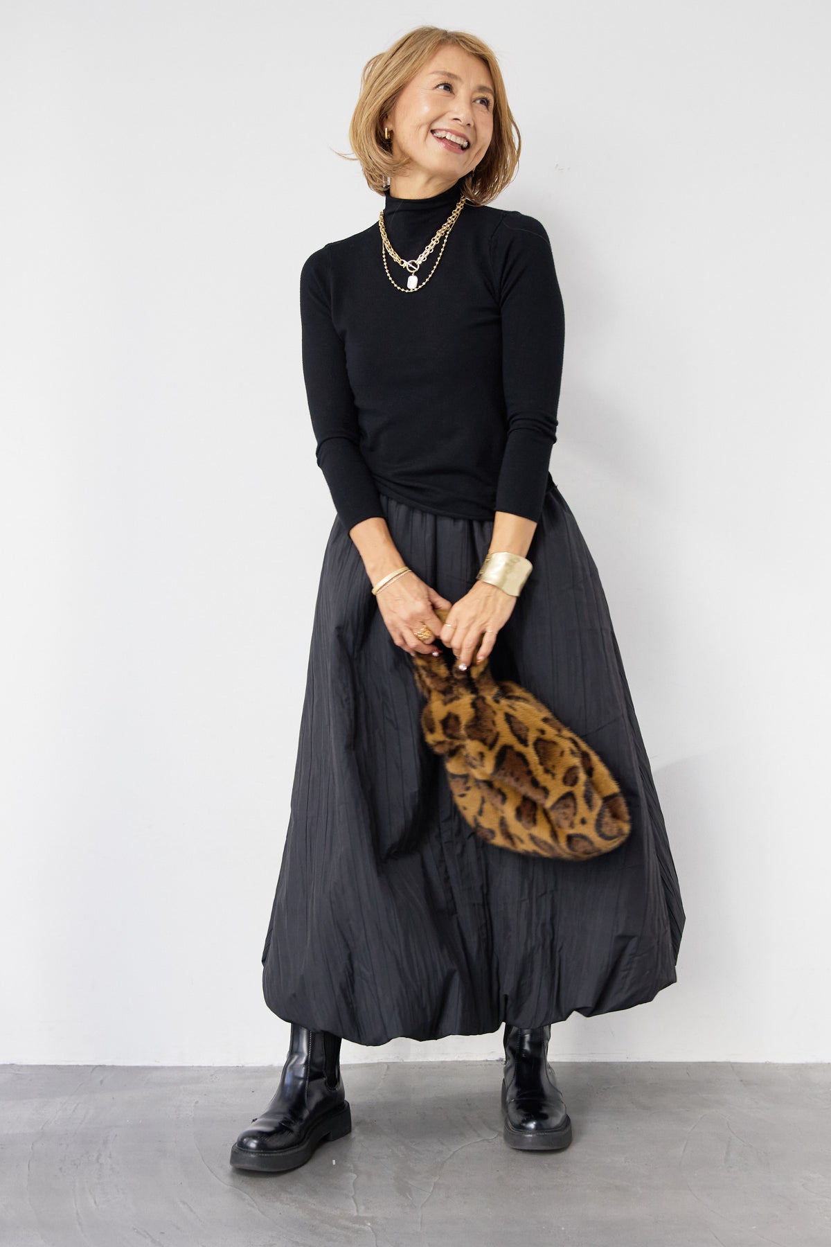 ロールエッジタートルニット/中綿エアリーバルーンスカート