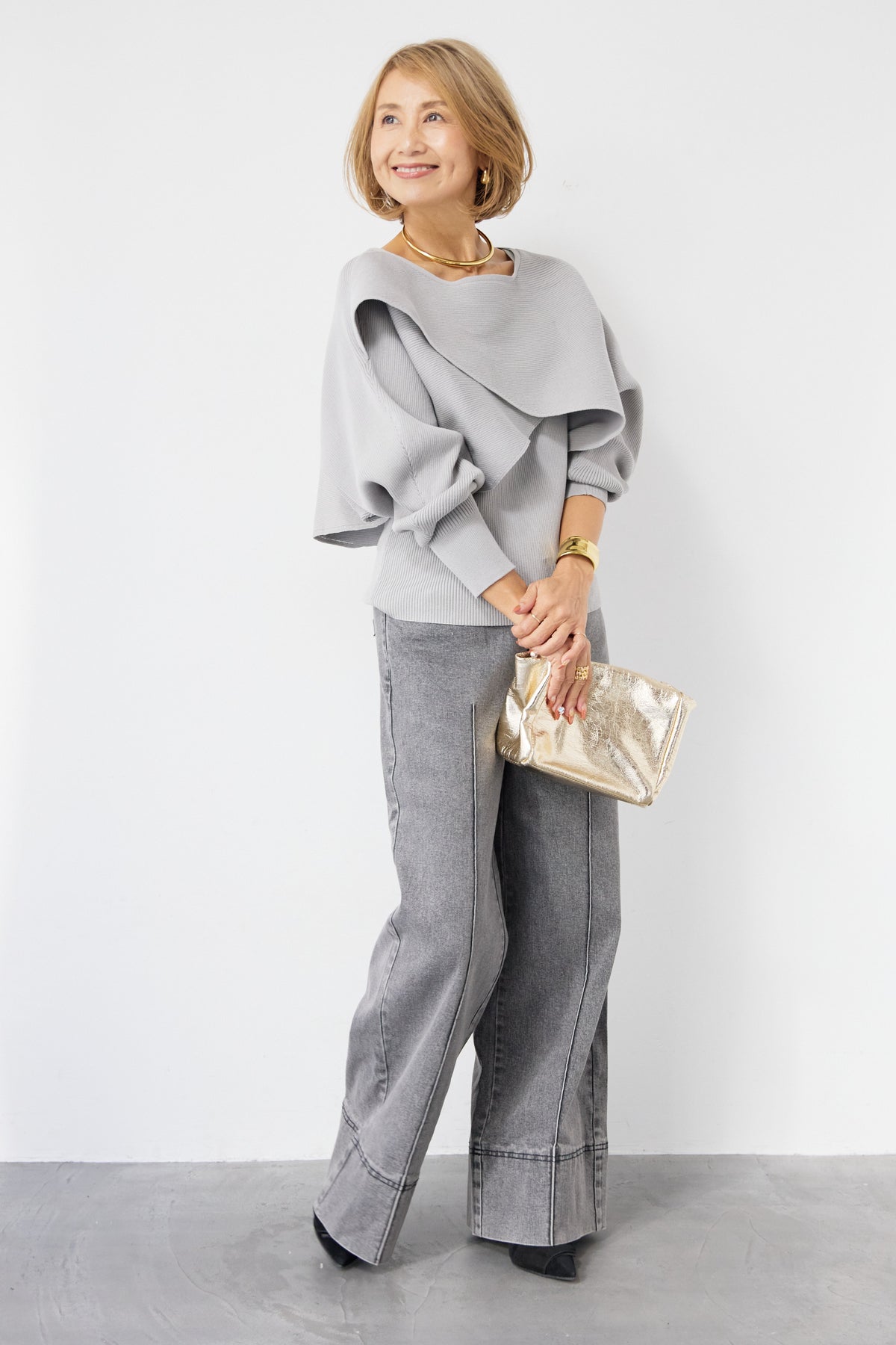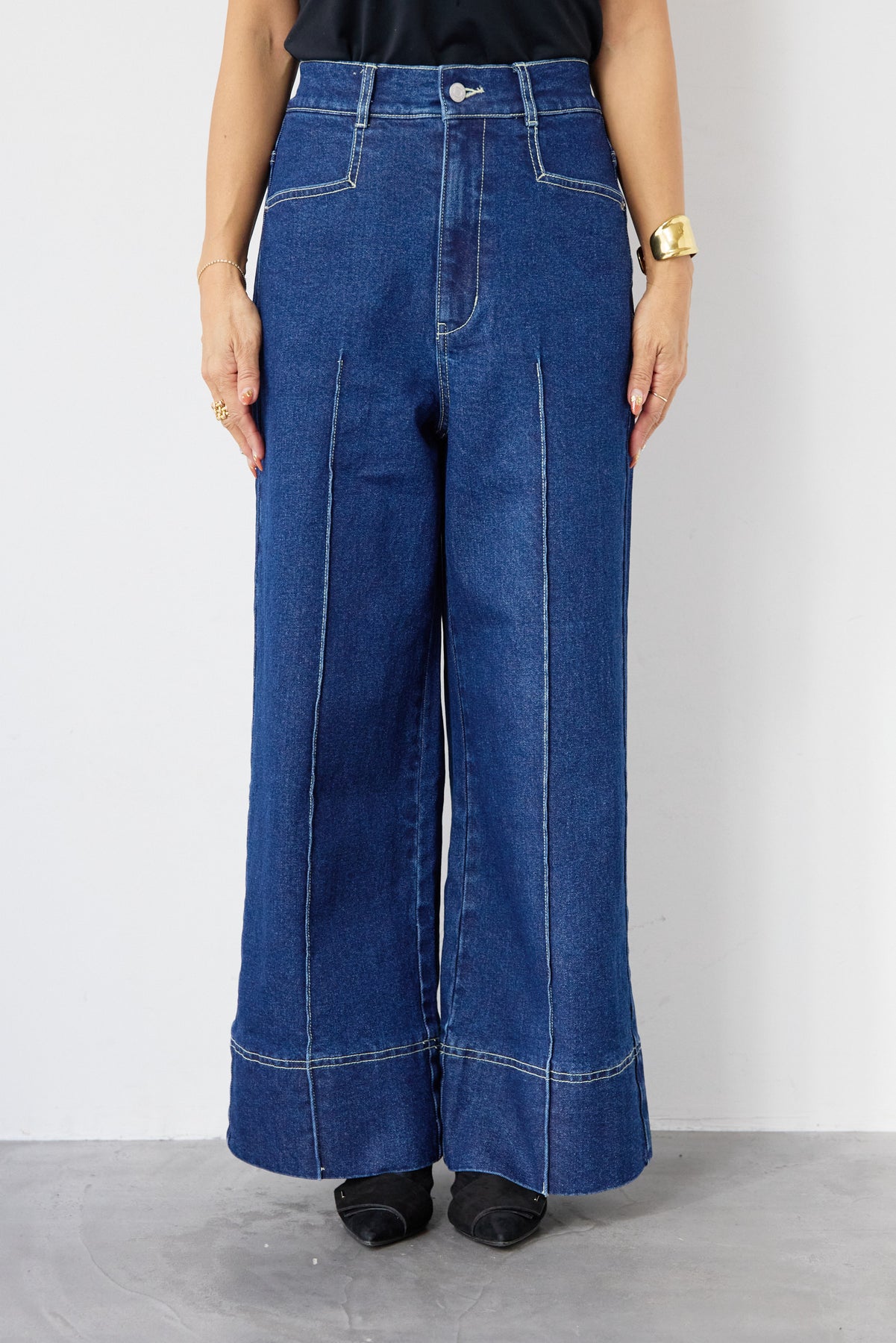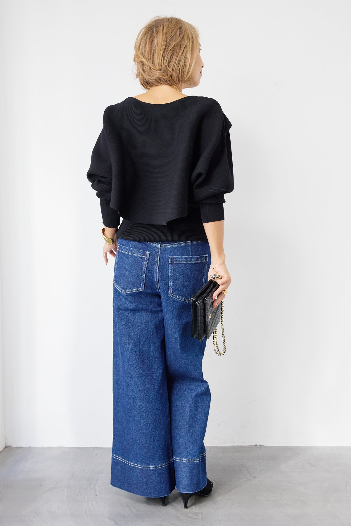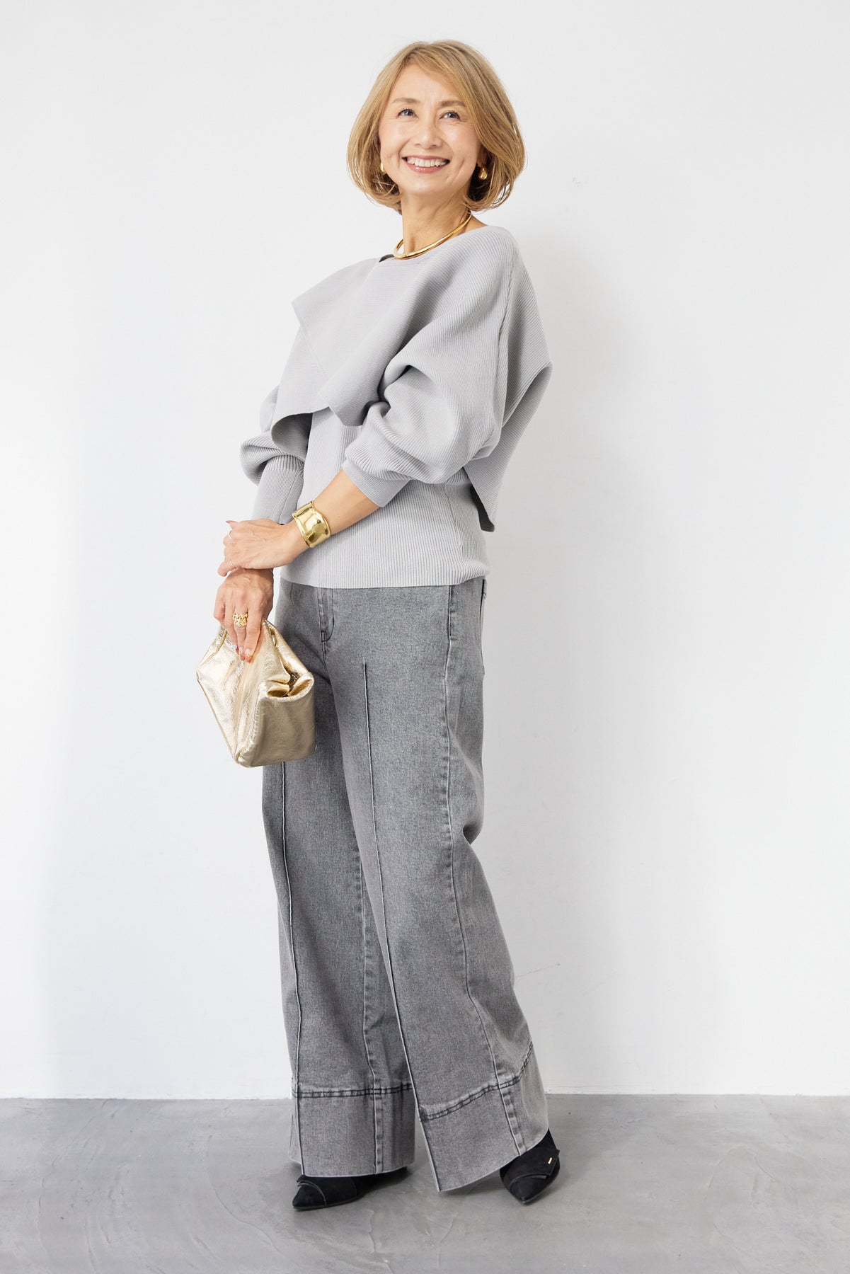 コットンケープアンサンブル/【倉敷デニム】センターシームワイドデニムパンツ