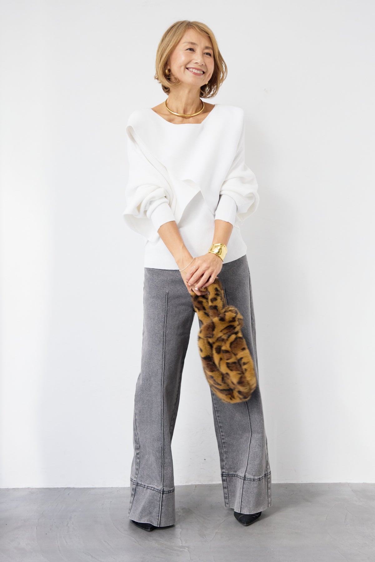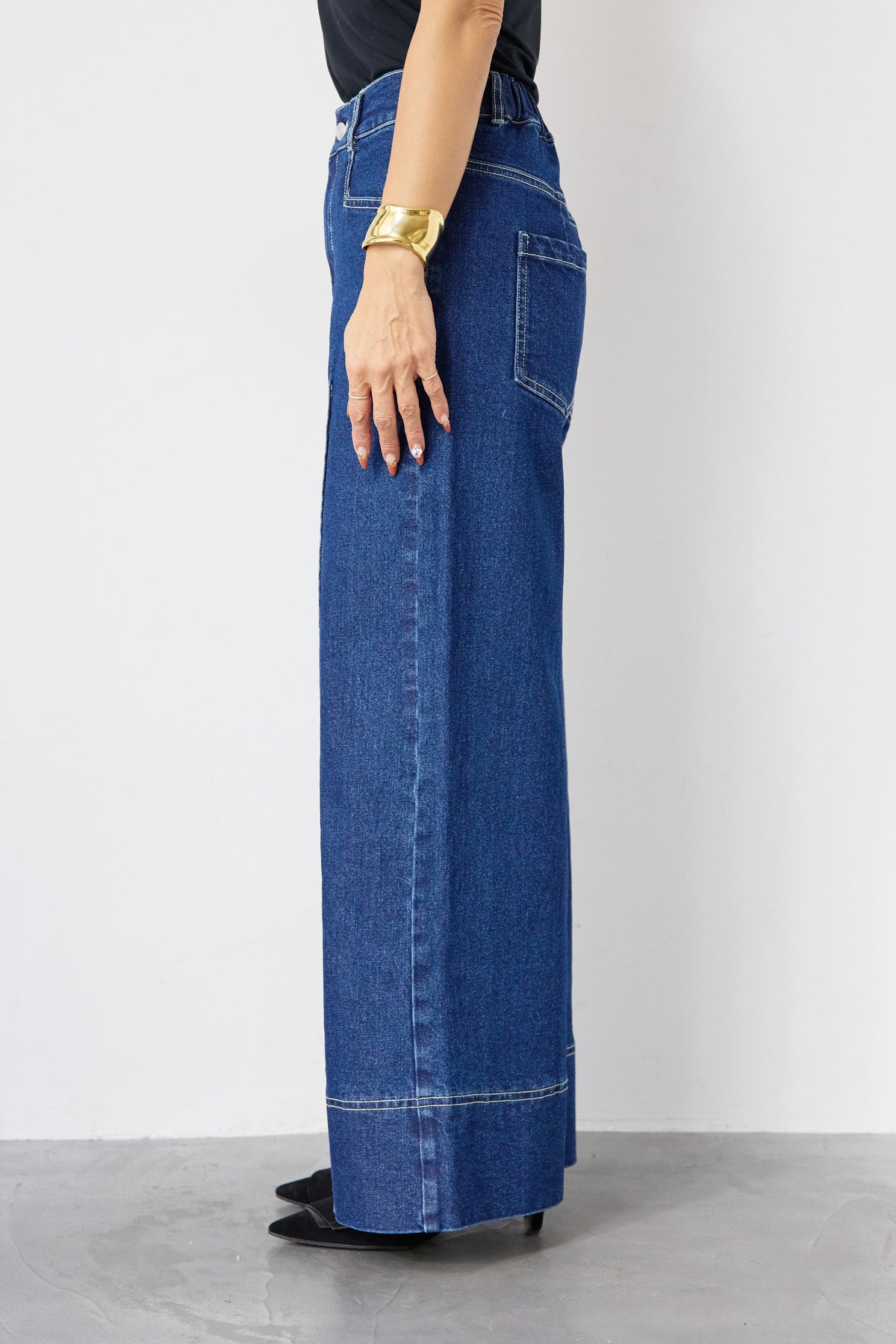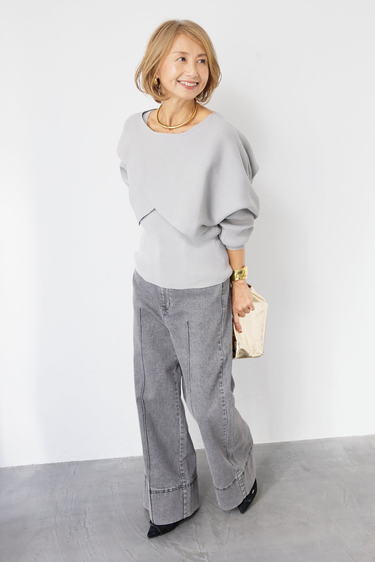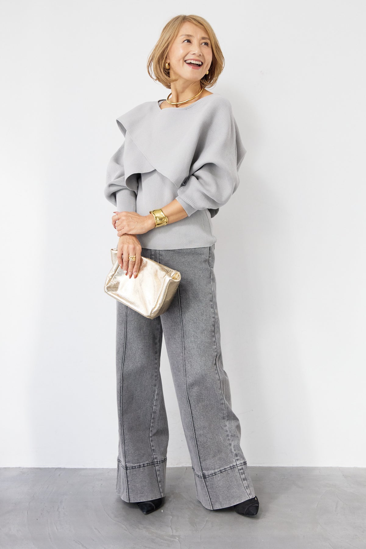 コットンケープアンサンブル/【倉敷デニム】センターシームワイドデニムパンツ