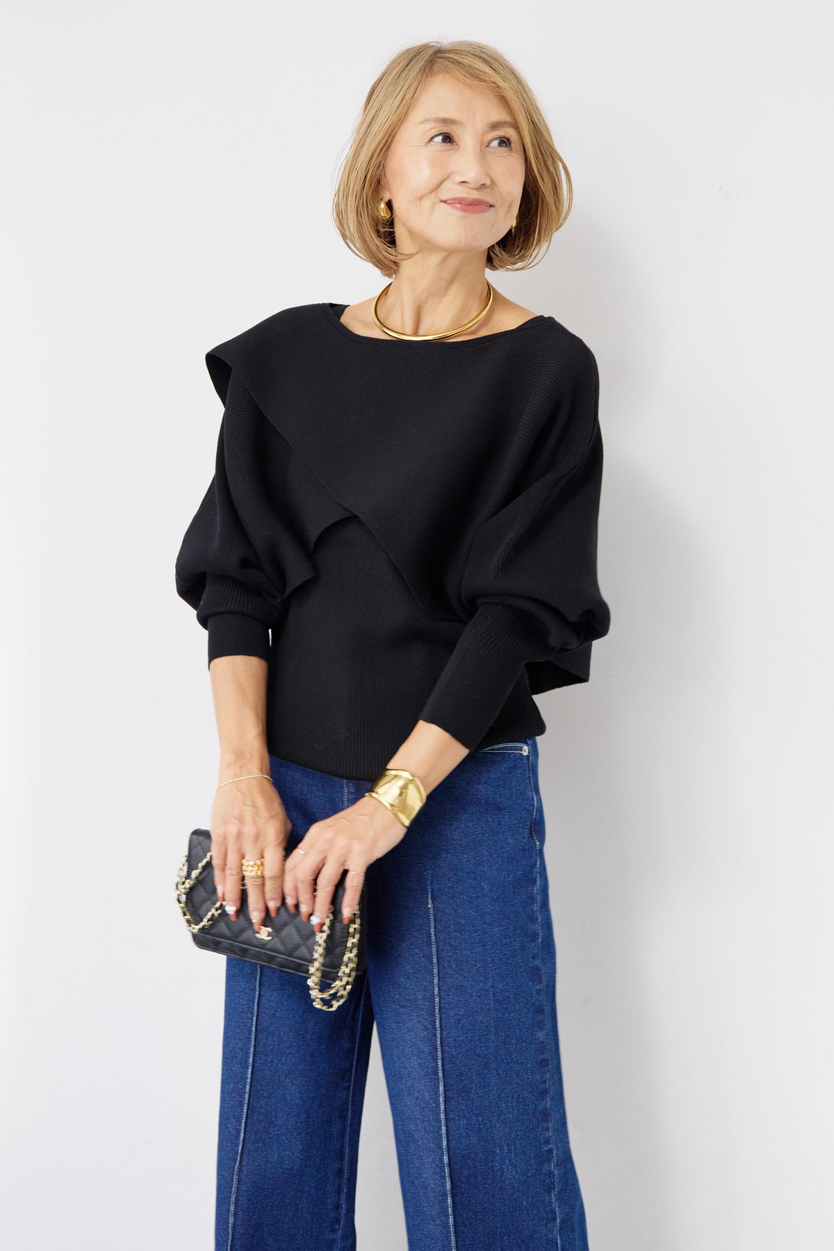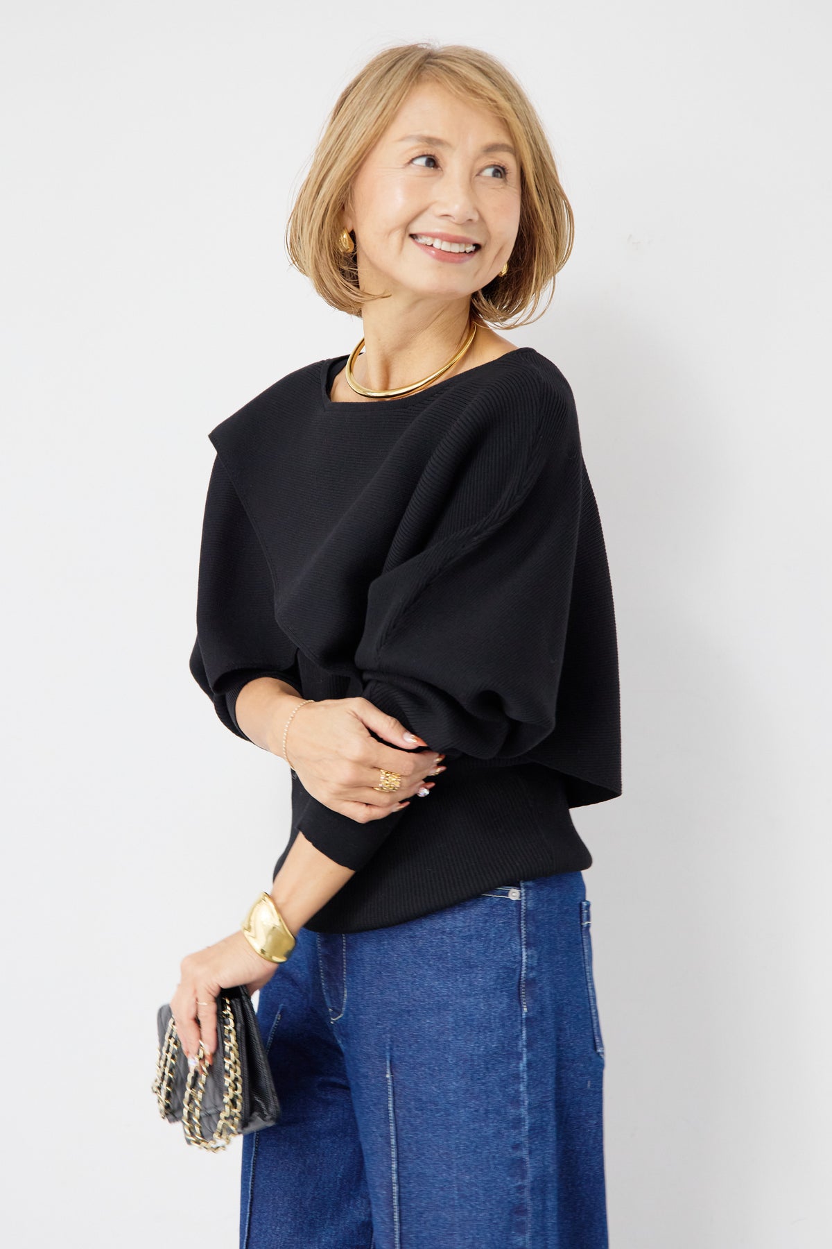 [SET]コットンケープアンサンブル+【倉敷デニム】センターシームワイドデニムパンツ(2set)