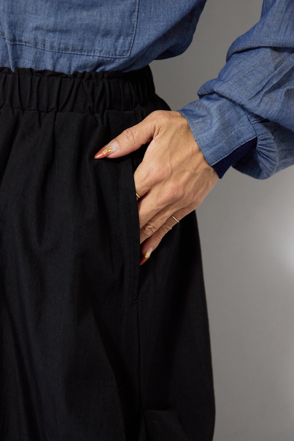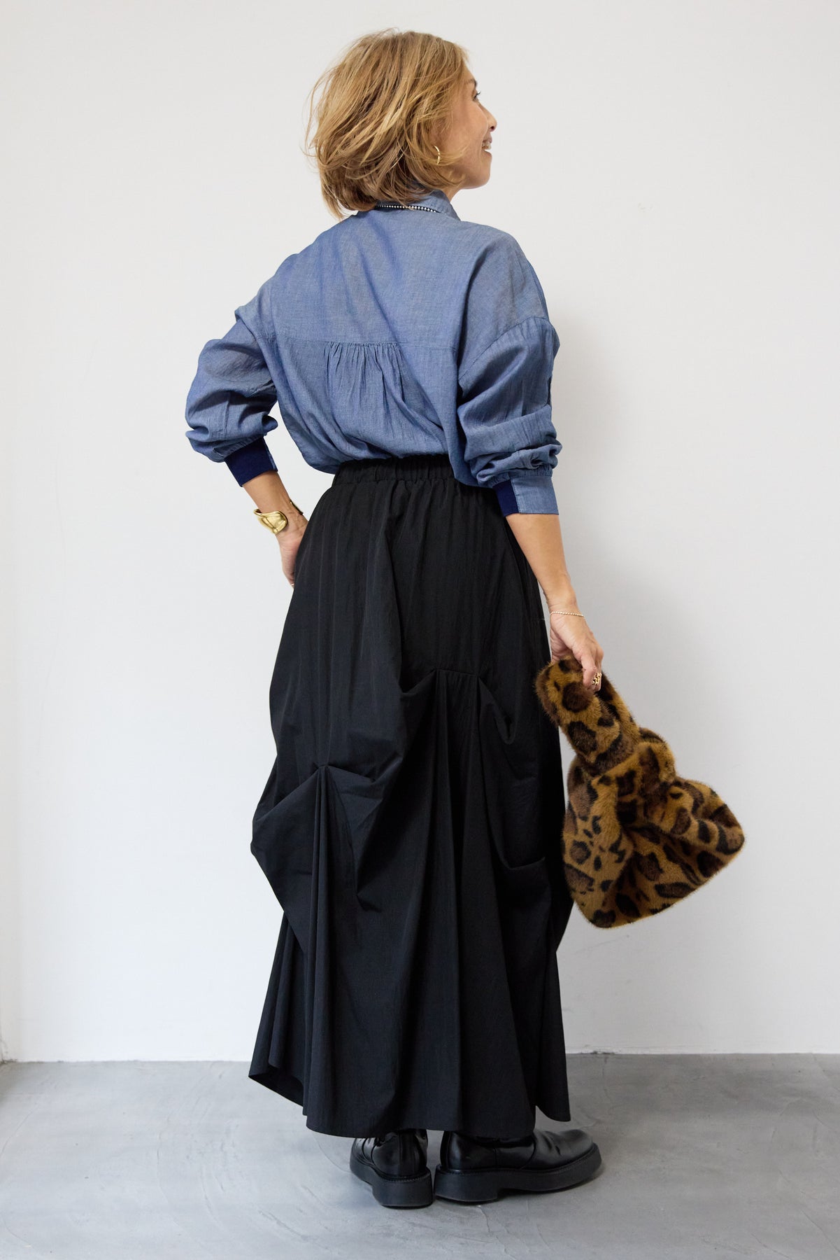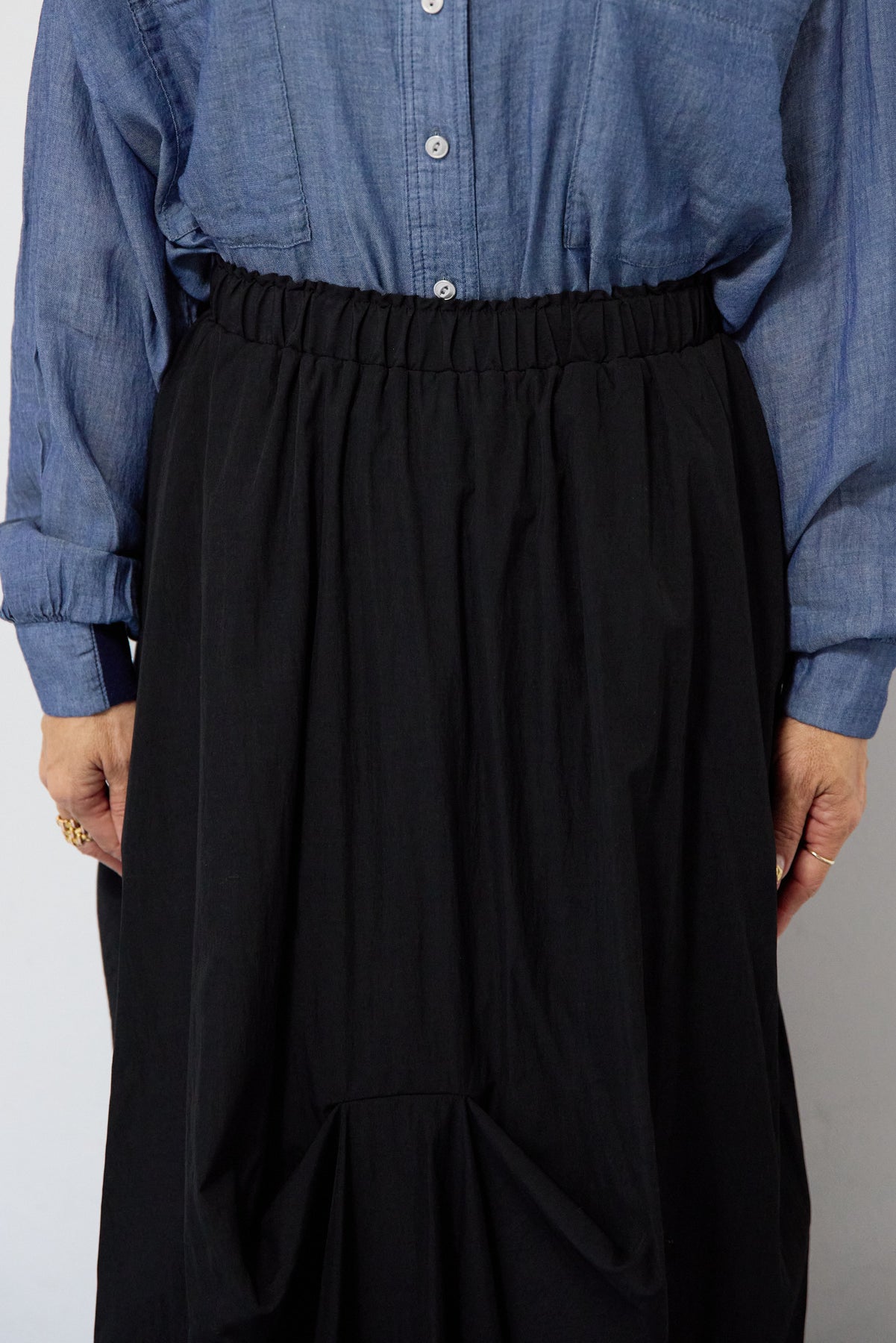 シアーデニムシャツ/ランダムタックスカート