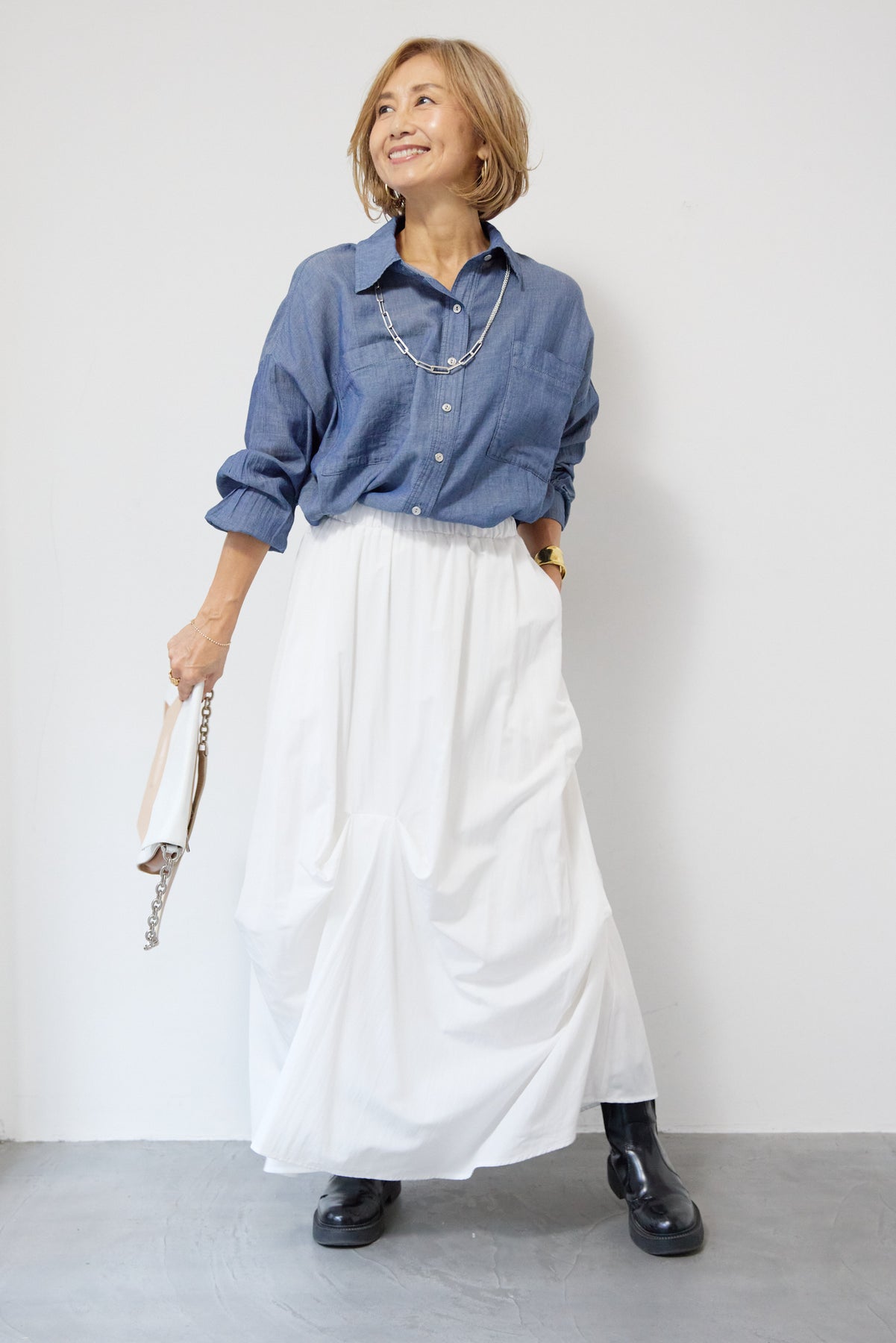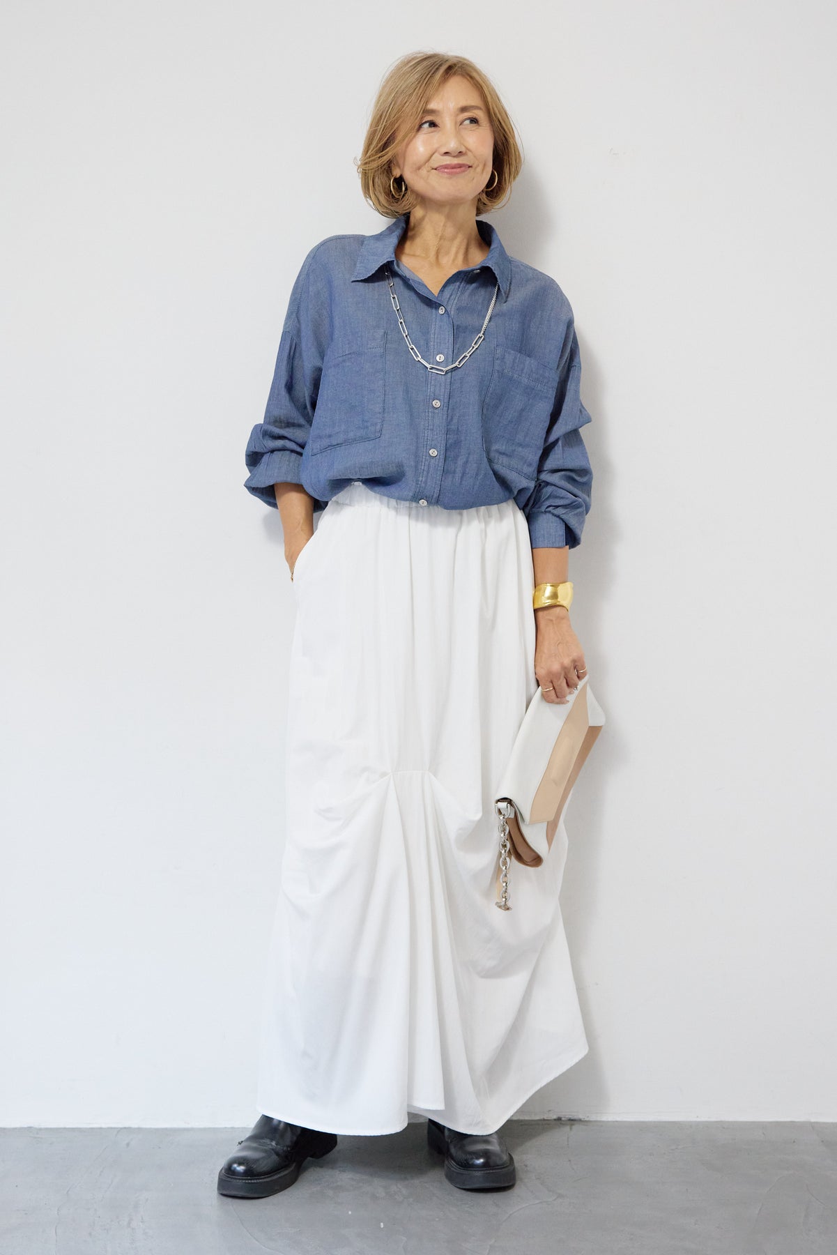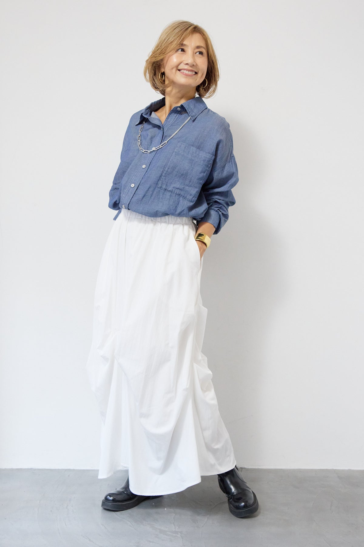 [SET]シアーデニムシャツ+ランダムタックスカート(2set)