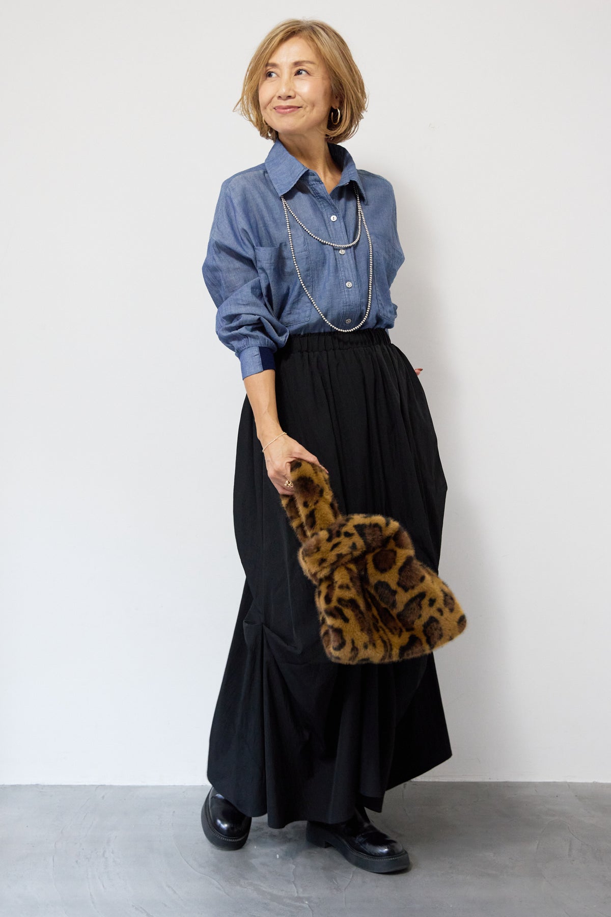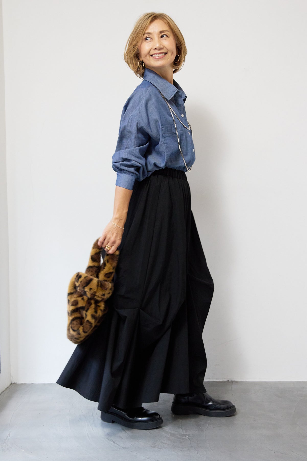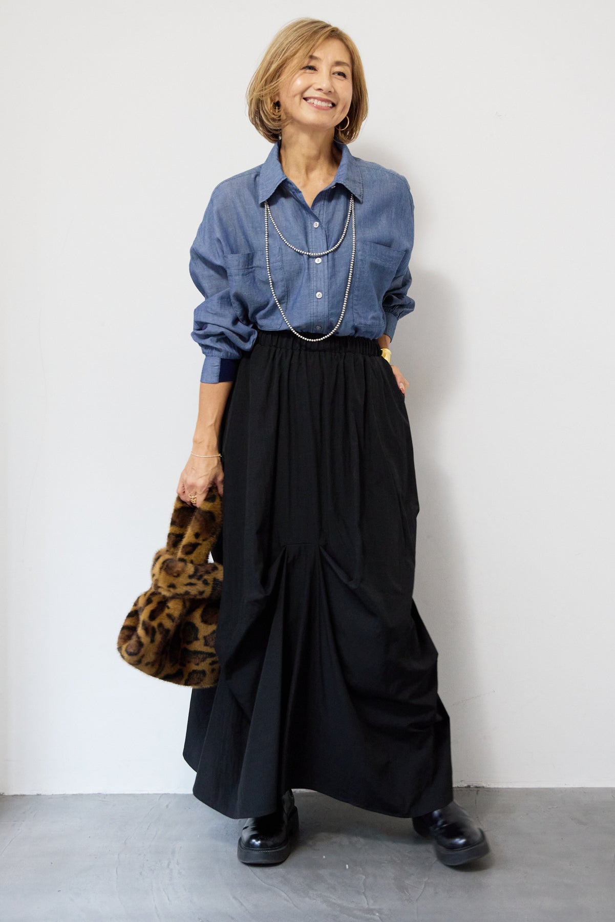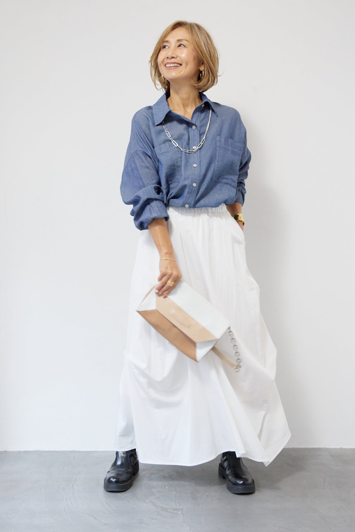 [SET]シアーデニムシャツ+ランダムタックスカート(2set)