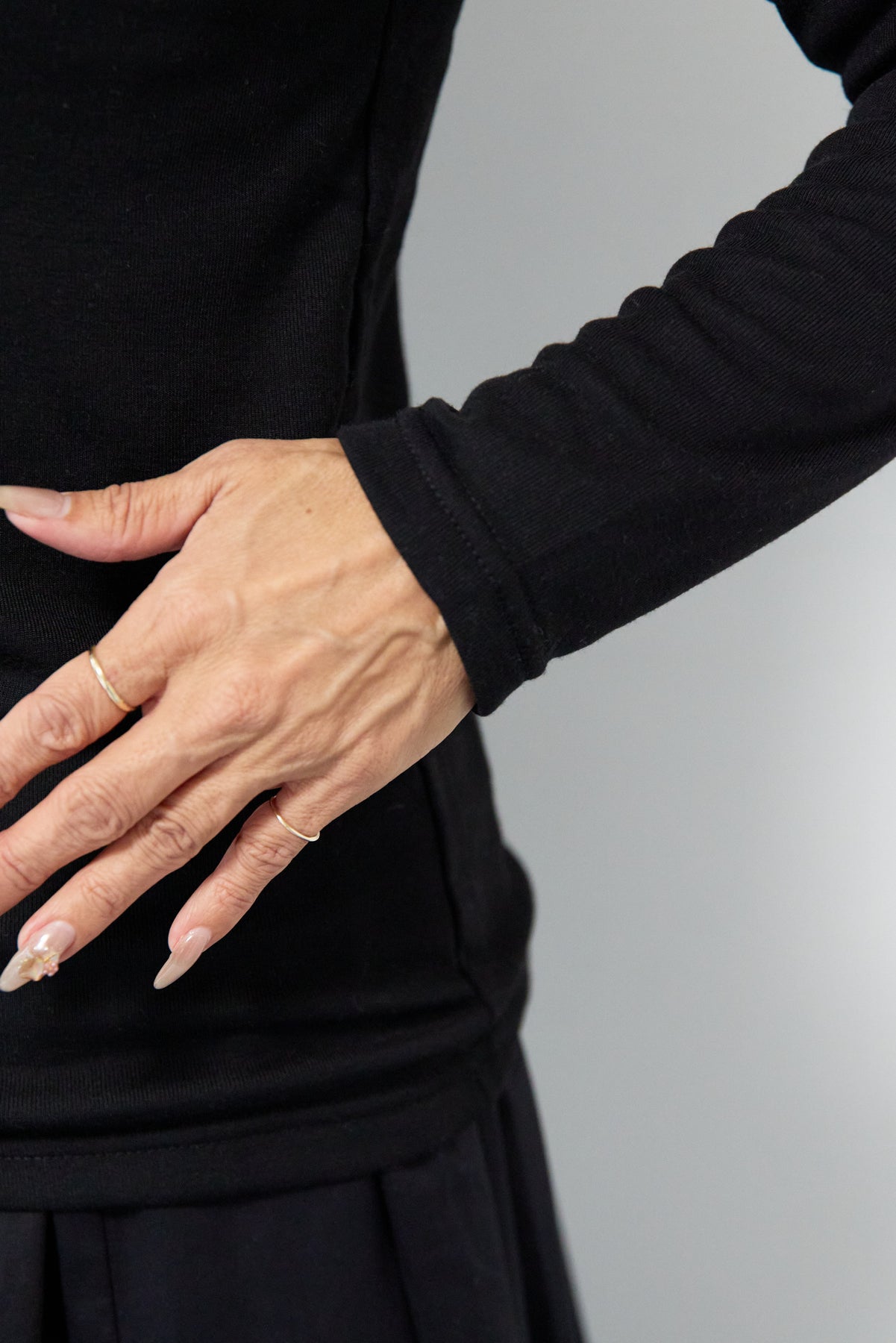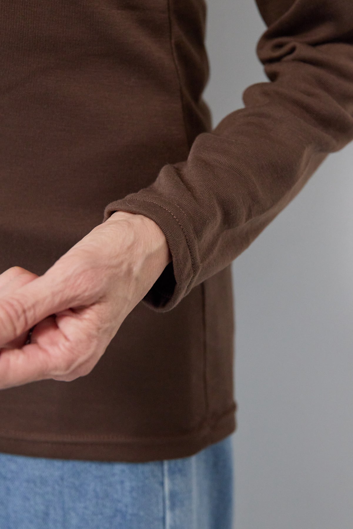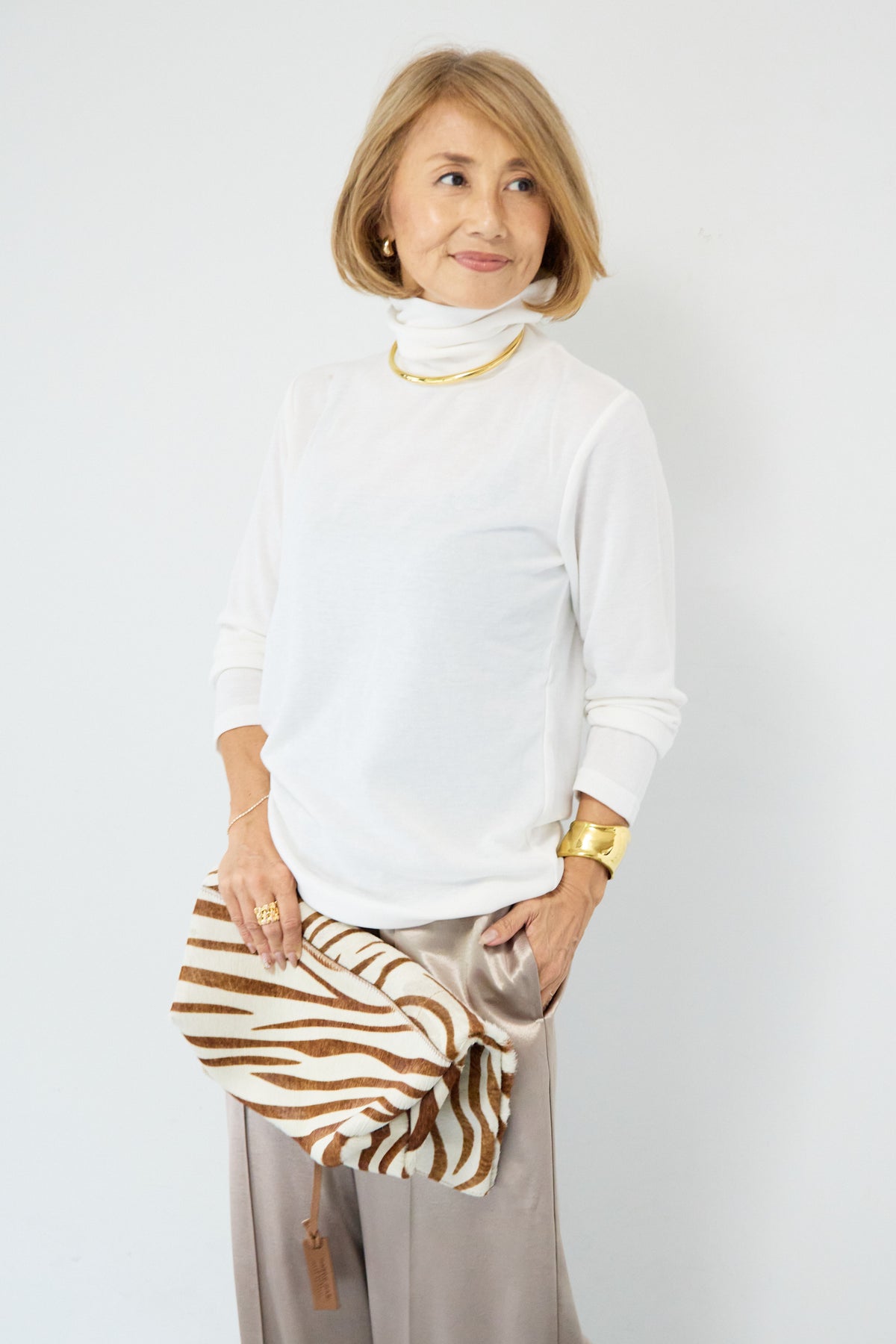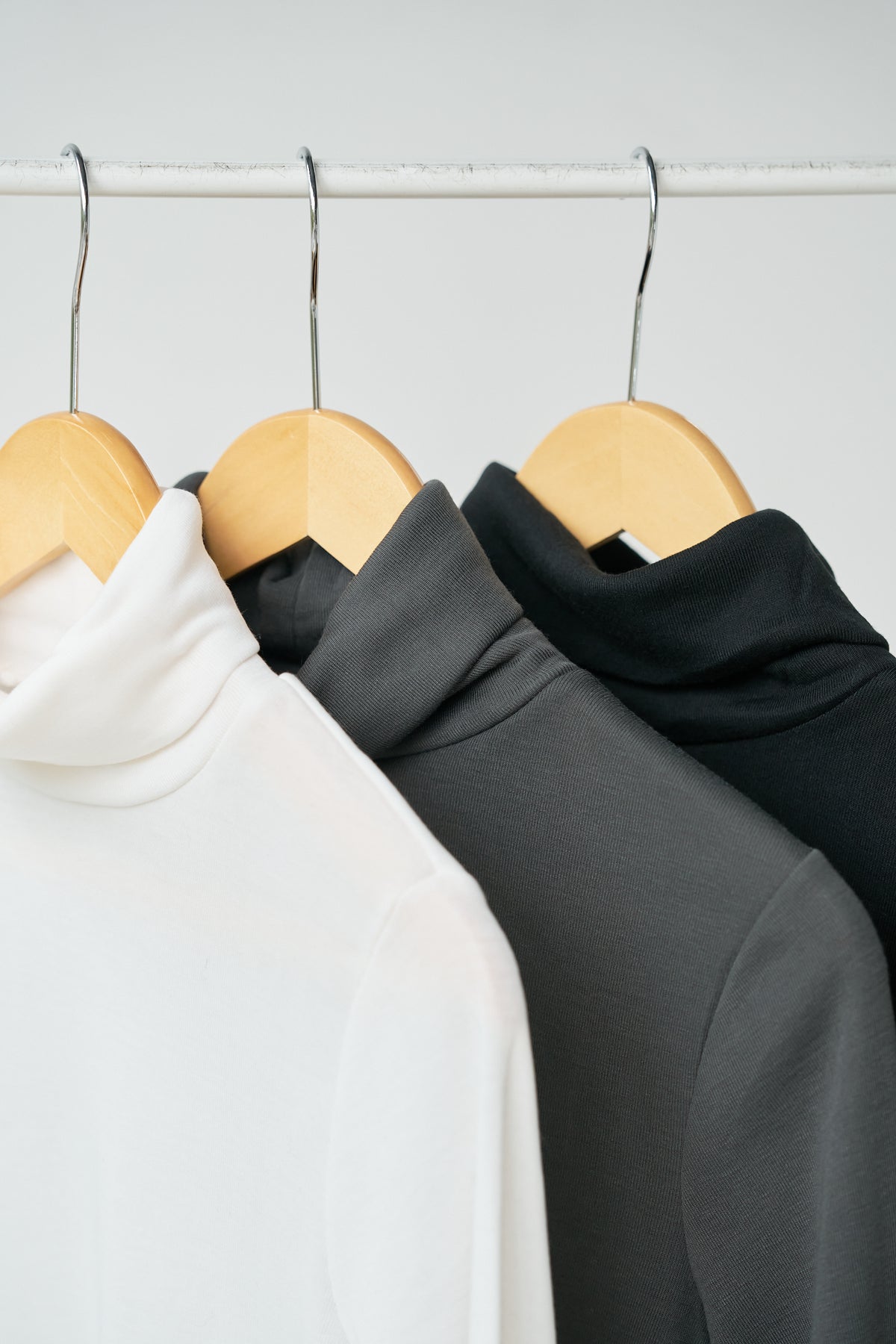 ひまわりオイル加工を施した生地を使用した肌触り抜群のタートルネック。ひまわりオイル加工の生地は肌に優しく、しっとりとした柔らかタッチ。ふんわりとした裏起毛は暖かく着心地抜群。着ぶくれしない厚すぎない生地感で1枚ではもちろん、インナーとしてもおすすめです。